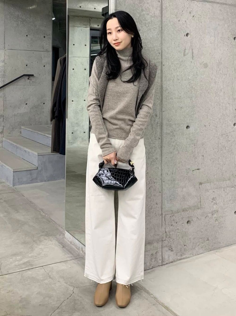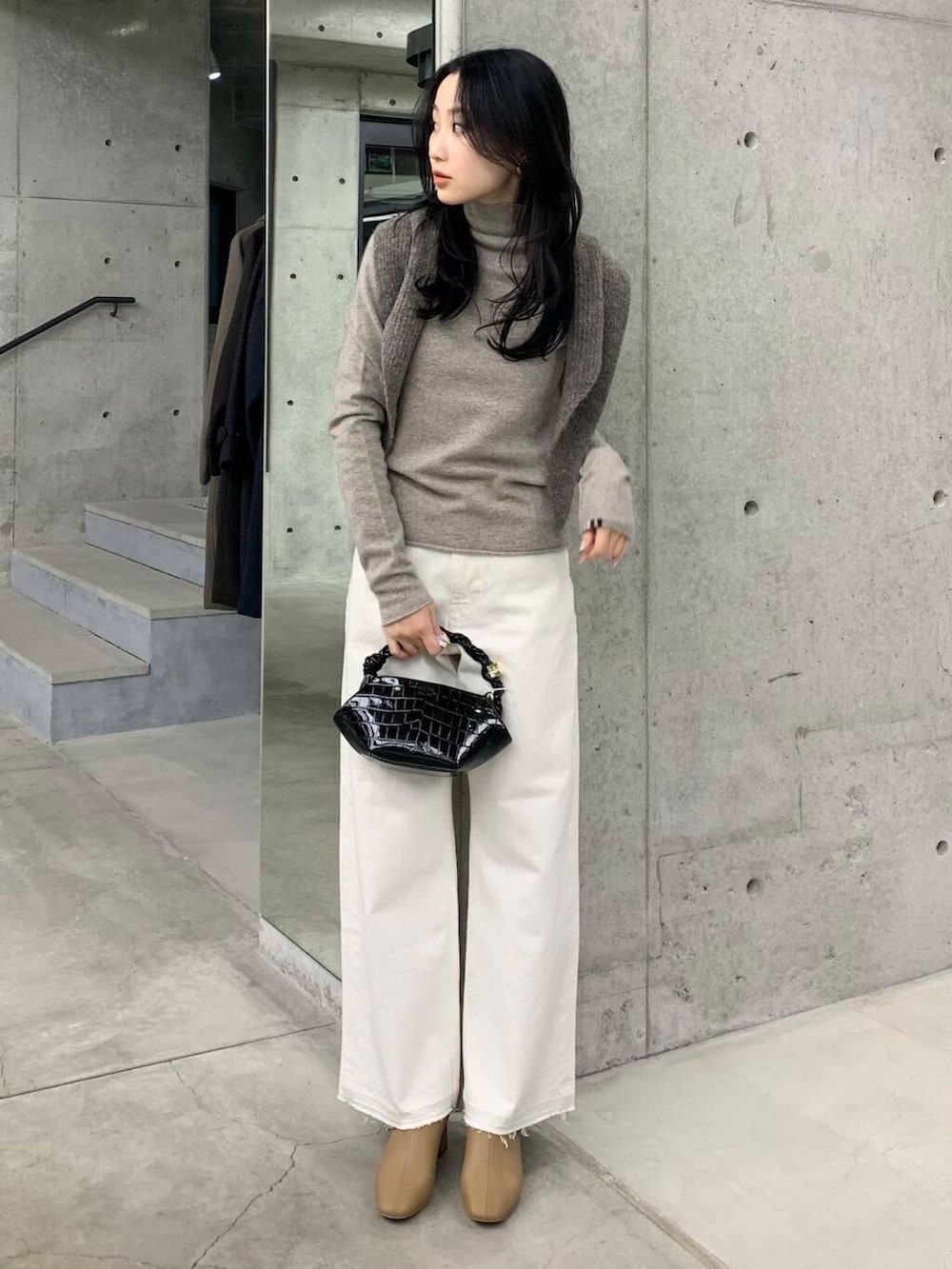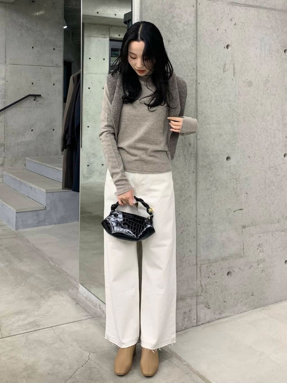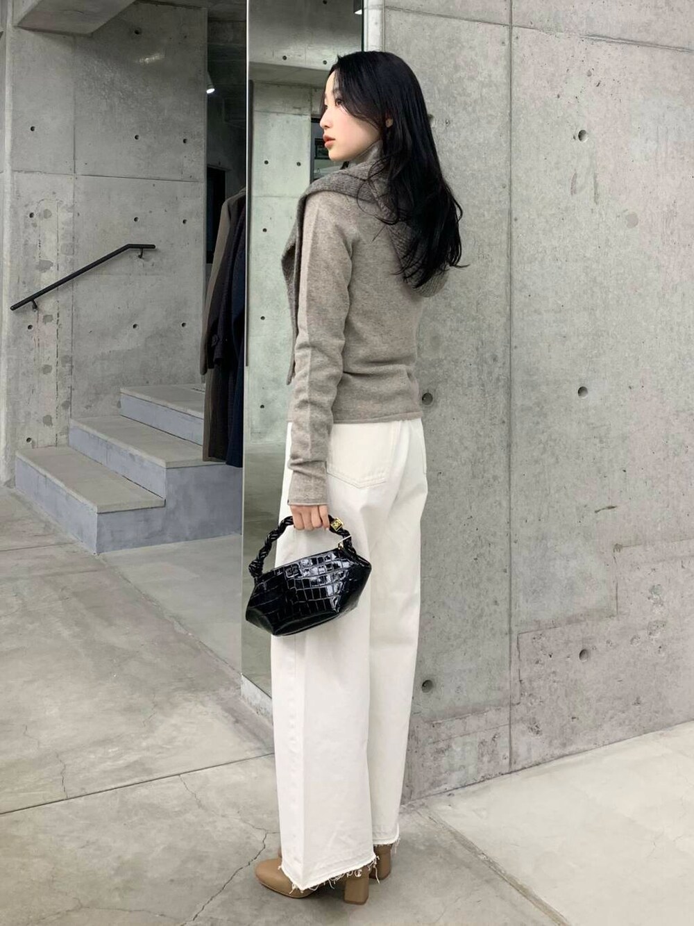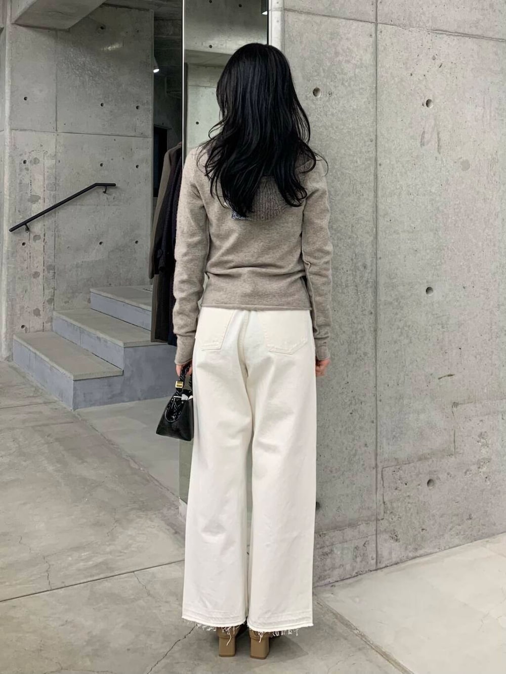上はピタッとしたニットに、ボトムはすこしワイドめのデニムです!