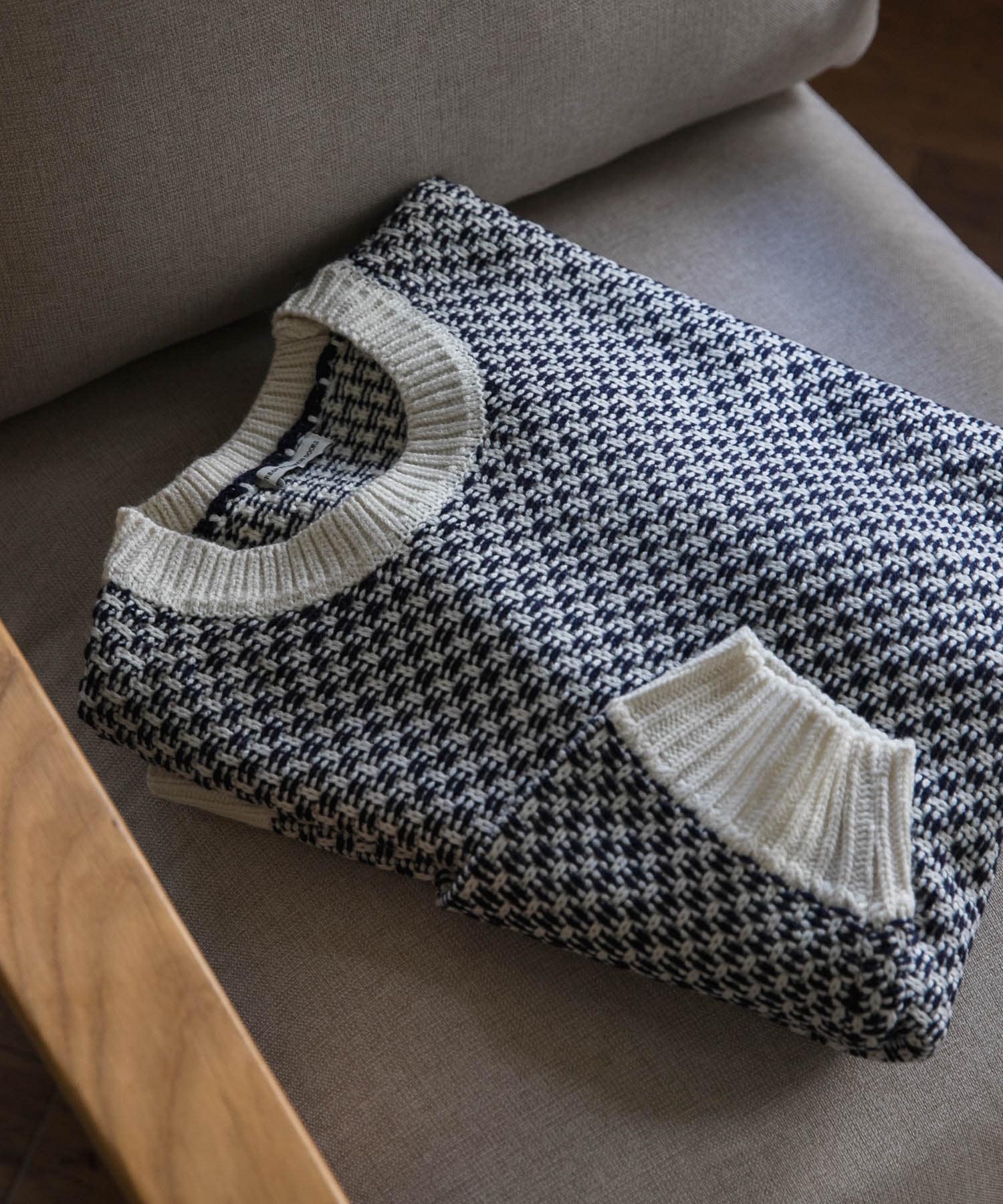 独特な編み目が目を引くニット