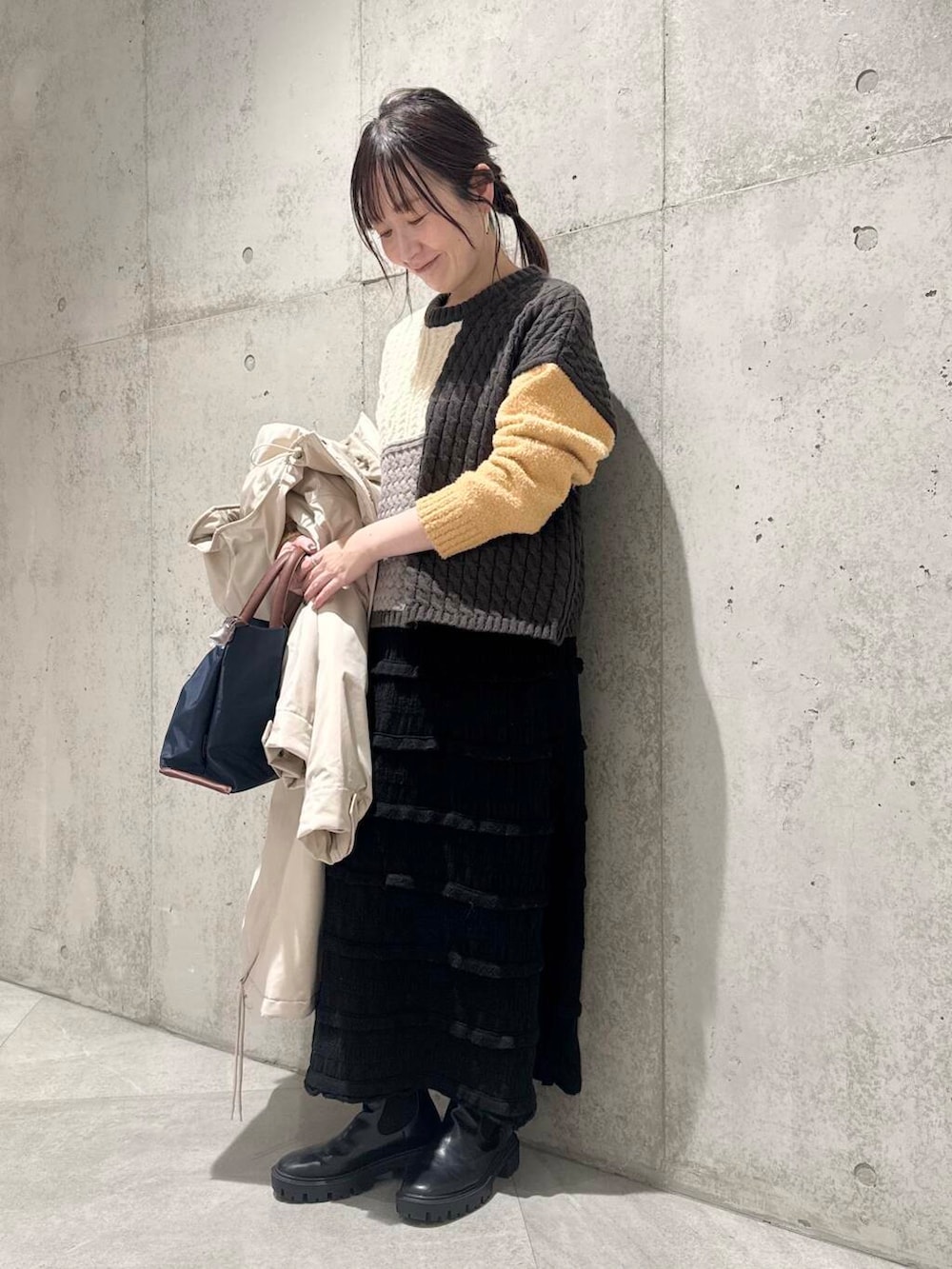 今回は、パッチワーク柄のニットを差し色にした、大人カジュアルコーディネートです。