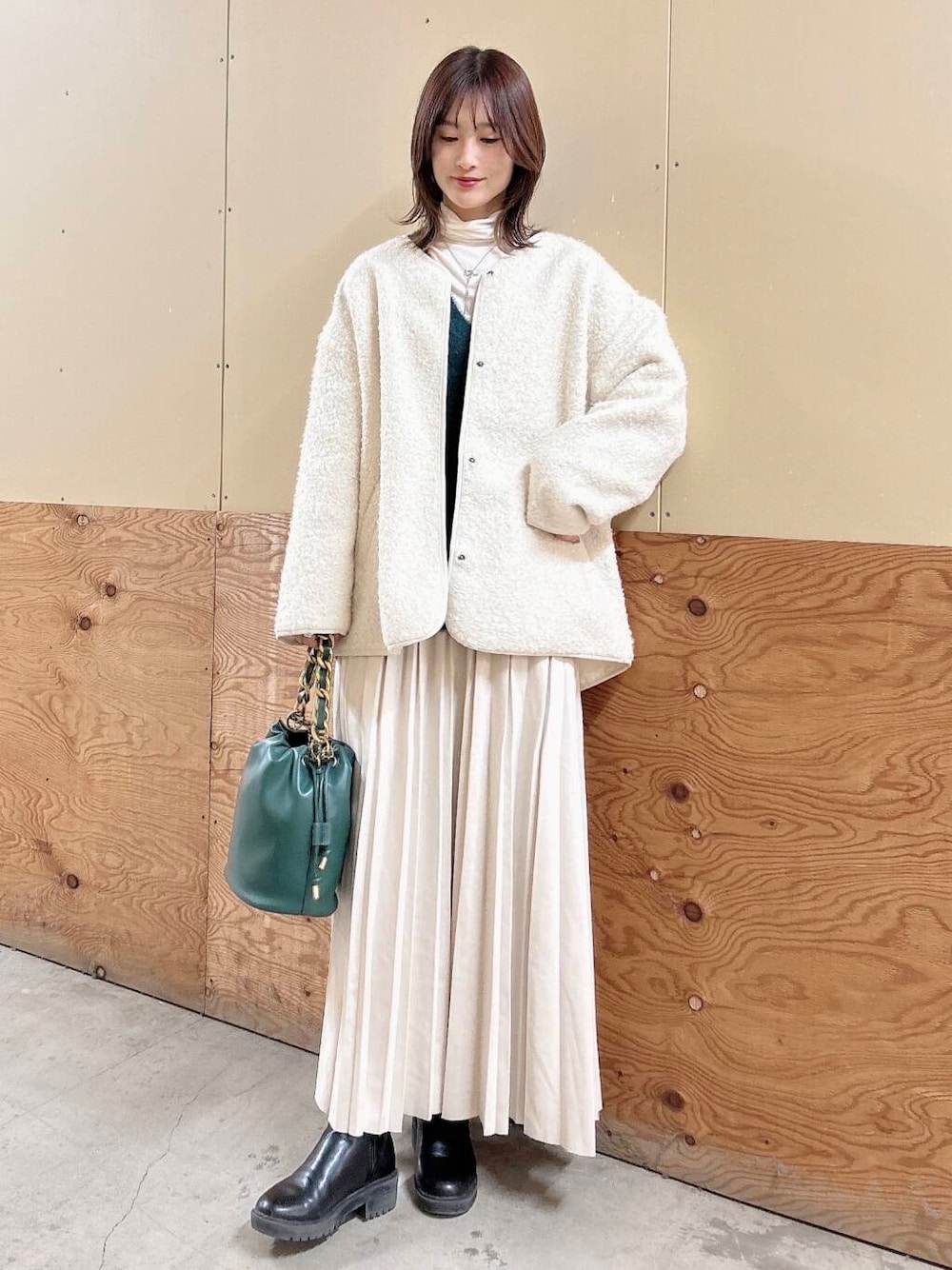 ✔︎プリーツスカートは店頭でも人気のアイテム。ウエストゴムでプリーツの落ち感も良いです🙆♀️