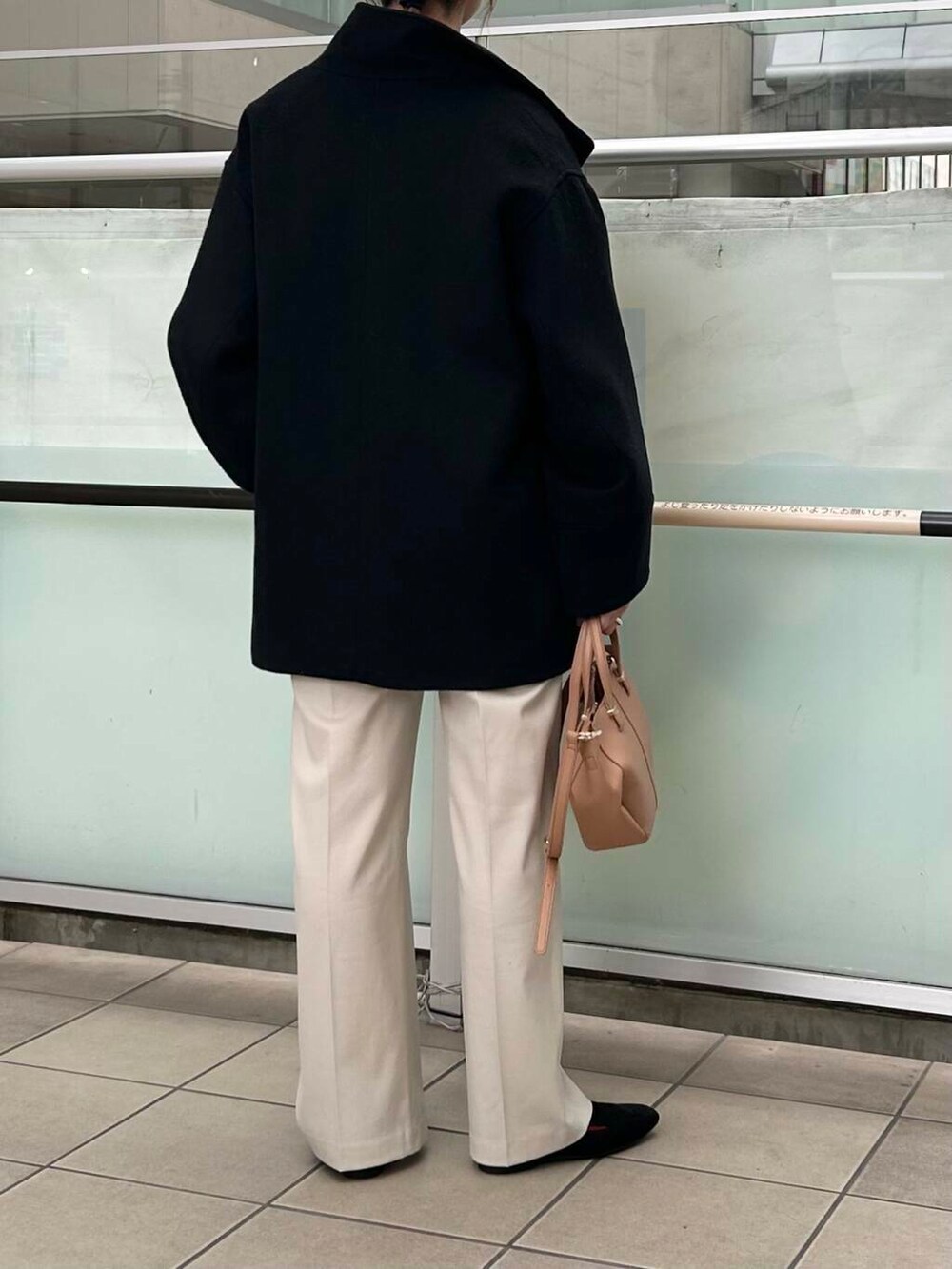 スタンドカラーにして着ると大人っぽい雰囲気になります。
