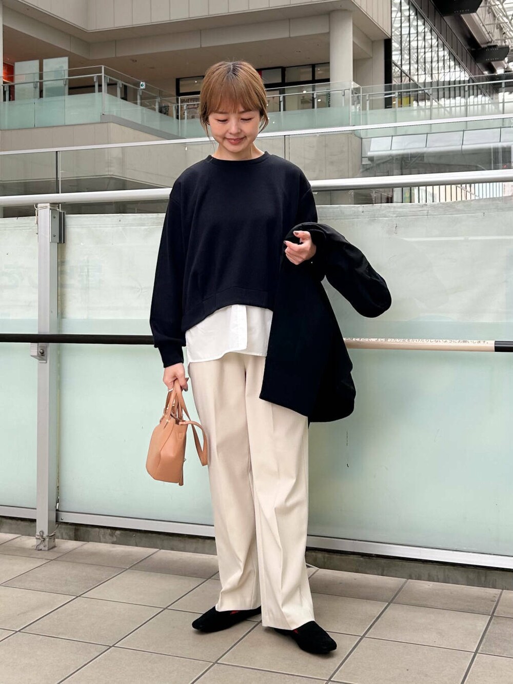 中はシャツがドッキングされているプルオーバーを合わせました。