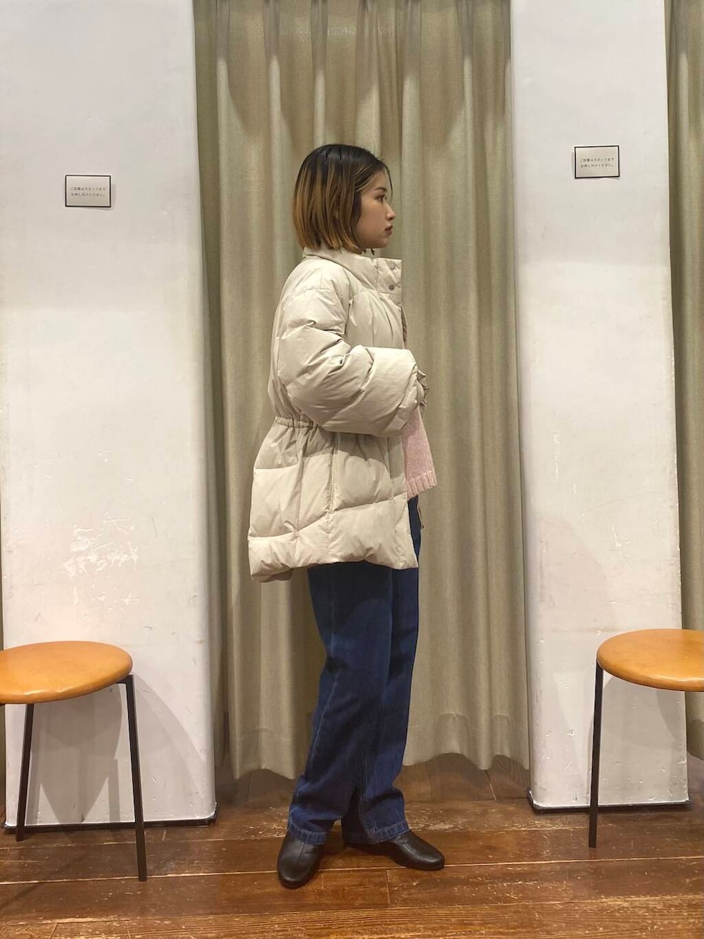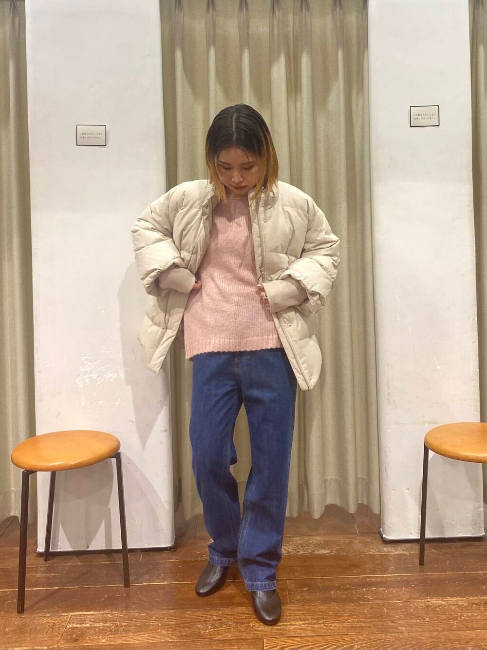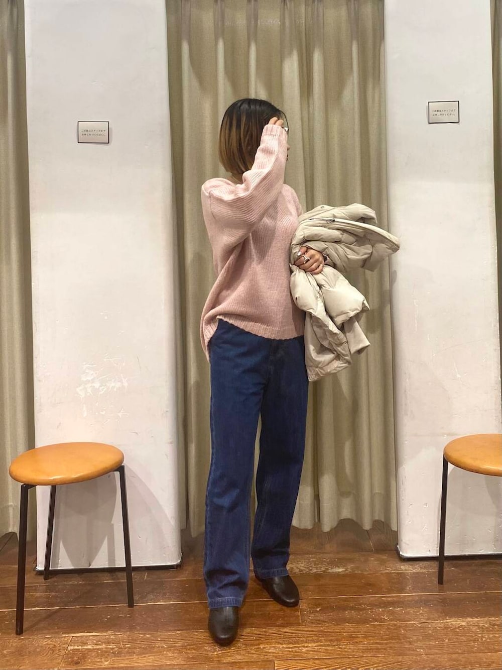 ピンクのニット+デニムで少し春を意識したコーデ◎