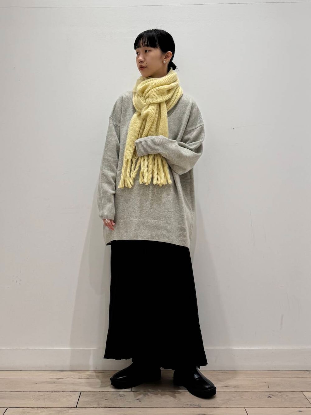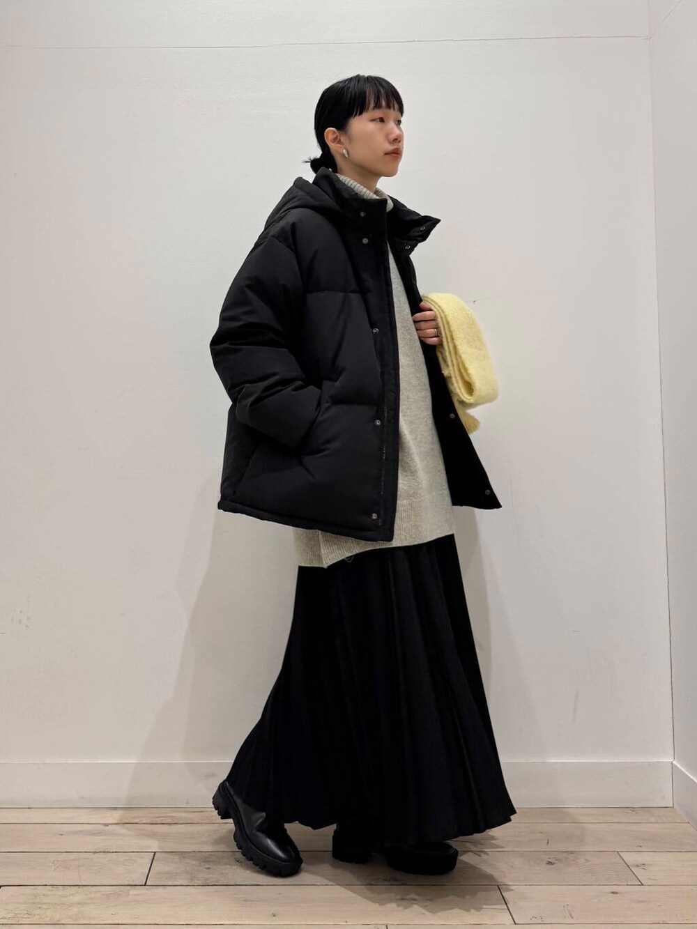 ダウンジャケットを合わせた時のリブが裾から見えるのがすきです☺️タートルネックニットはチクチク感あまりないです!