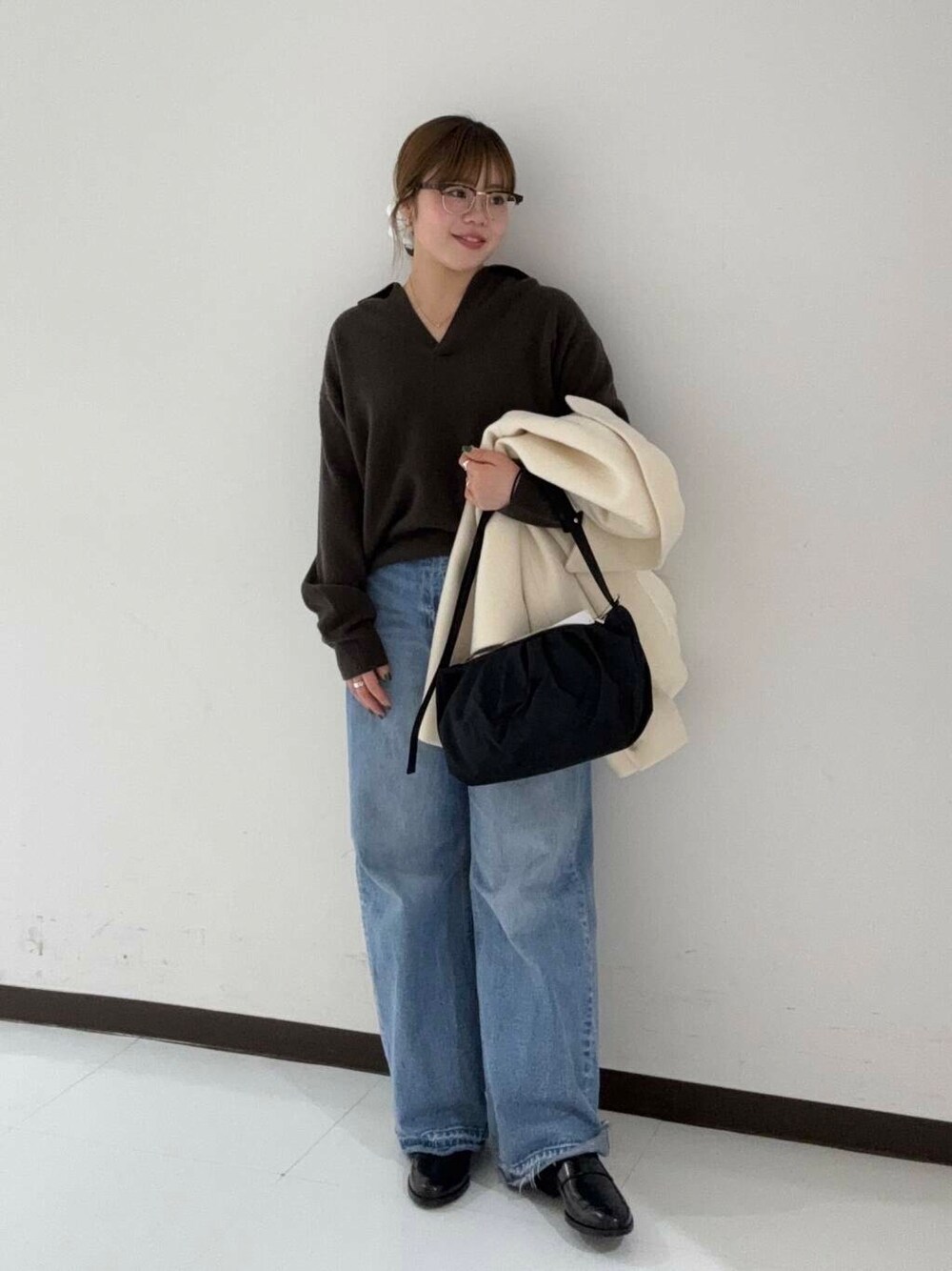 キーネックがレイヤードでき、顔周りもスッキリに見せてくれます◎