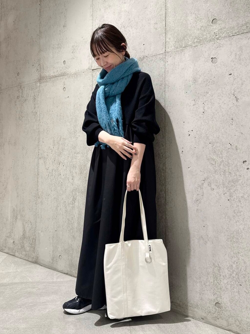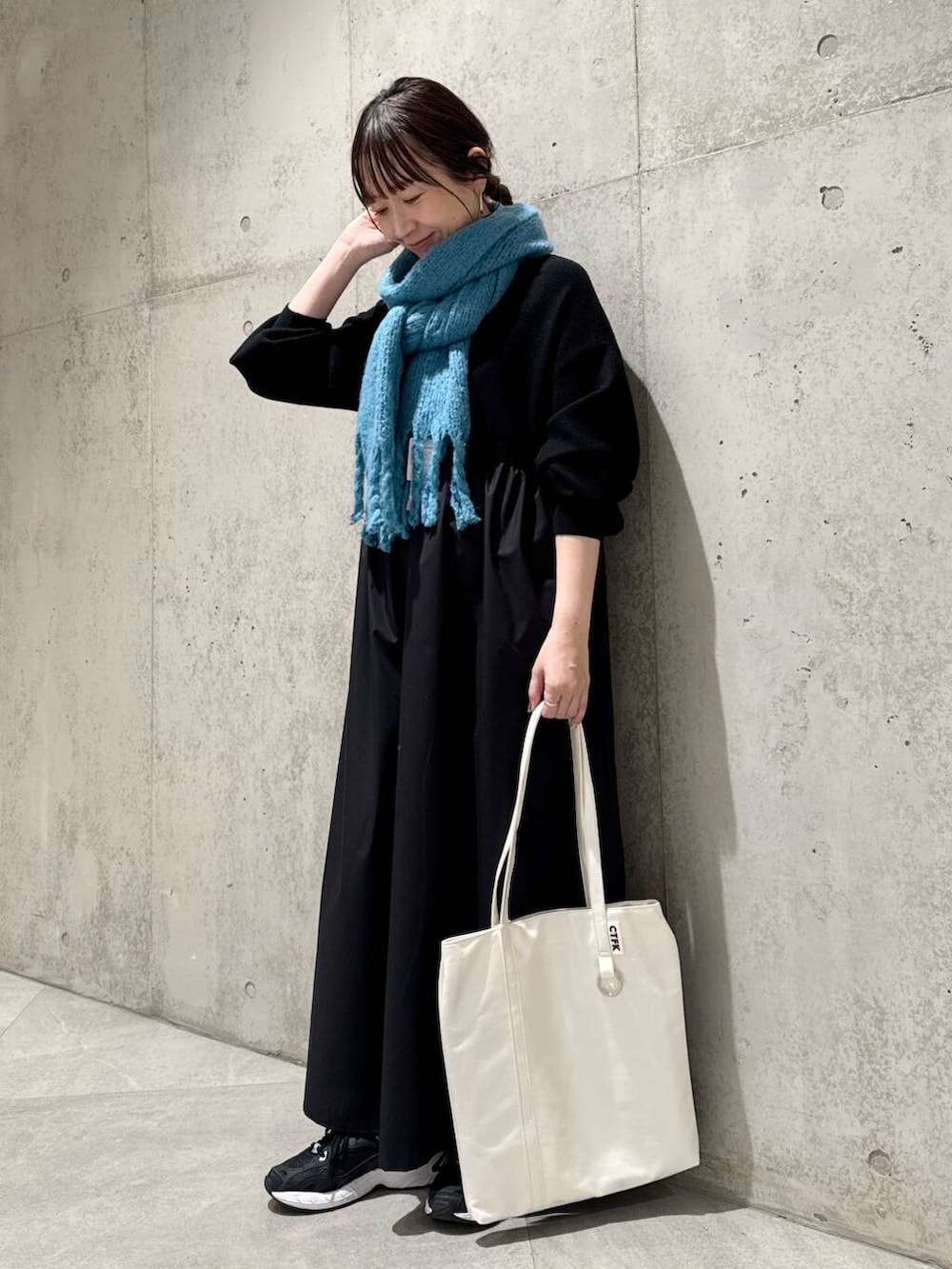 今回は、ブルーのマフラーをアクセントカラーとして合わせてみました。