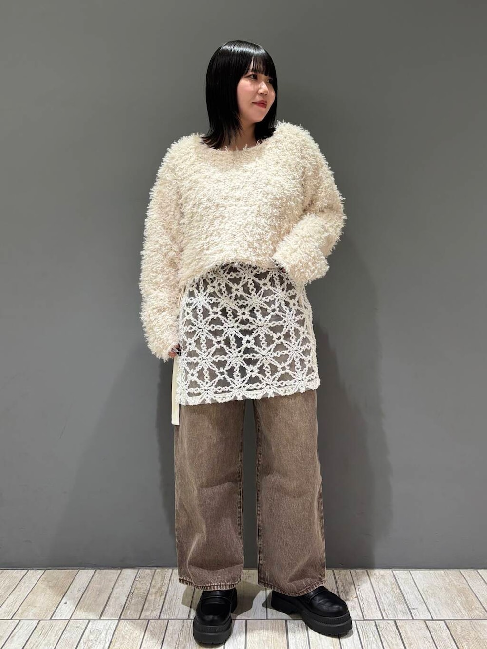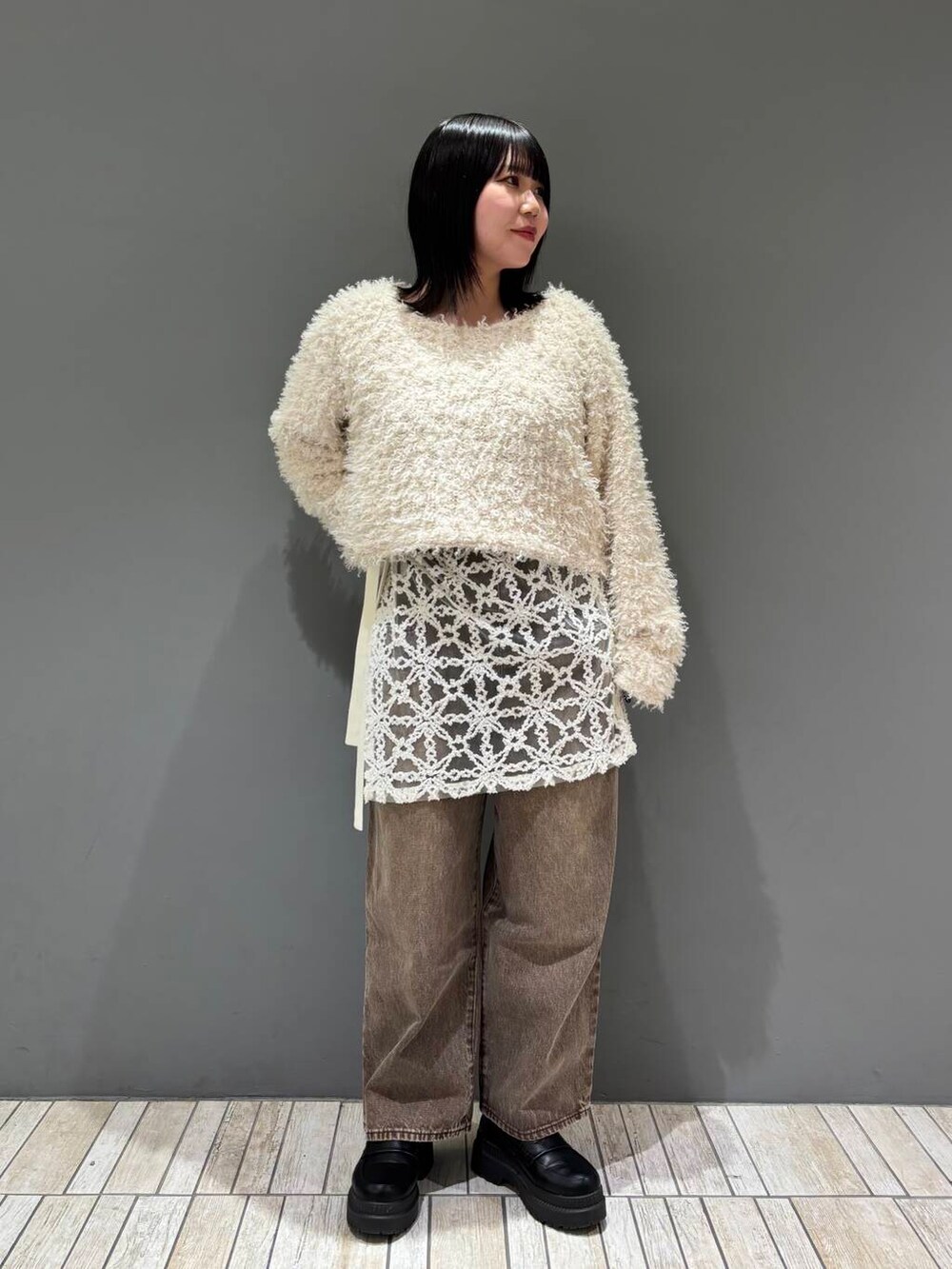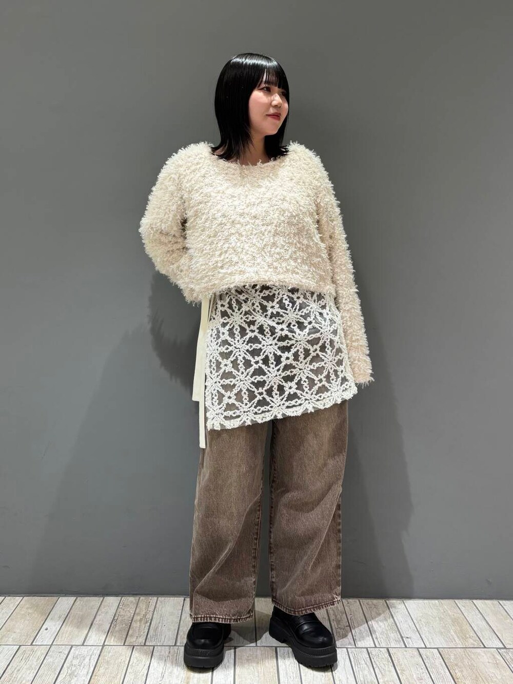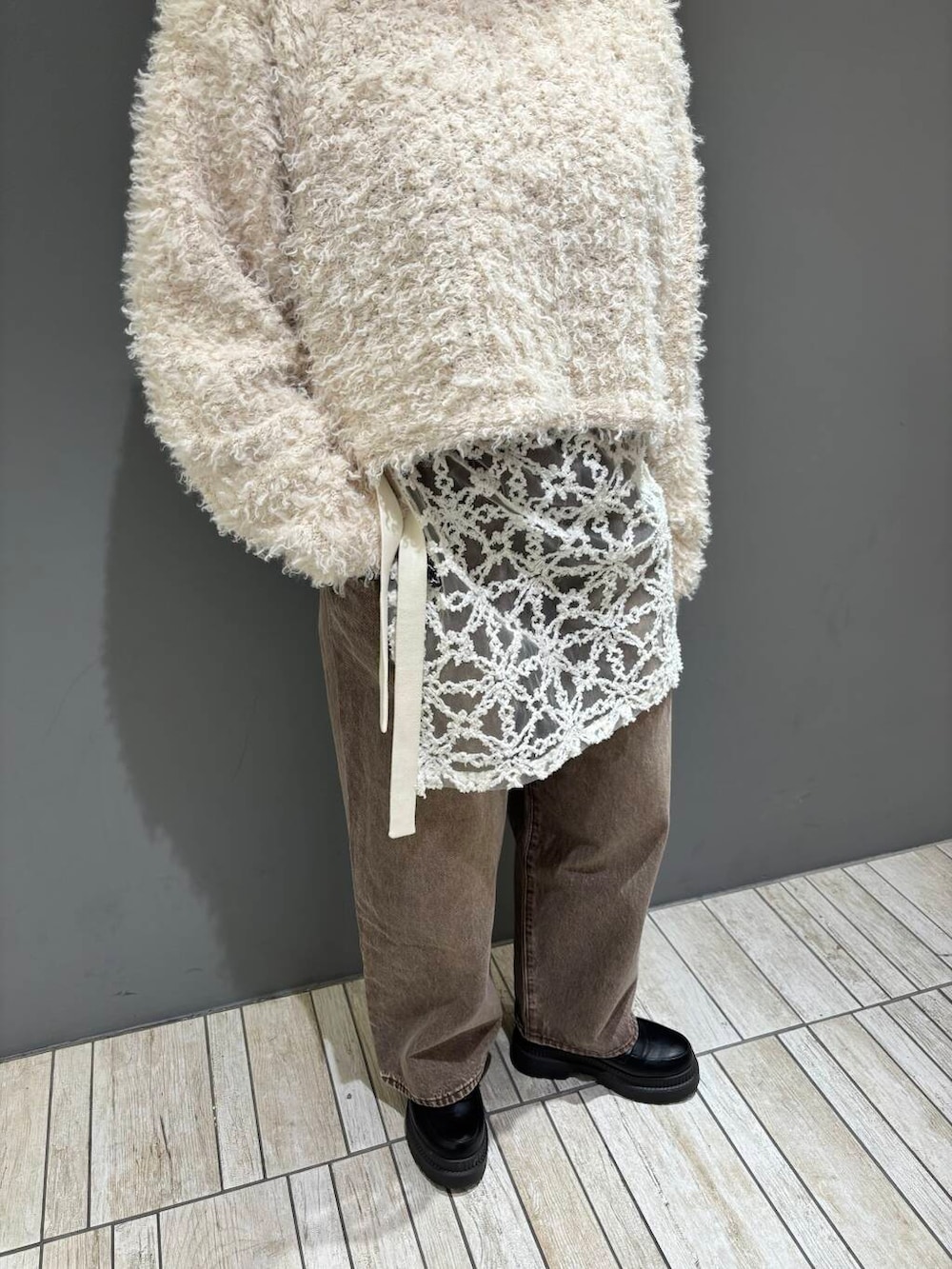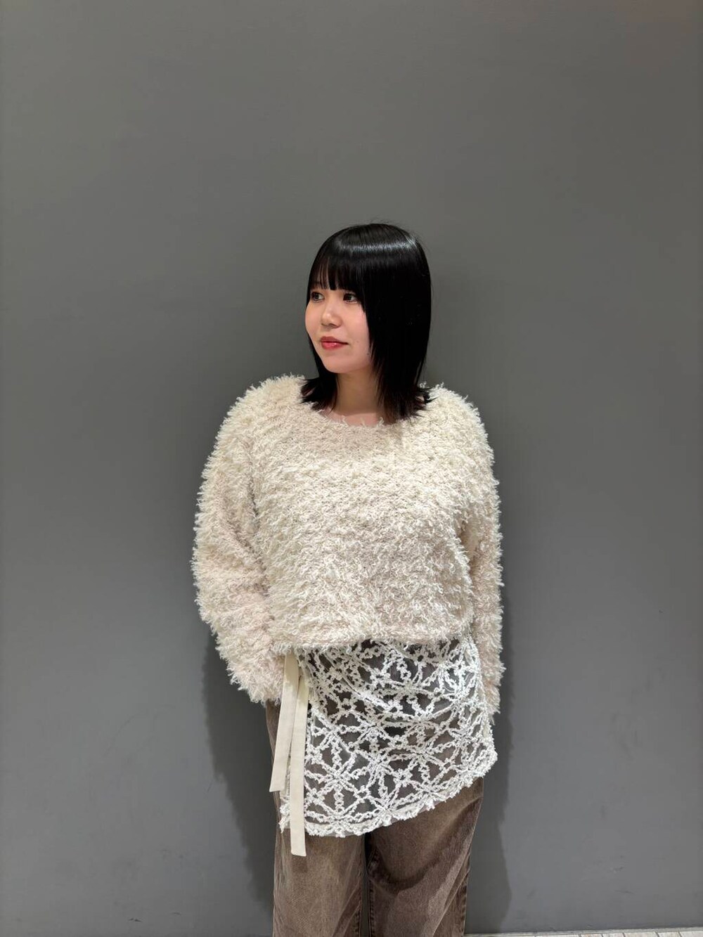 流行りのクロップド丈と肌触りの良いフェザー素材がオススメのトップスです!しっかりとした生地感と厚みがあるので1枚でも着ていただけますし、襟ぐりが広めに開いているのでインナーにハイネックなどを入れてレイヤードスタイルも可愛いです🫶🏻