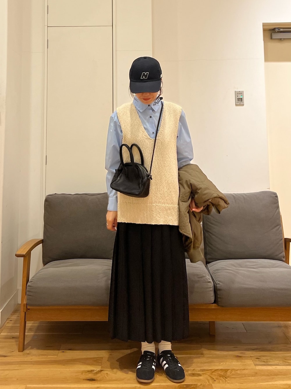 今日は全体的にオーバーサイズのお洋服ですが、小物を黒で引き締めてみました♪♪