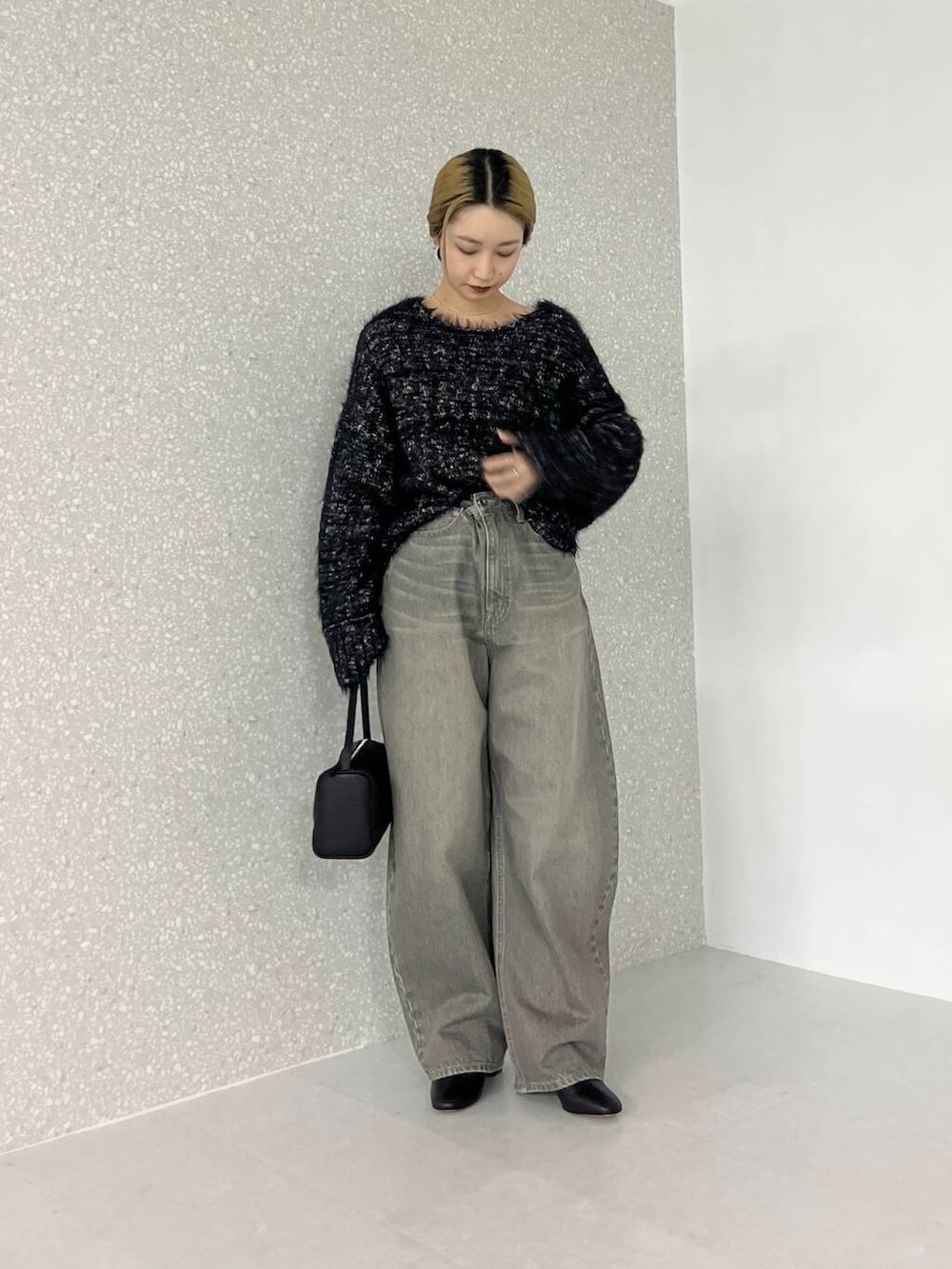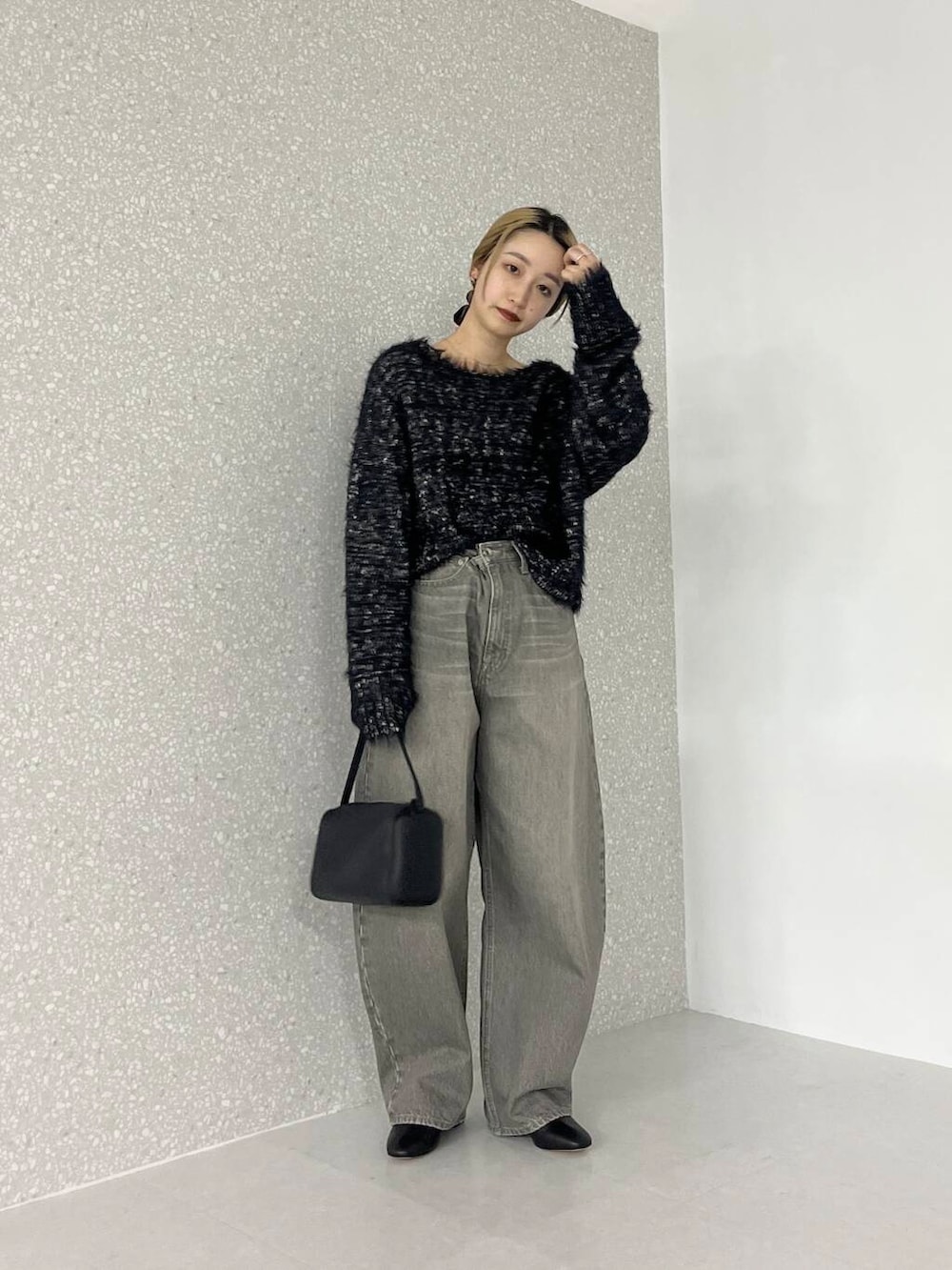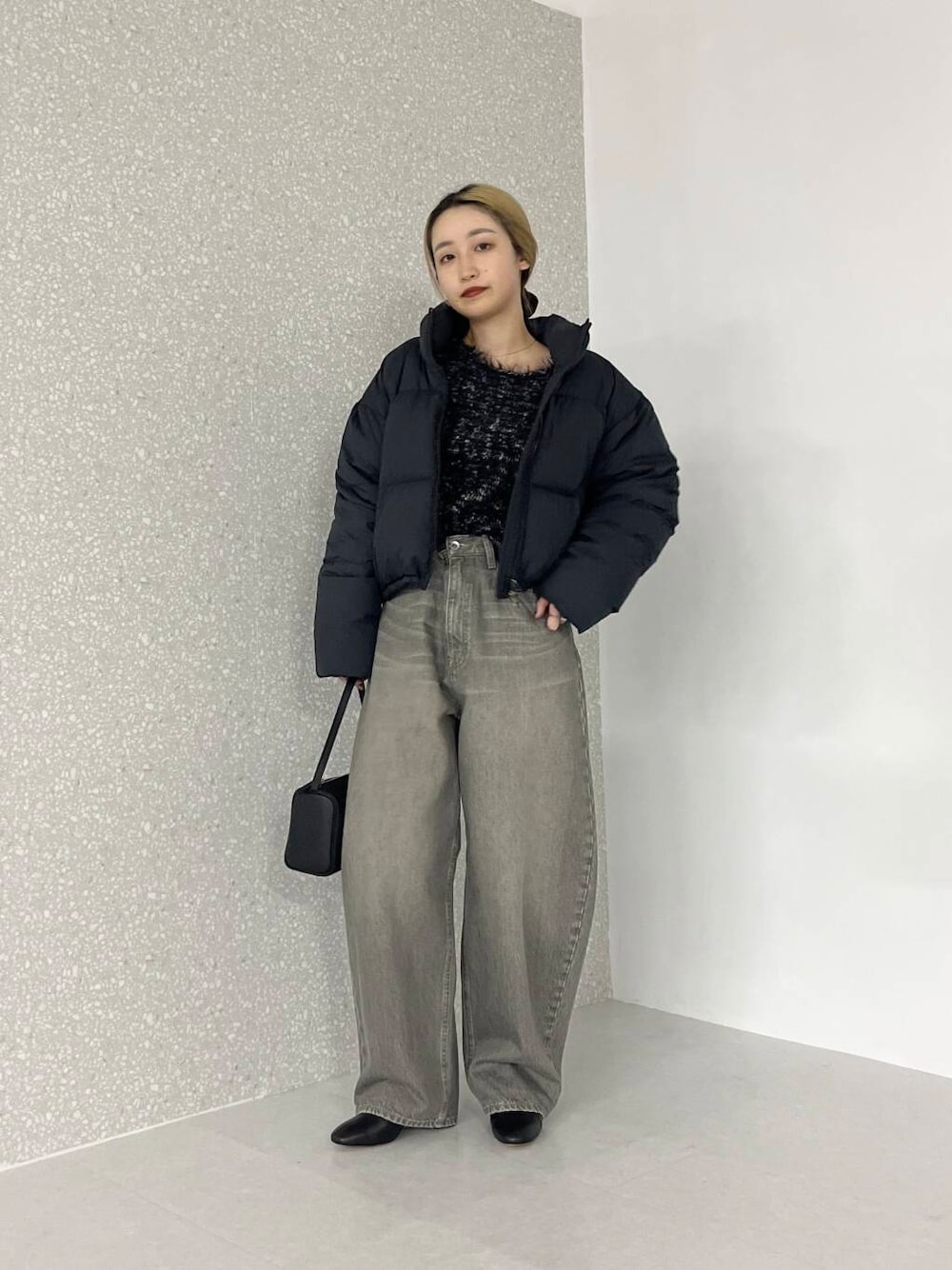 毛足が長く女性らしさもあるので、デニムとの合わせもおすすめです◎