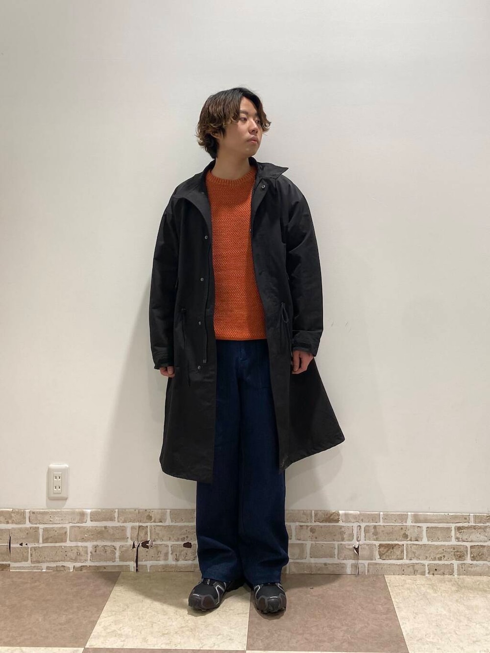 ブラック系の落ち着いた色味のコーデにはオレンジなどで差し色を足してみるといい感じのコーデになりますね^^