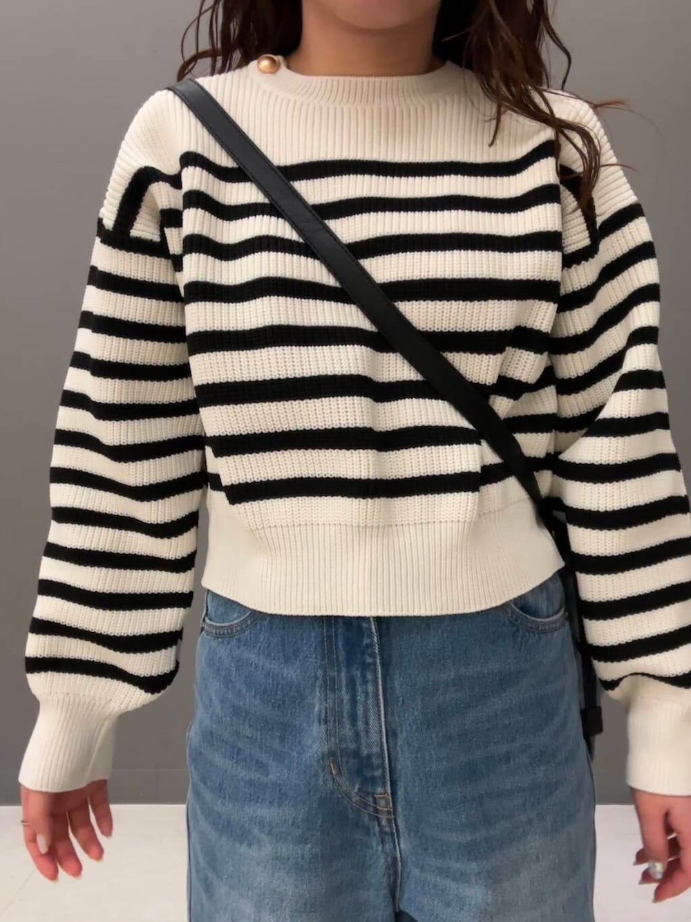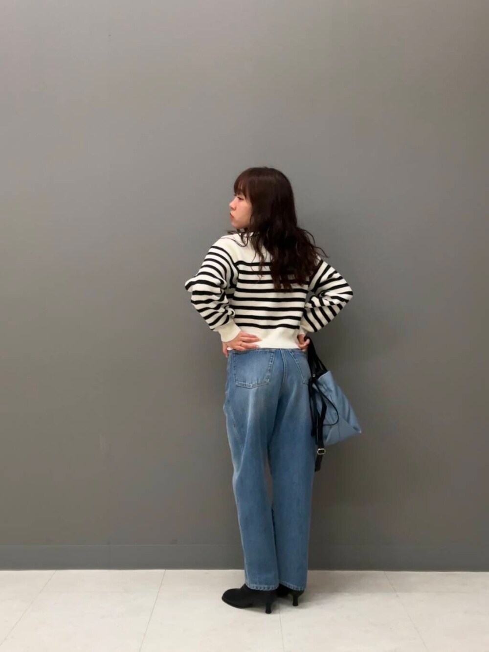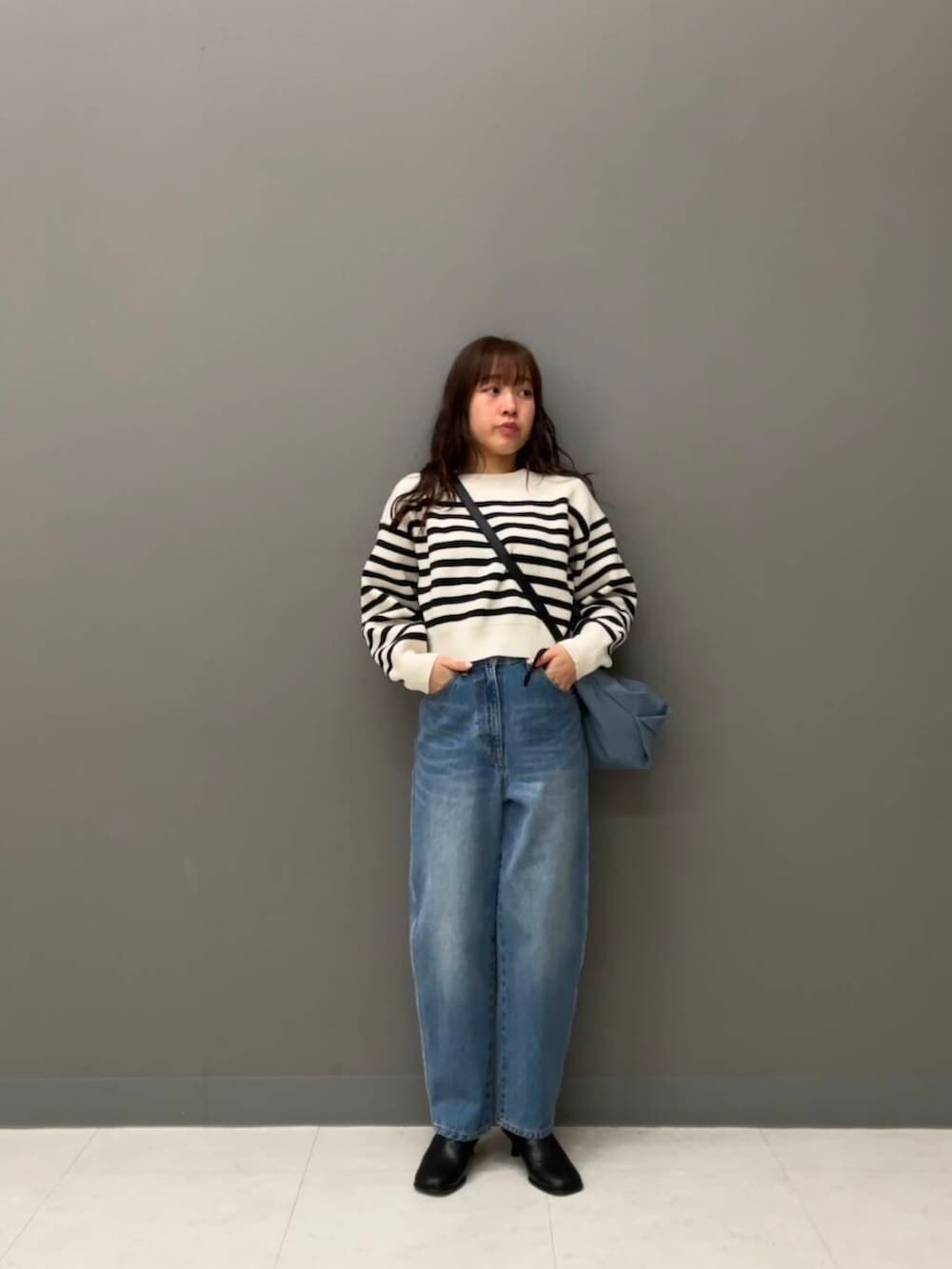 ボーダーニットにコクーンデニムを合わせるとそれぞれふんわりしたシルエットですが、ニットが短め丈なので脚長効果も抜群です🙆♀️