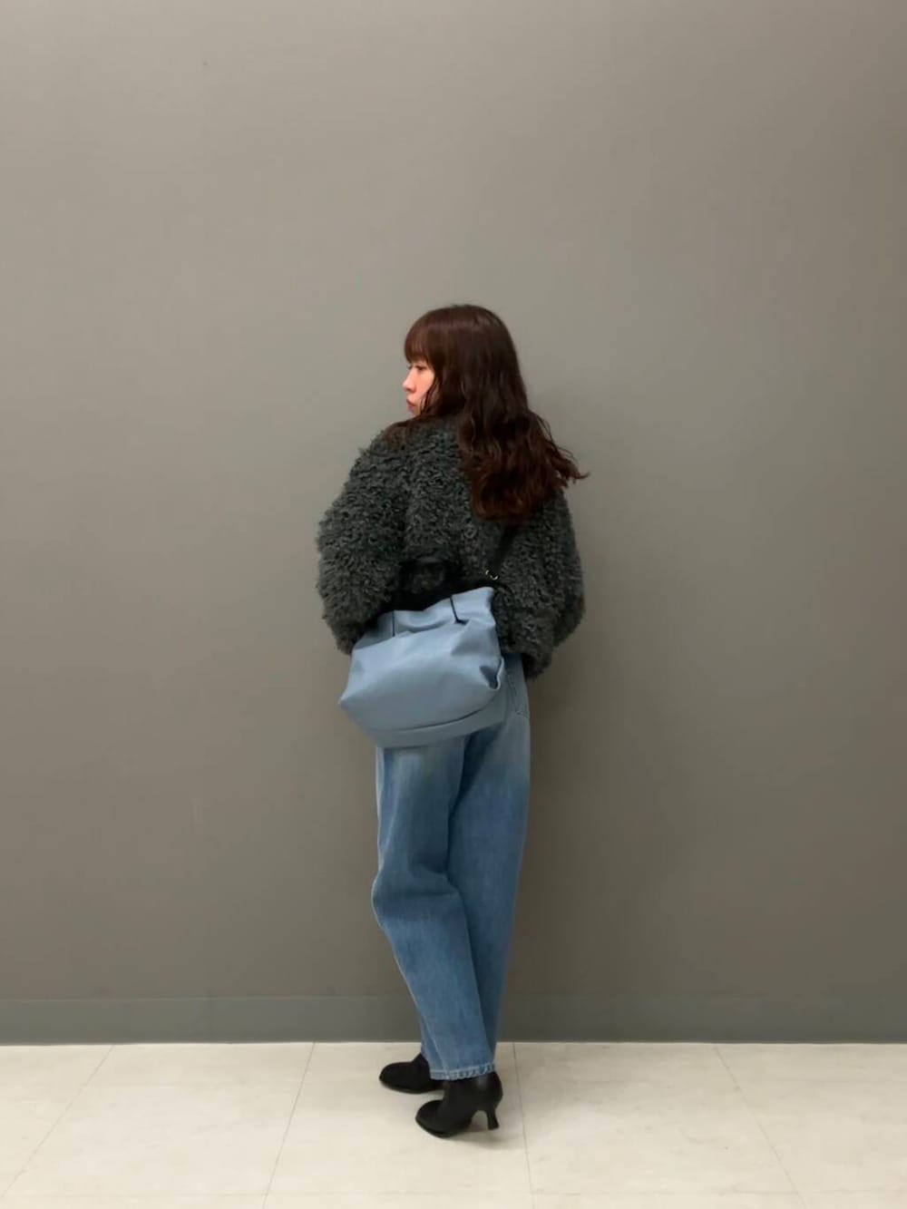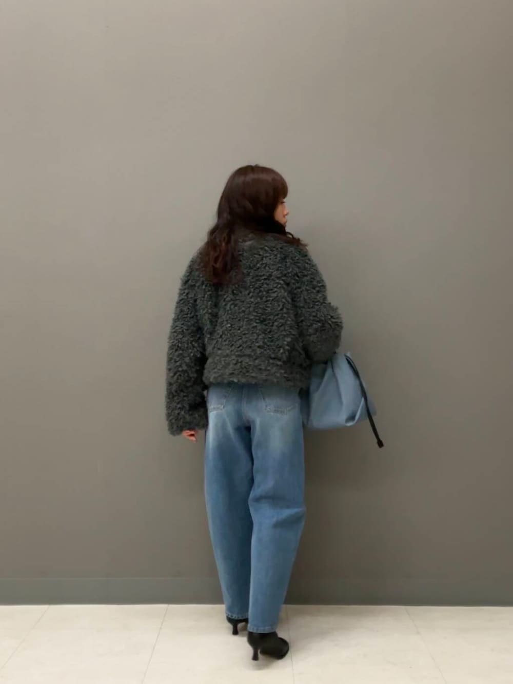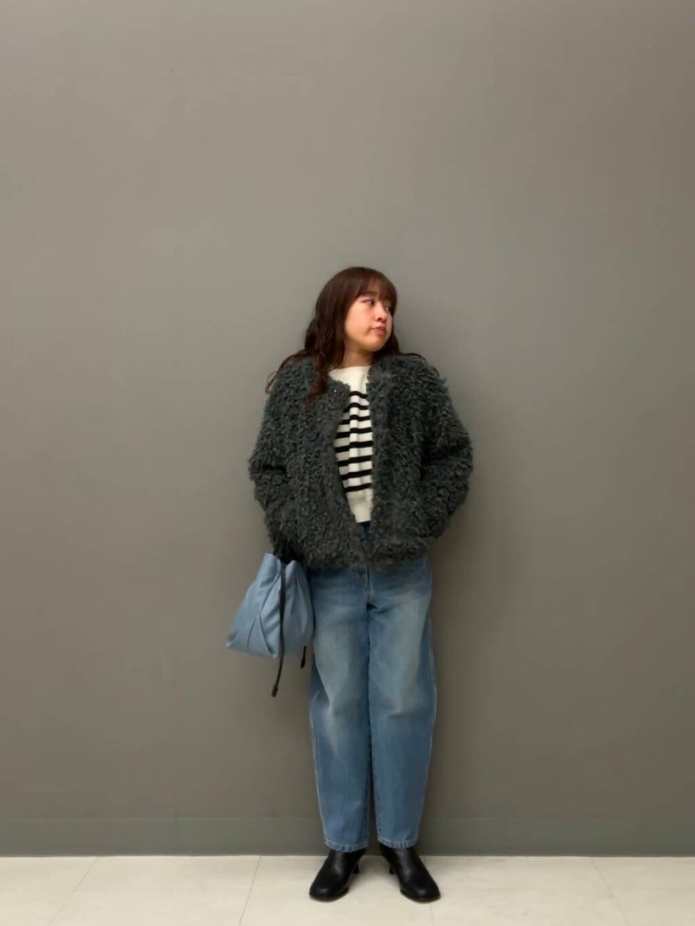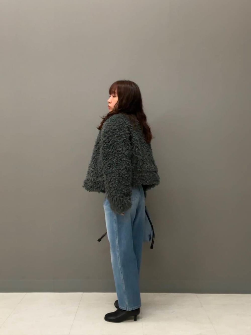ファーやボアのアウターはボリュームが出ますが、こちらも短めの丈になっているのでどんなシルエットのボトムスでもスッキリと羽織れるのが嬉しいポイントです!