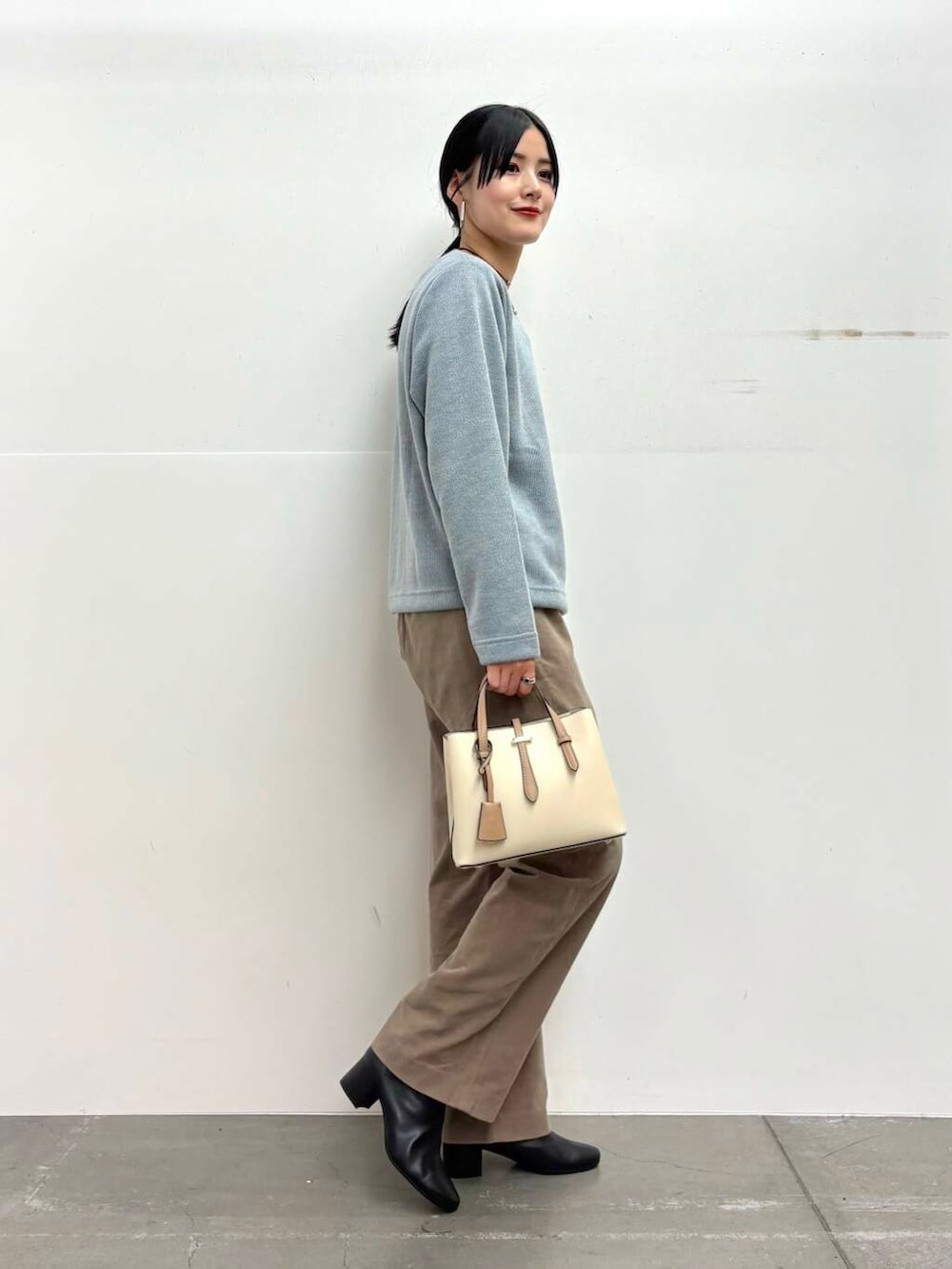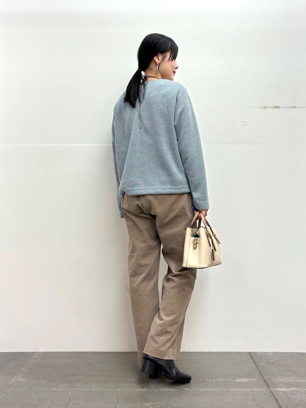 パンツは細めのコーデュロイで合わせやすく、ごわつかず楽な履き心地です◎