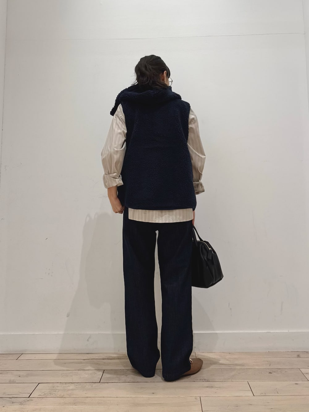 シャツ×デニムパンツにボアベストで季節感をプラスしました◎