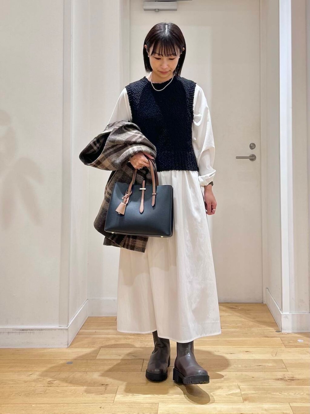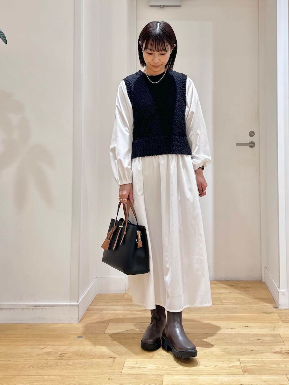 合わせたインナーは、ニットベストとワンピースがセットになったアイテム!