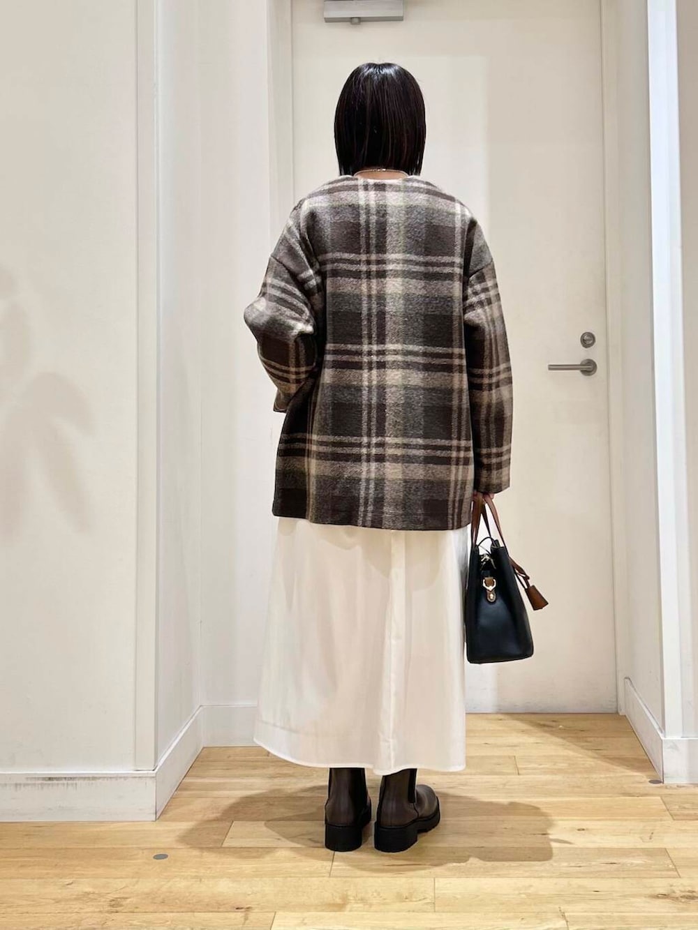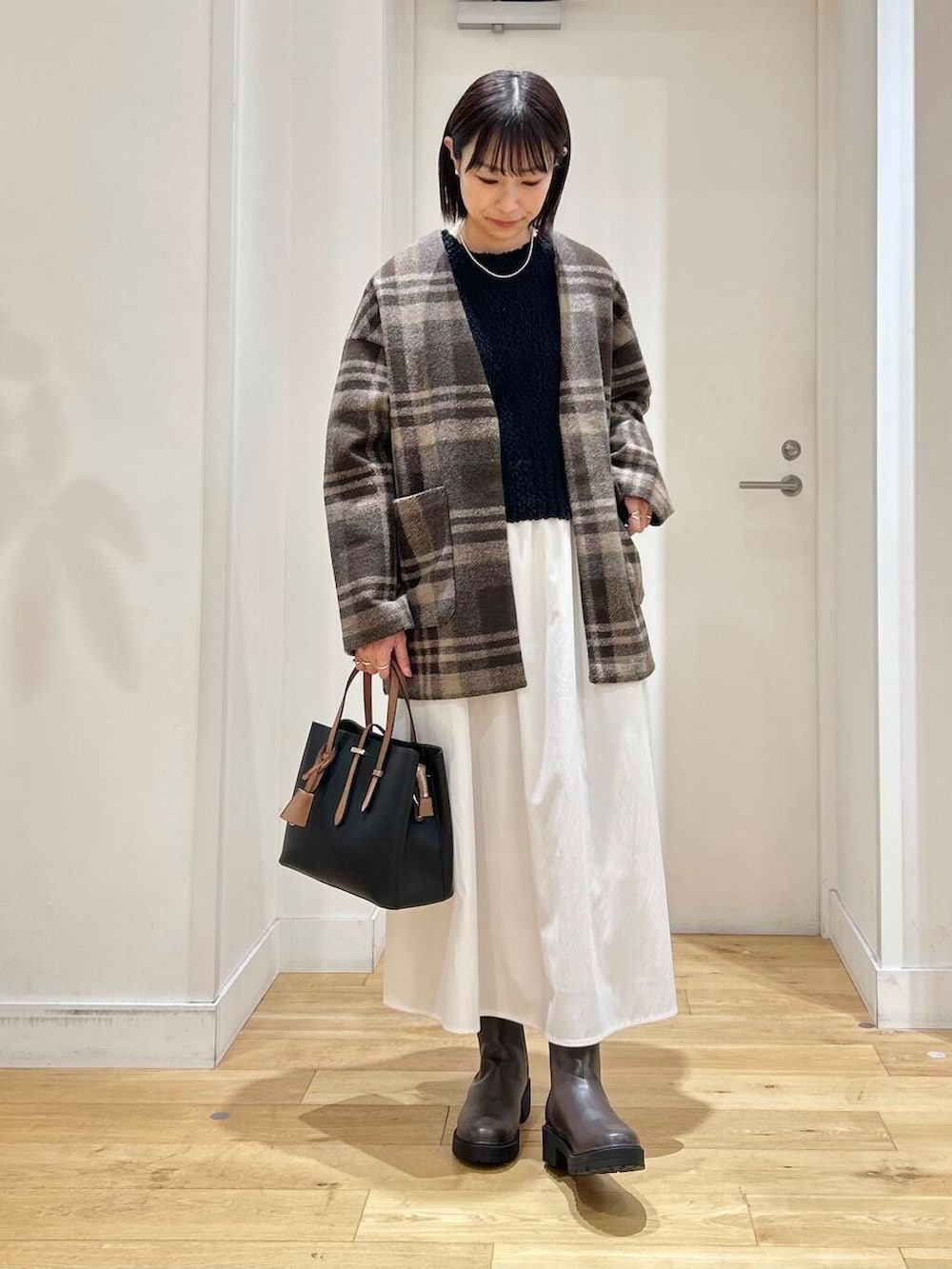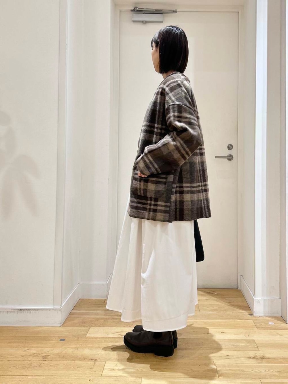 チェック柄が可愛いガウンコートは、ボタンの無いシンプルなデザインで、カーディガンのように楽にさらっと羽織れますよ◎