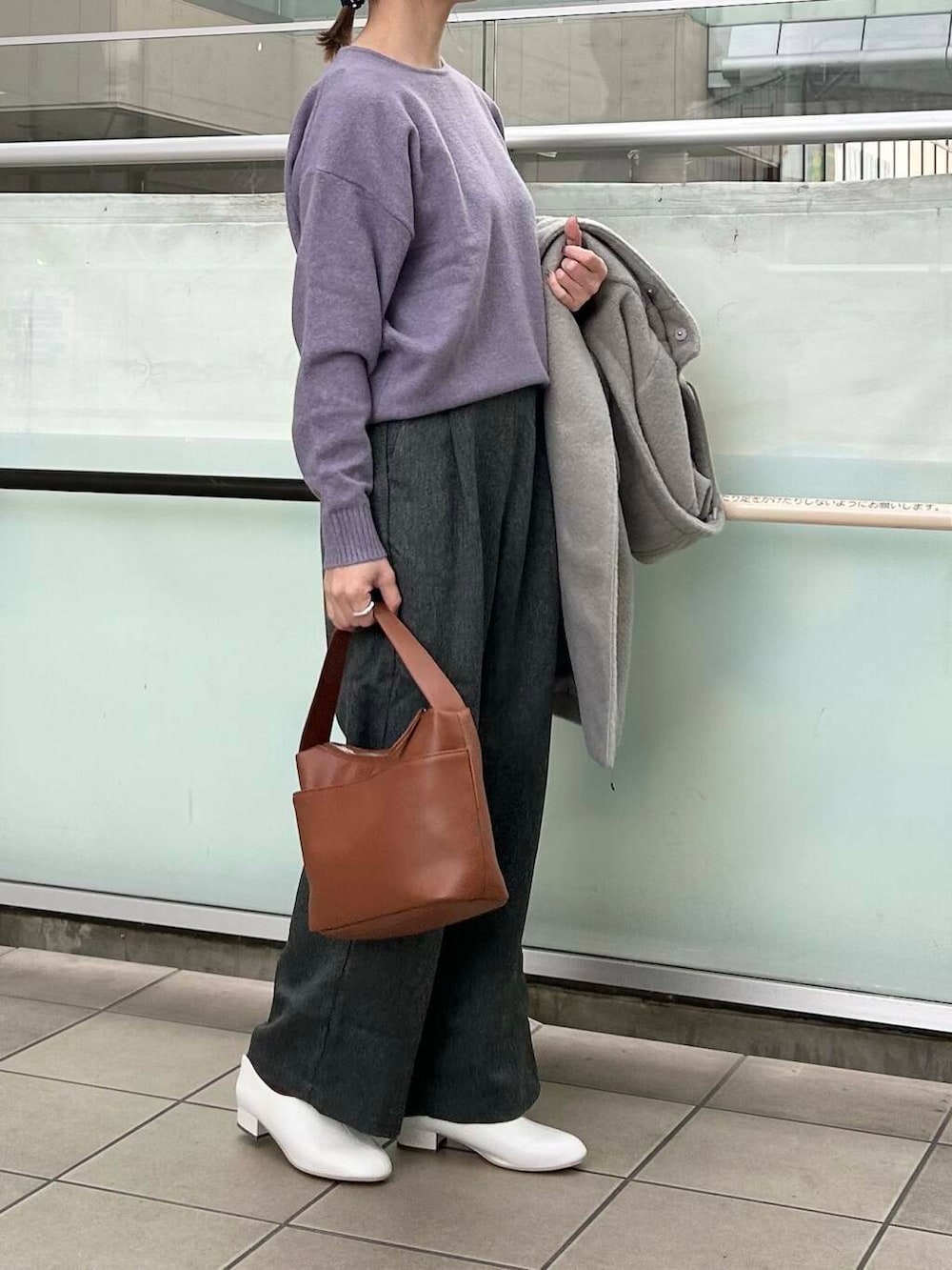 ボトムはオンオフ使えるイージーパンツを合わせました。