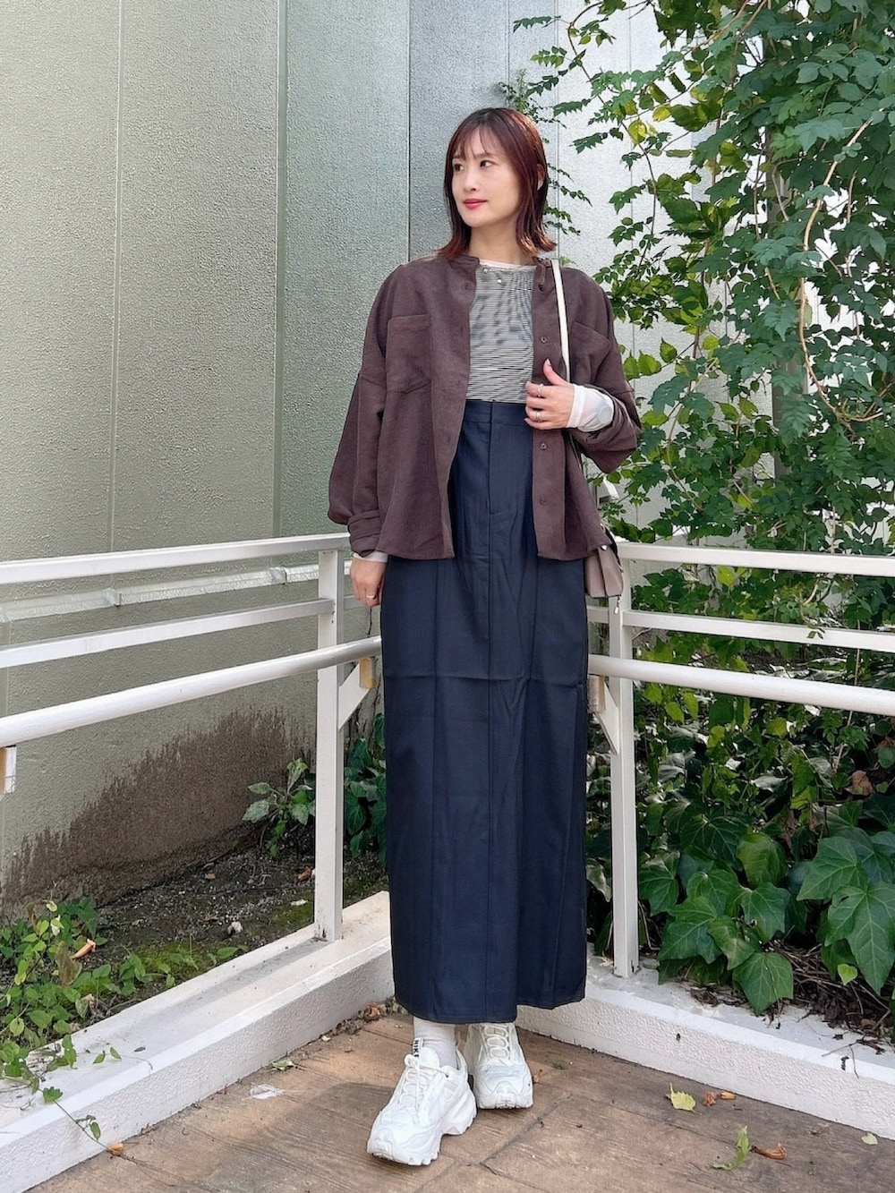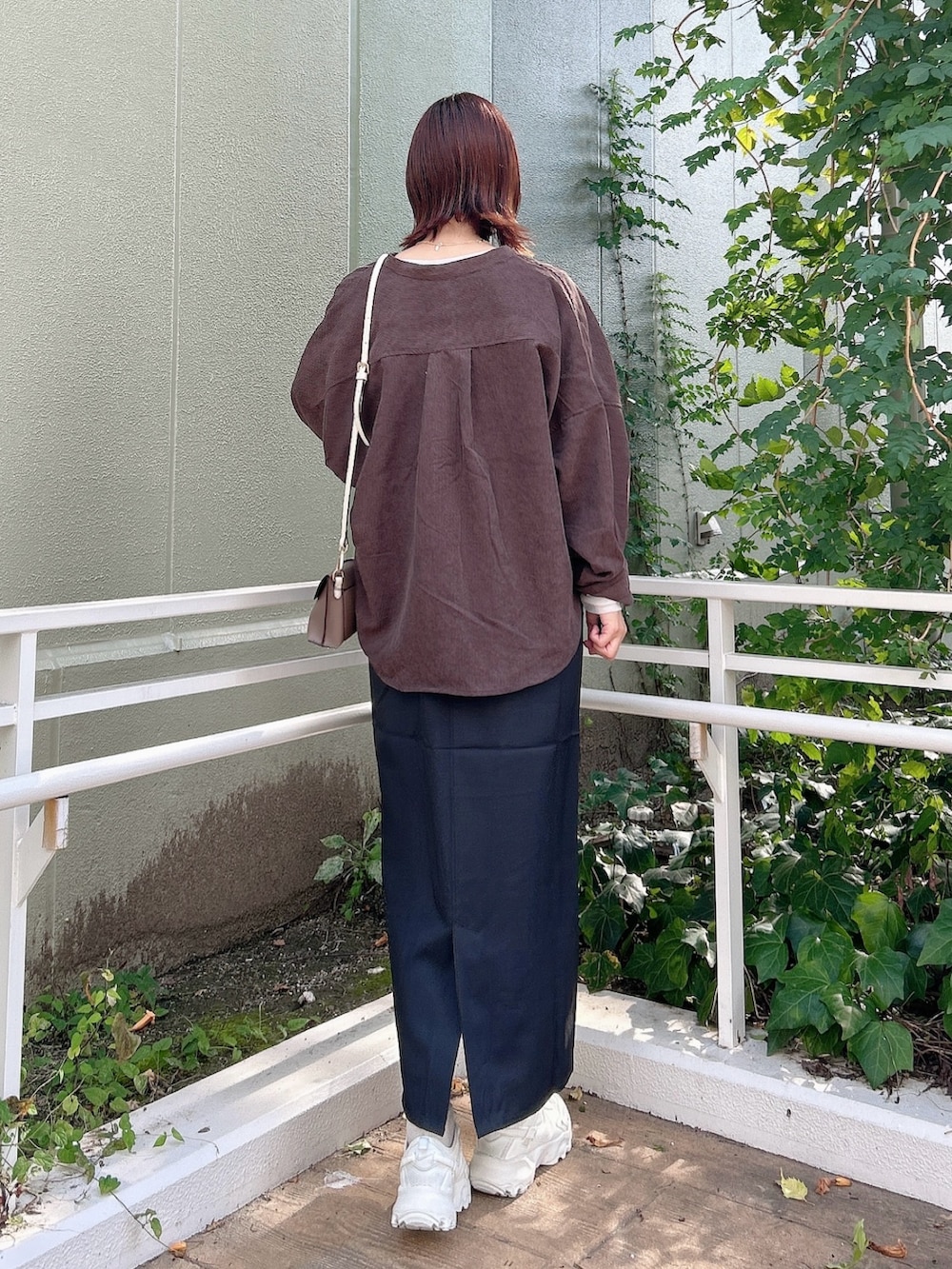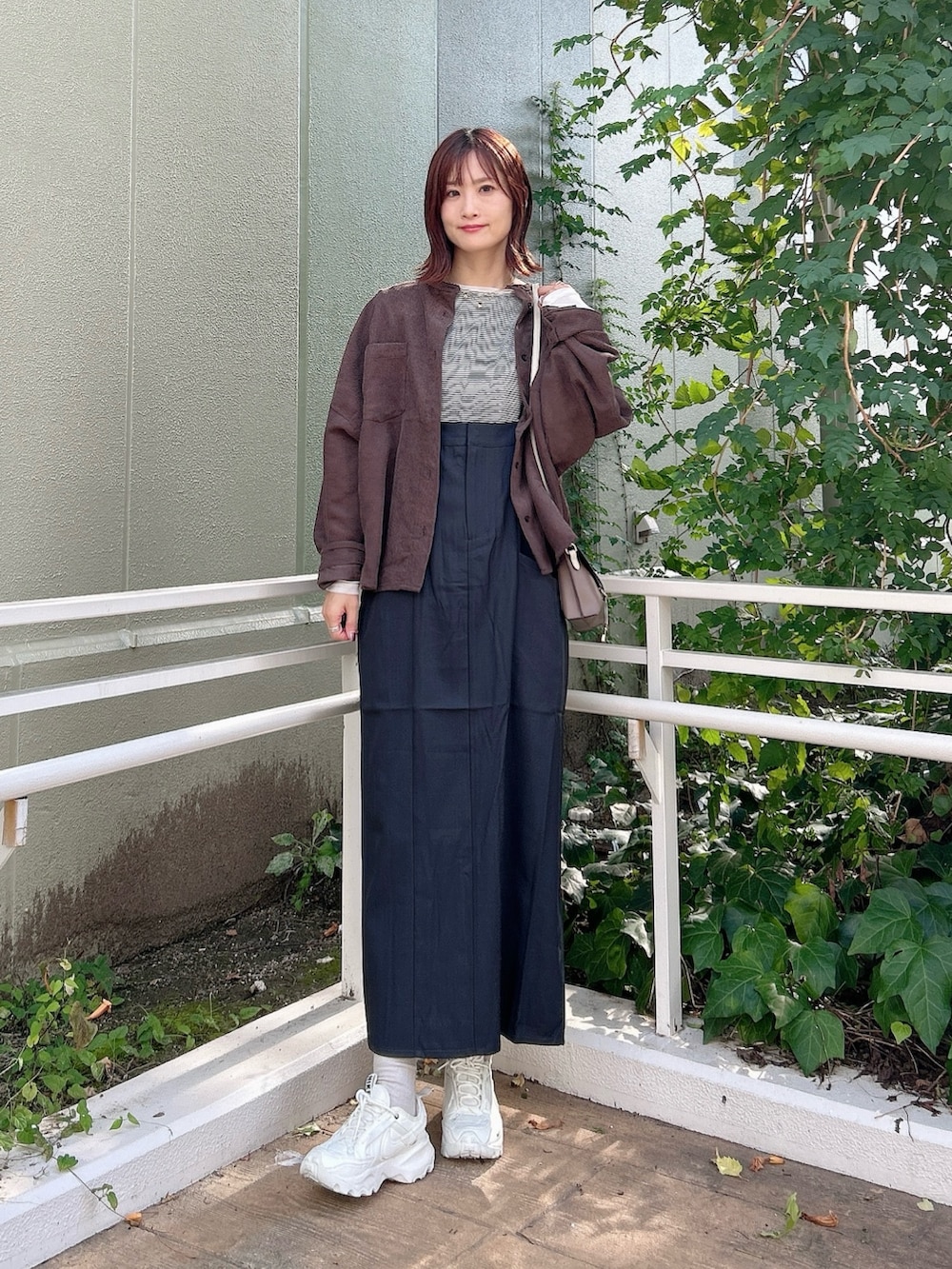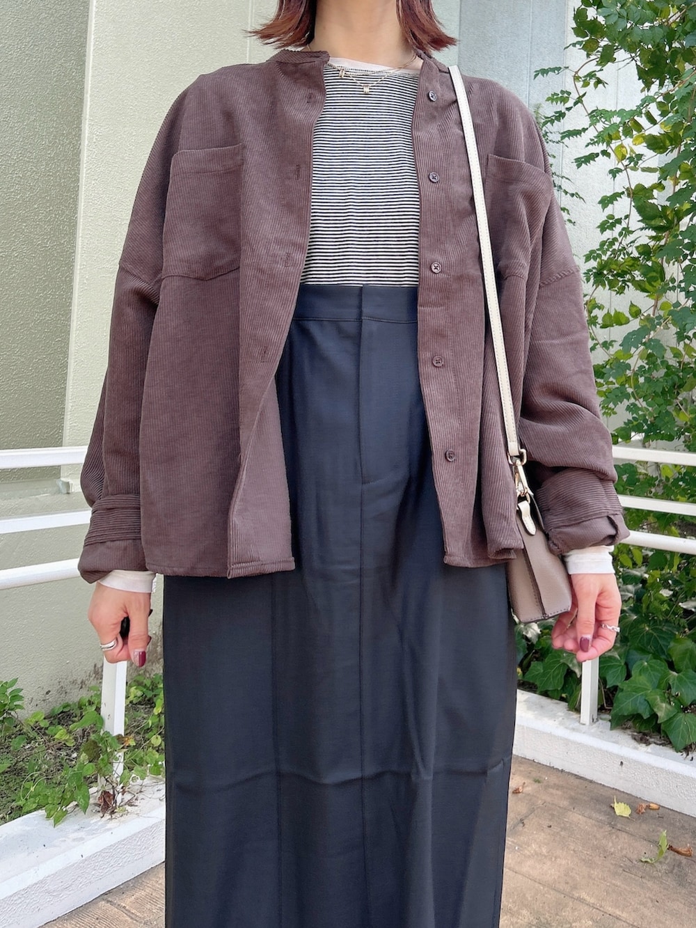 ✔︎ 縦長シルエットでスタイルアップ効果抜群。ツイル素材が大人っぽさを引き立て、カジュアルにもきれいめにも合わせやすい一枚