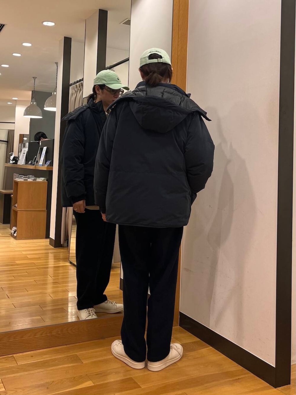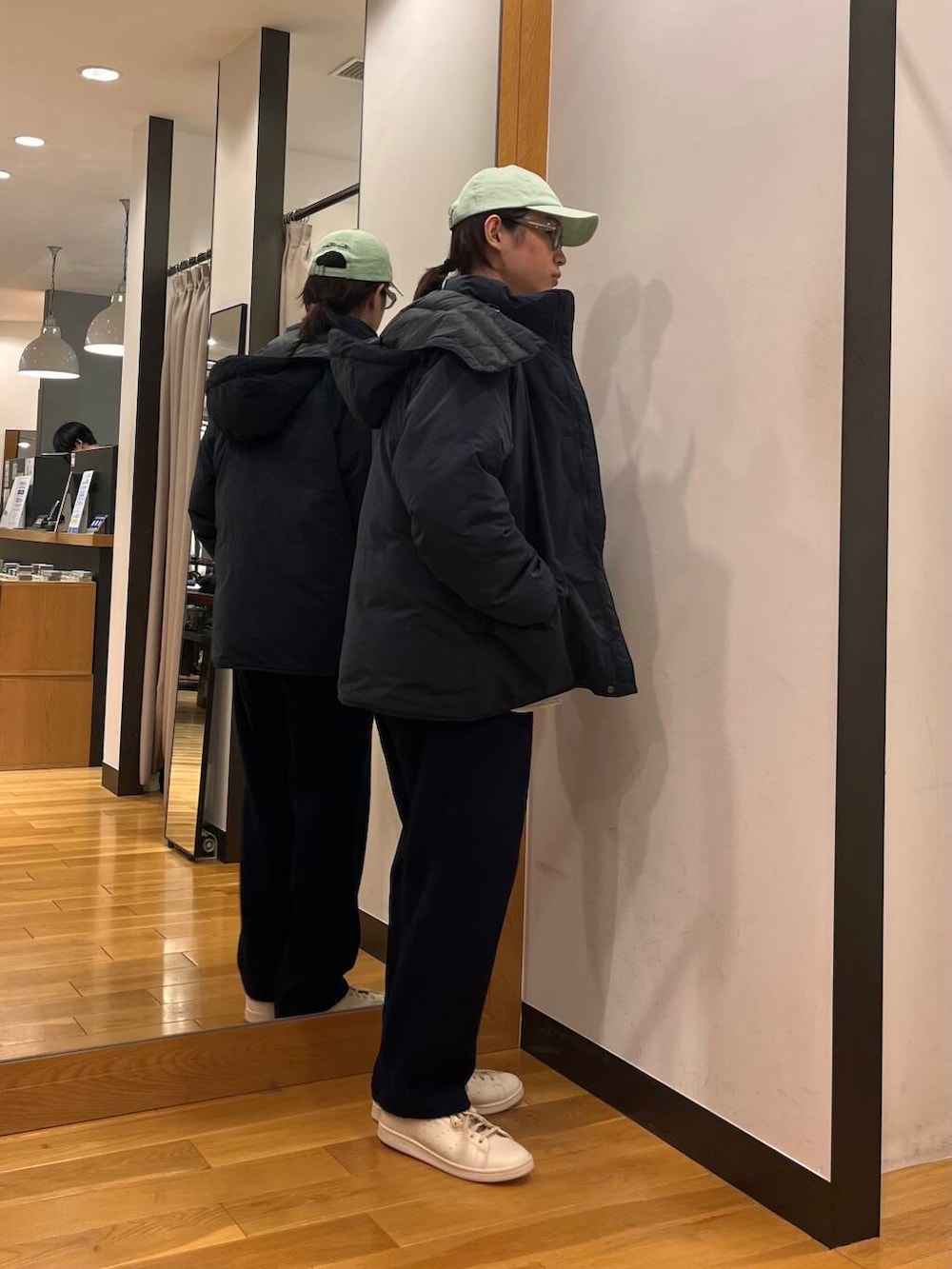 ・パーカーとのスタイリング時にはフードを外してレイヤードを