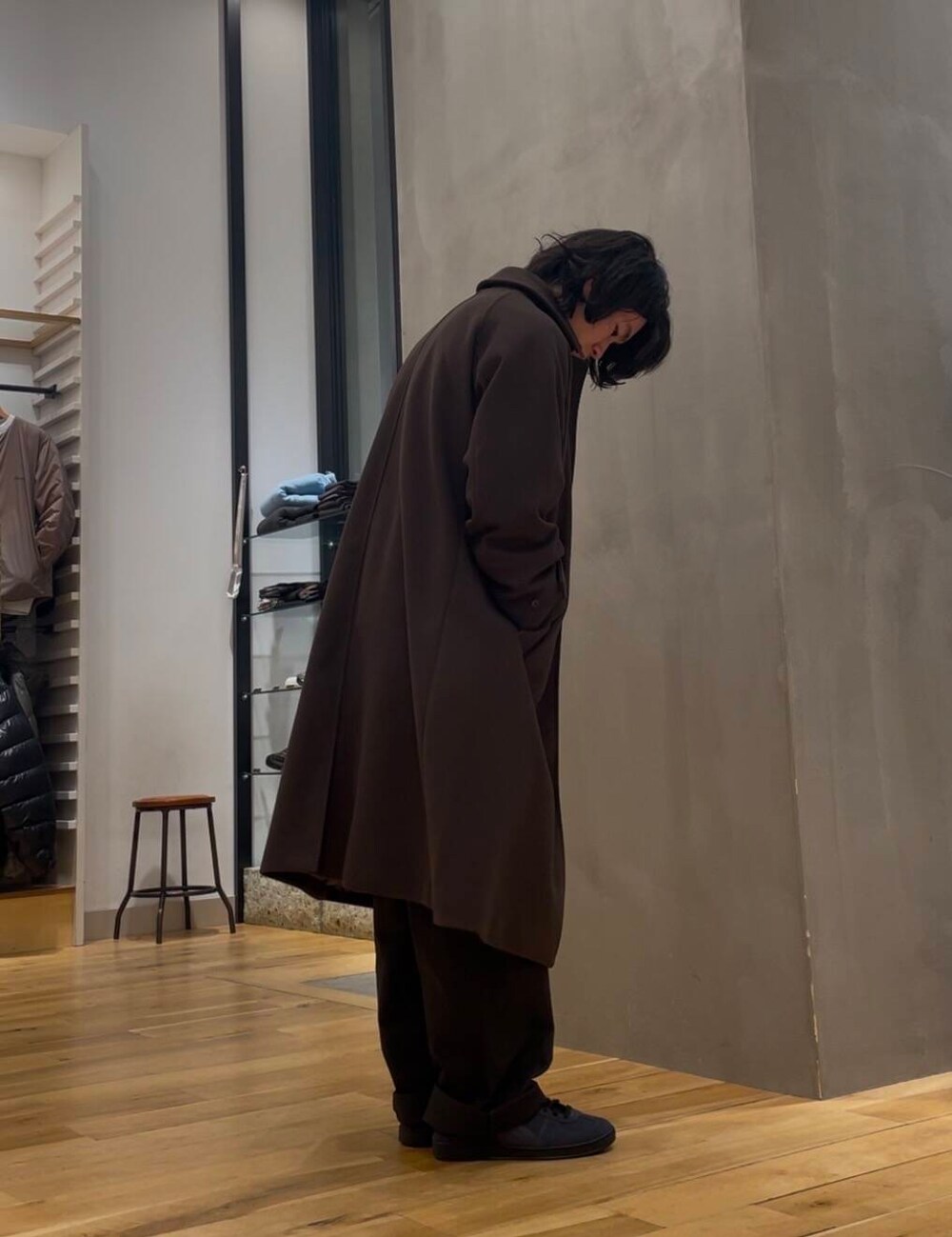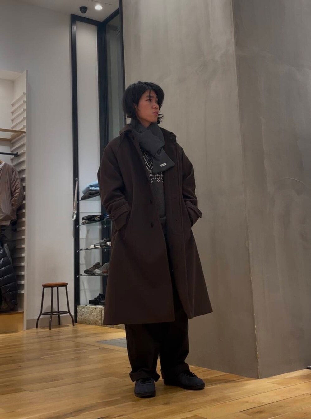 インナーに冬らしいノルディック柄のセーター、首元にダウンマフラーを合わせて程よいカジュアル感をミックスしました。