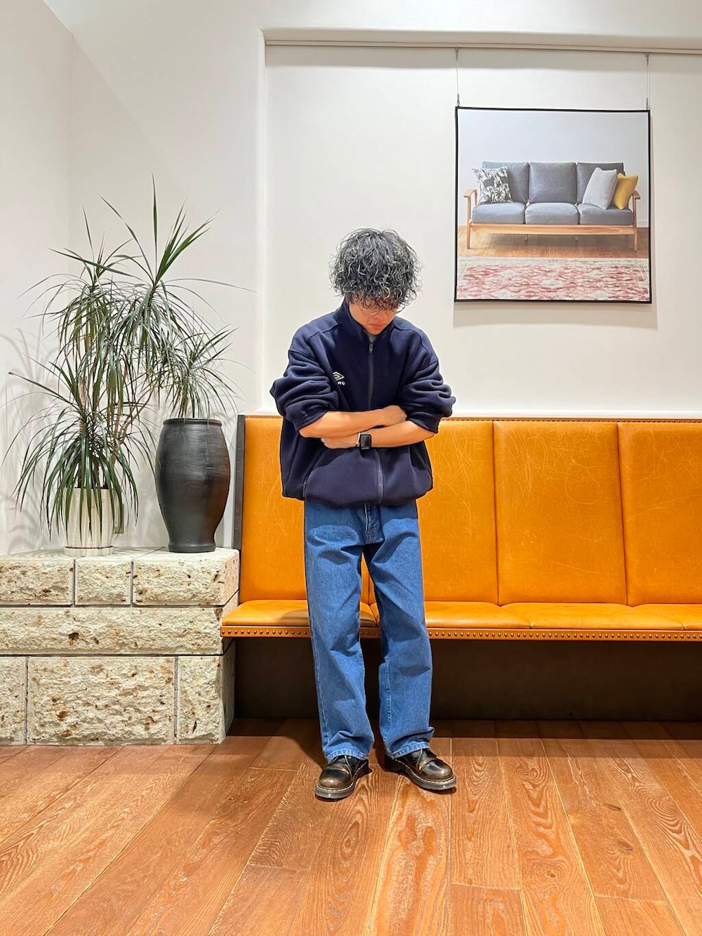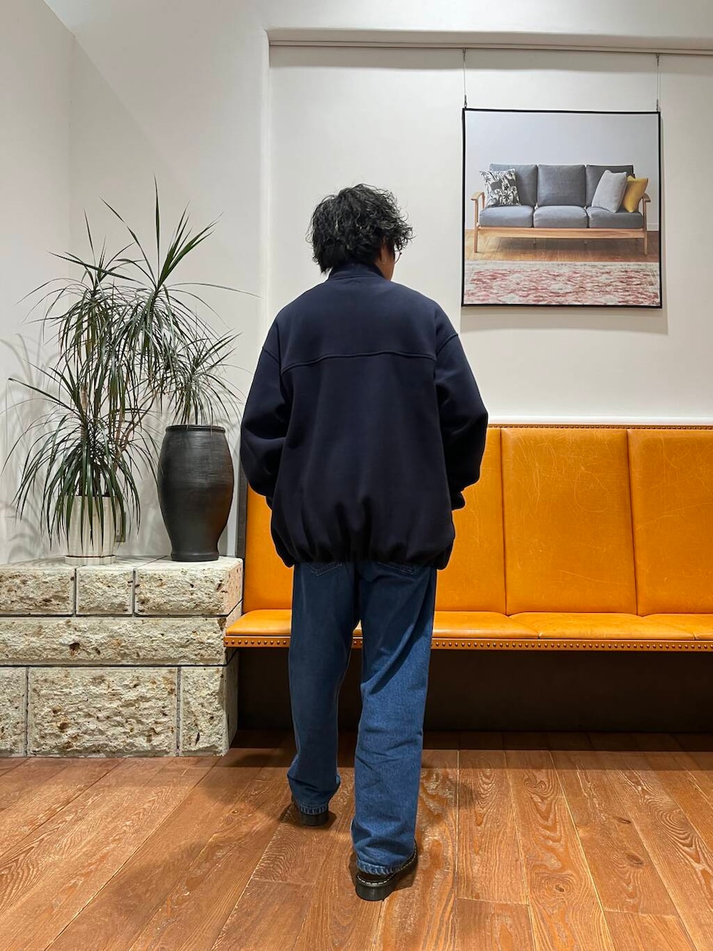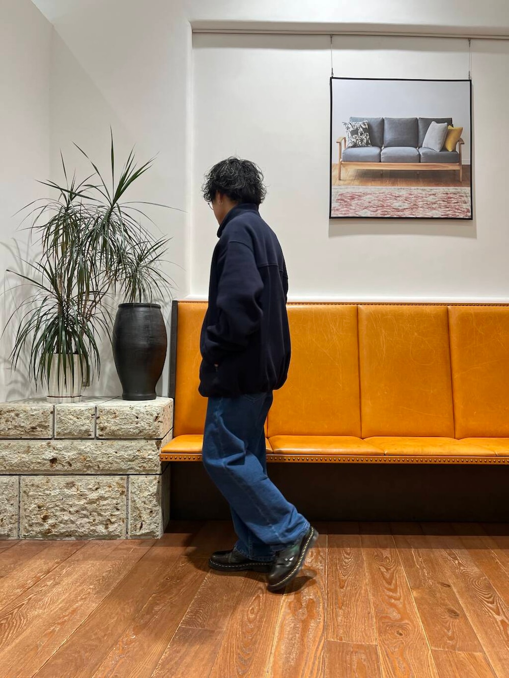 UMBRO別注のフリースでスタイリングを組みました。ネイビーに相性抜群のデニムと合わせてます。