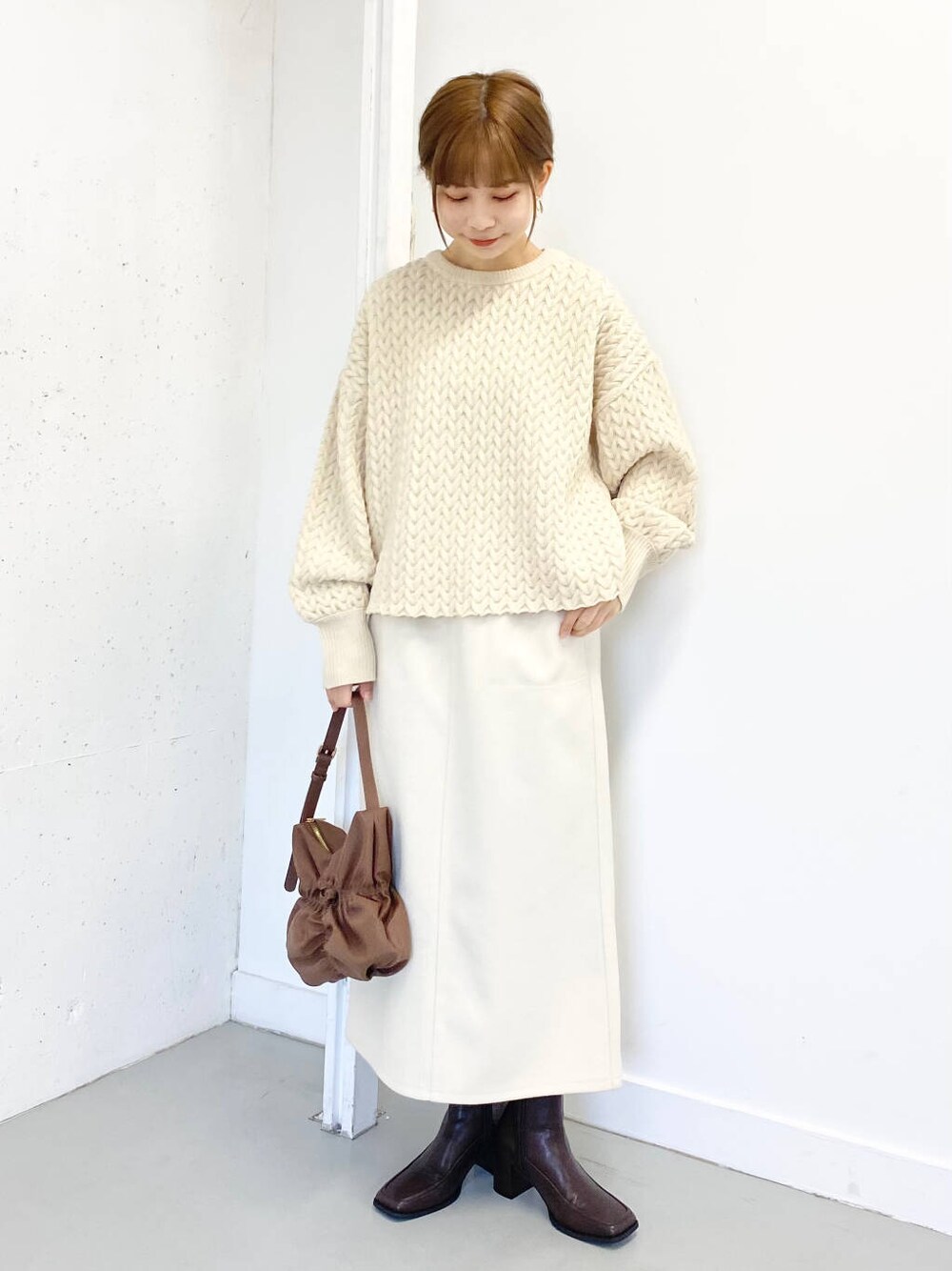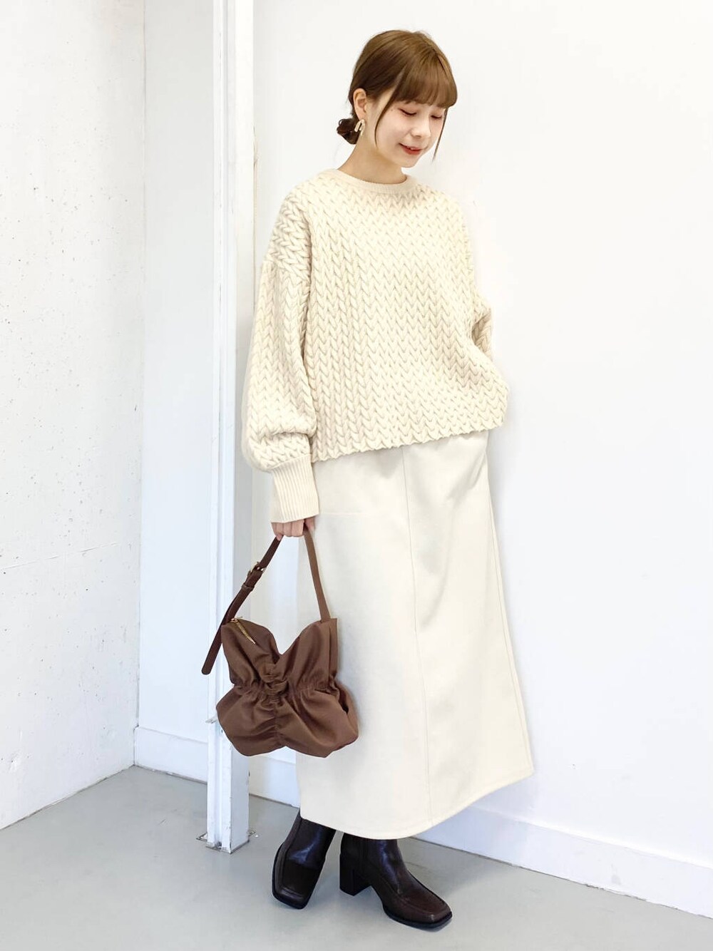 ボリュームは控えめでごわごわしすぎない厚みのニットなので