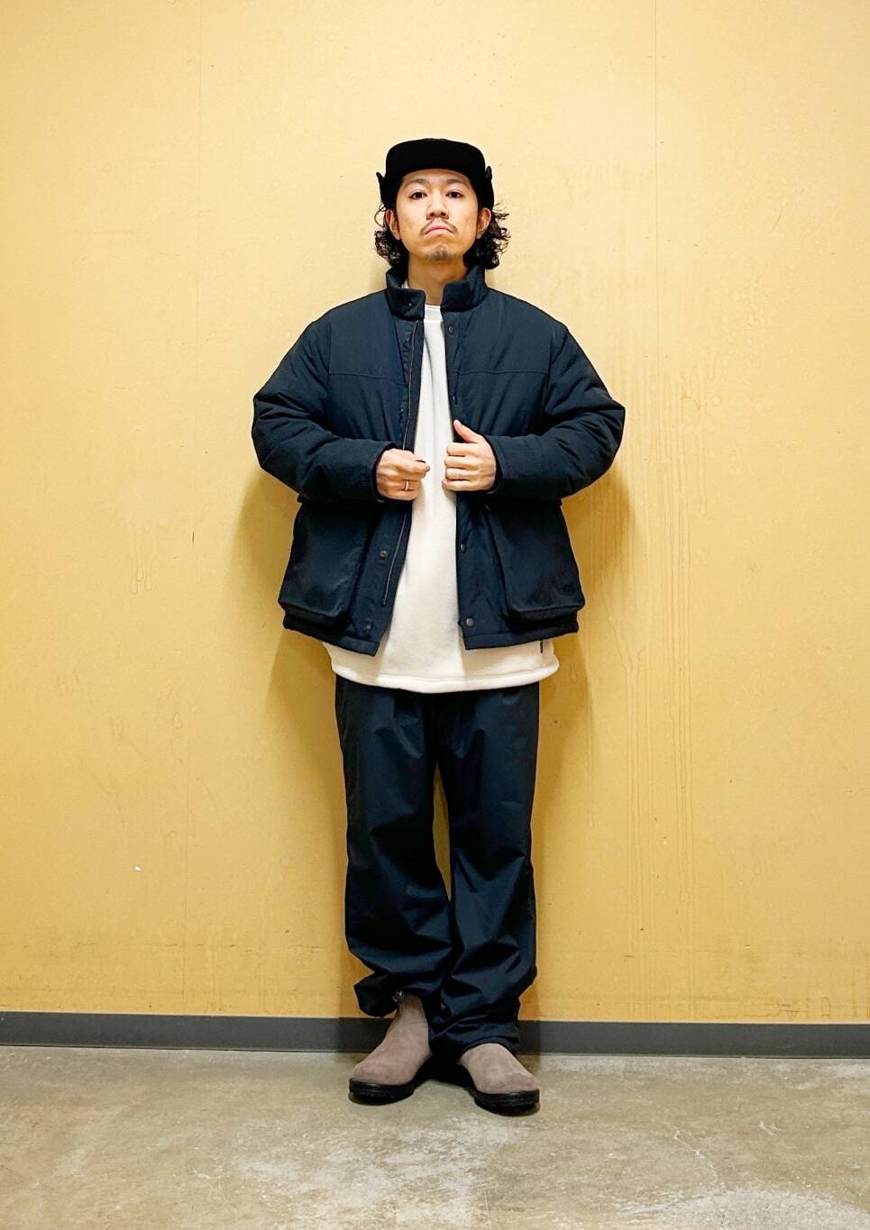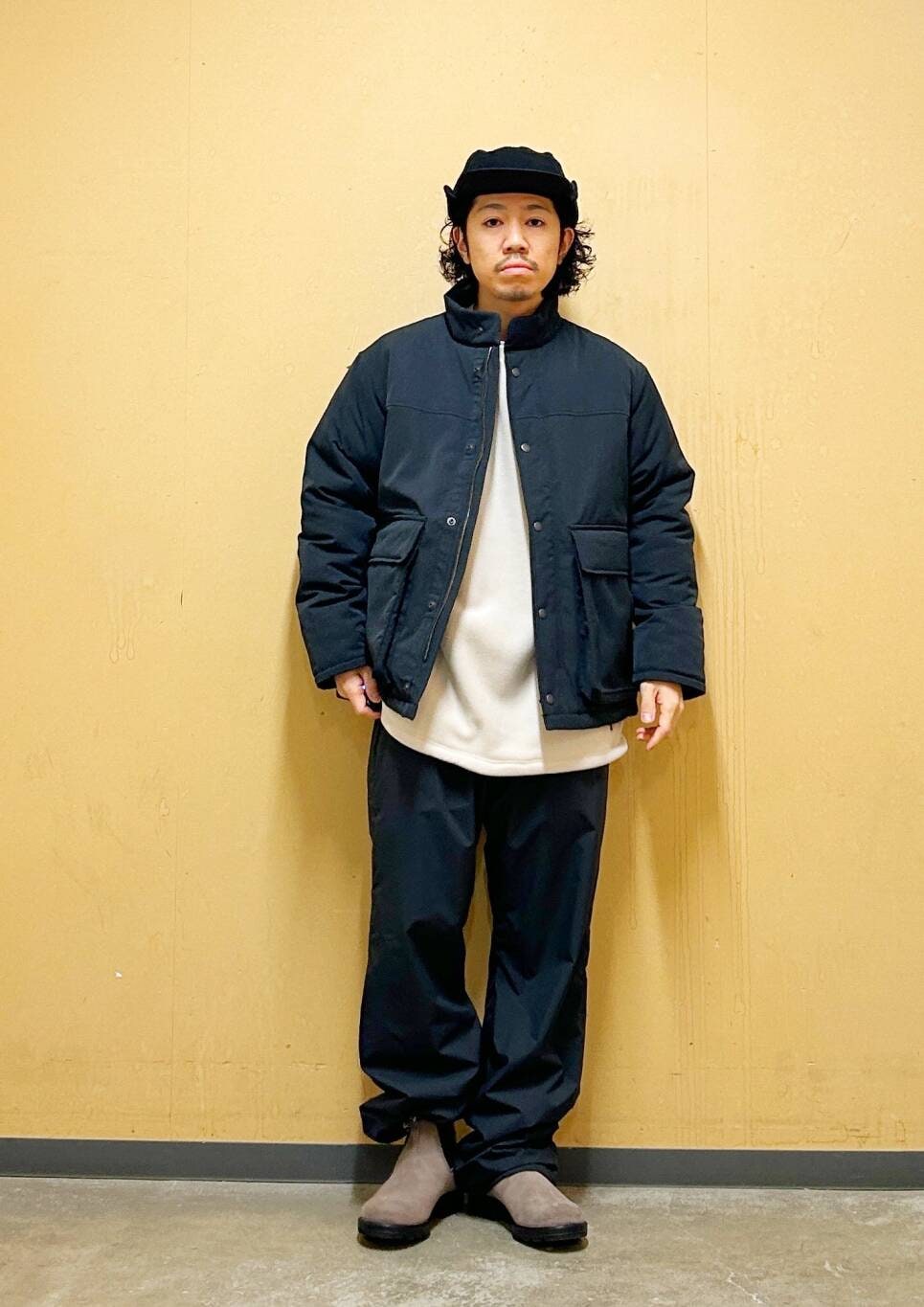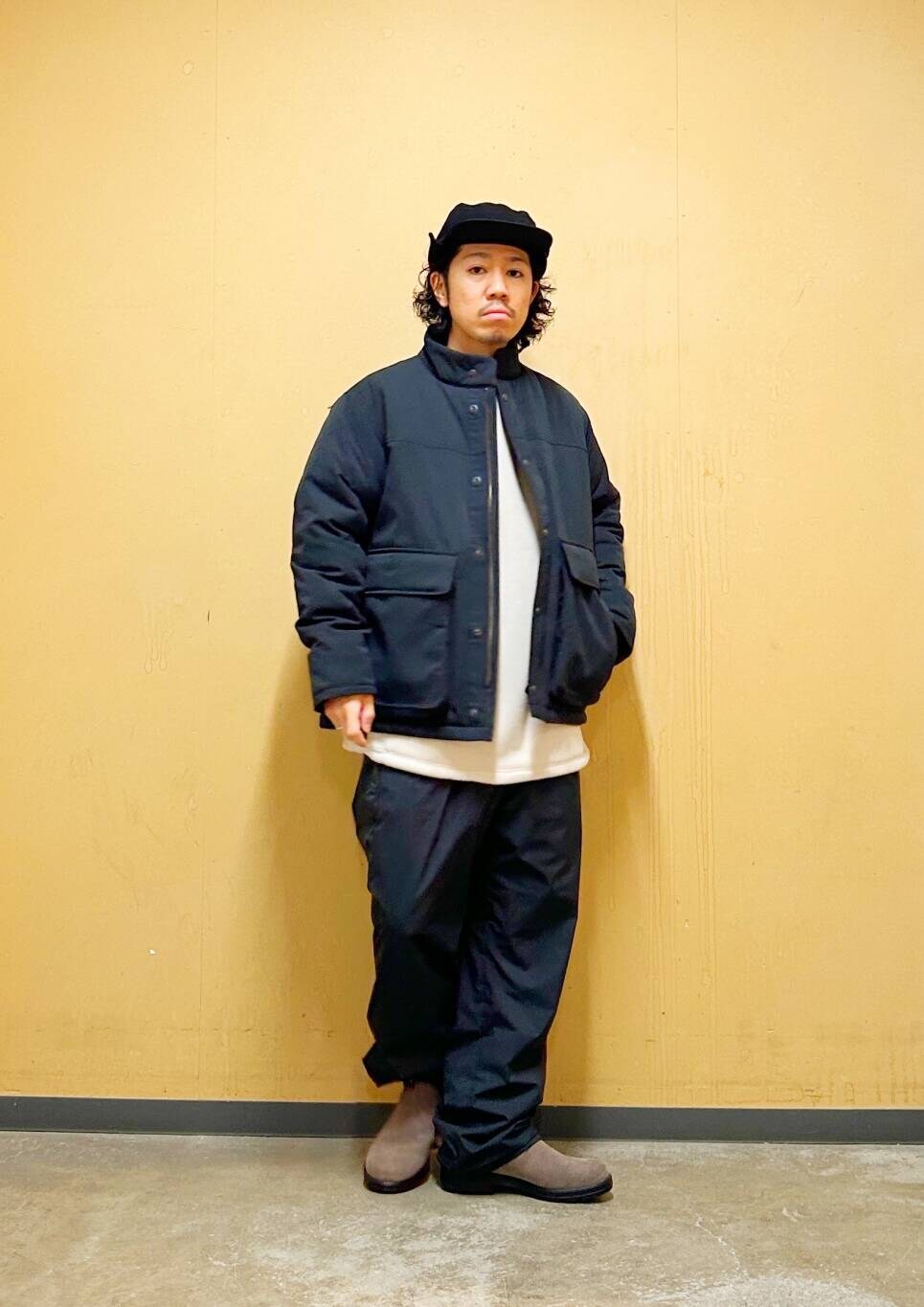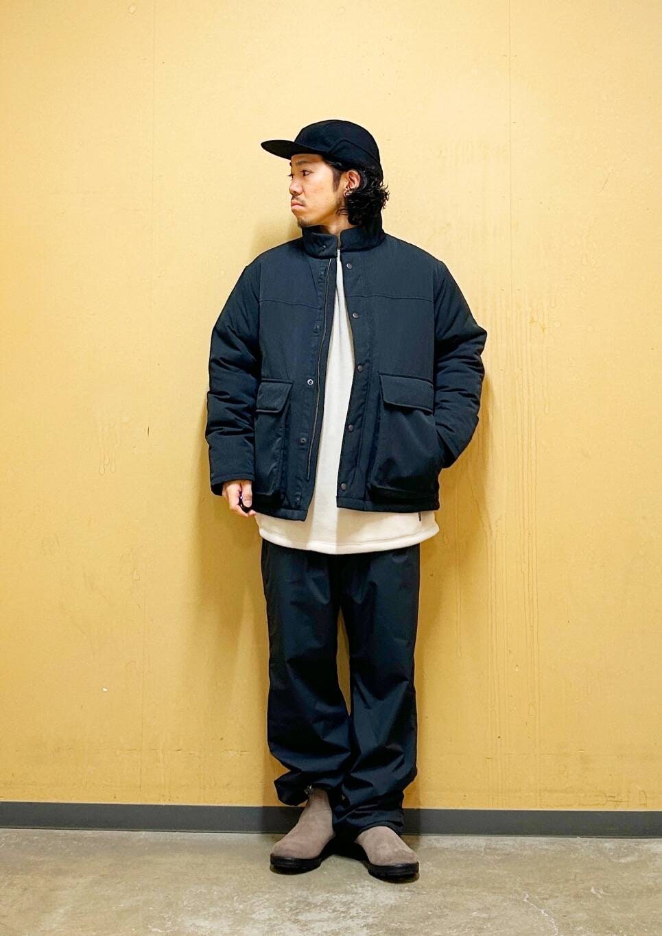 今回はSnow Peak Apparel TAKIBI Weather Padded Jacketとイージーパンツを使用したコーディネート。