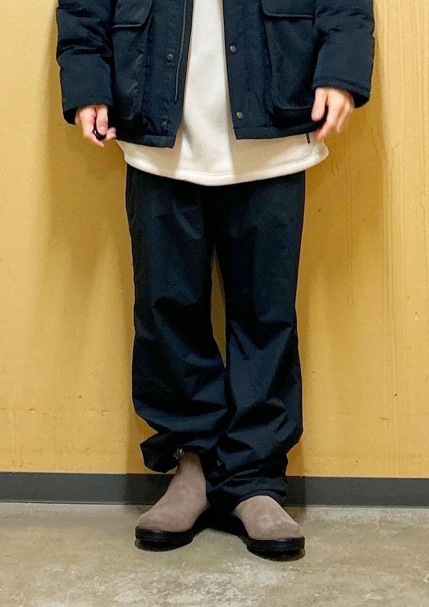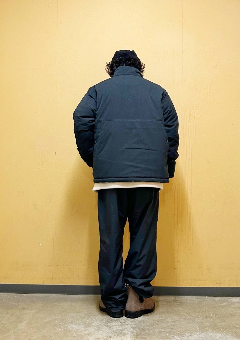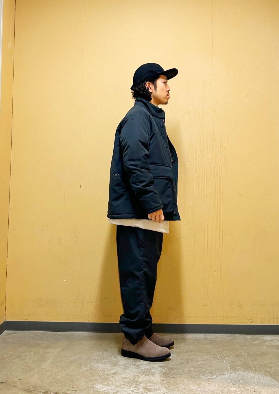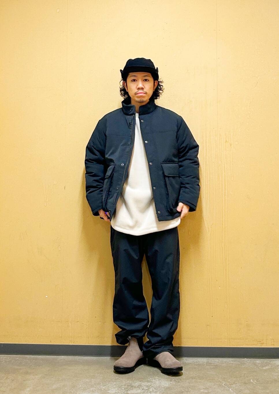 今回はSnow Peak Apparel TAKIBI Weather Padded Jacketとイージーパンツを使用したコーディネート。