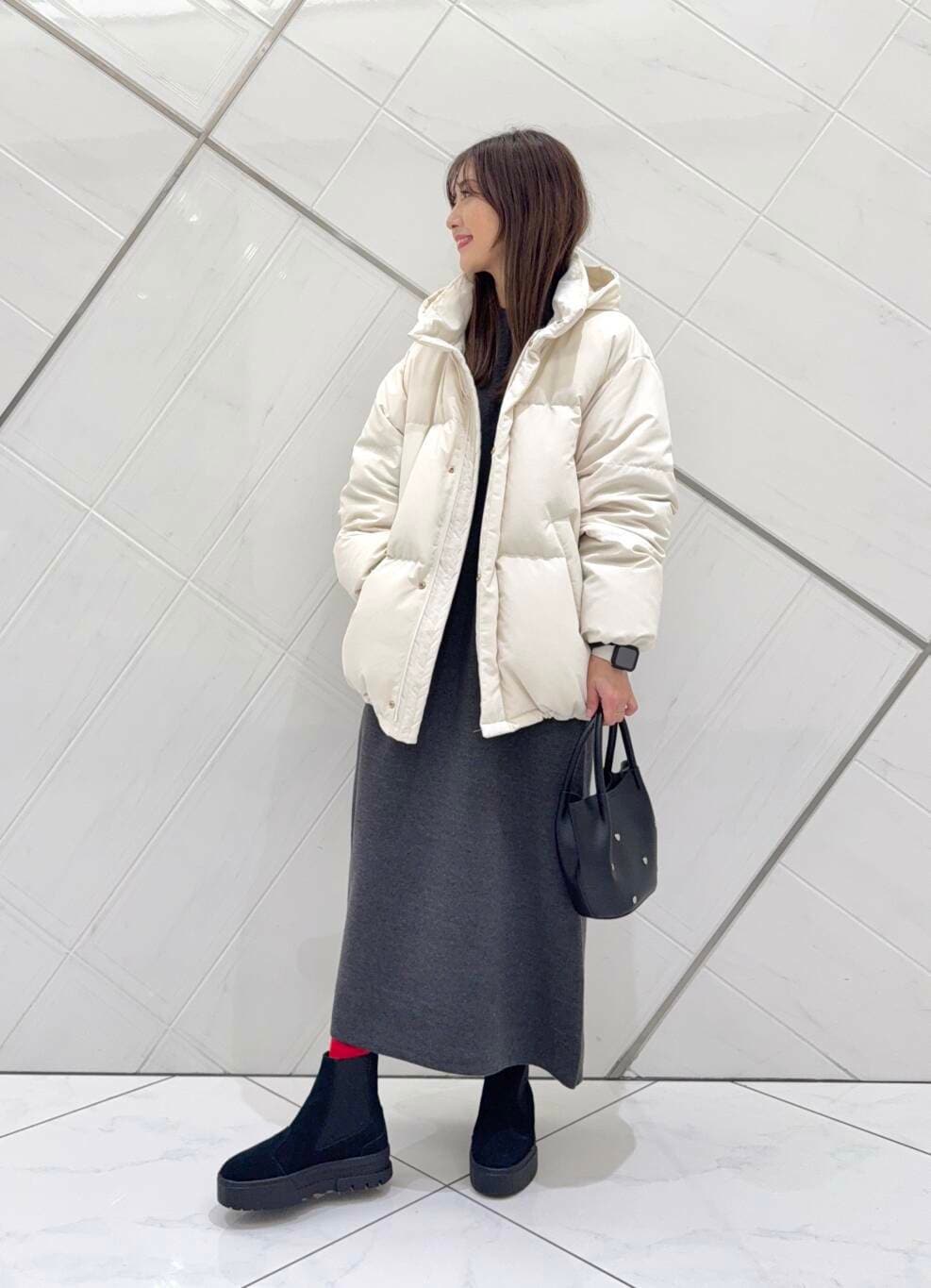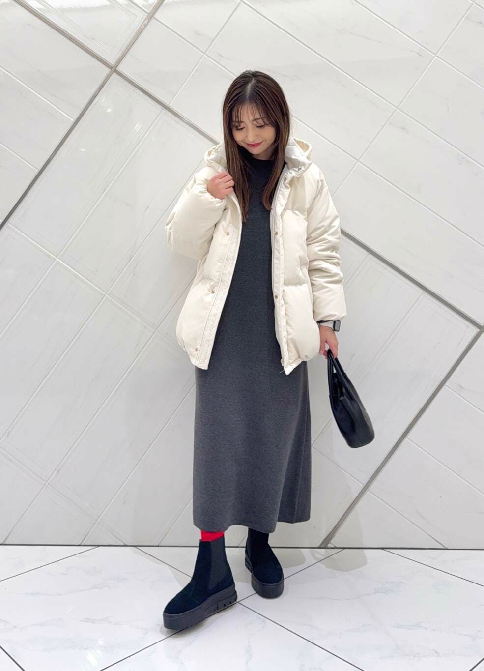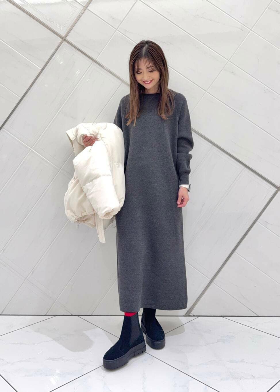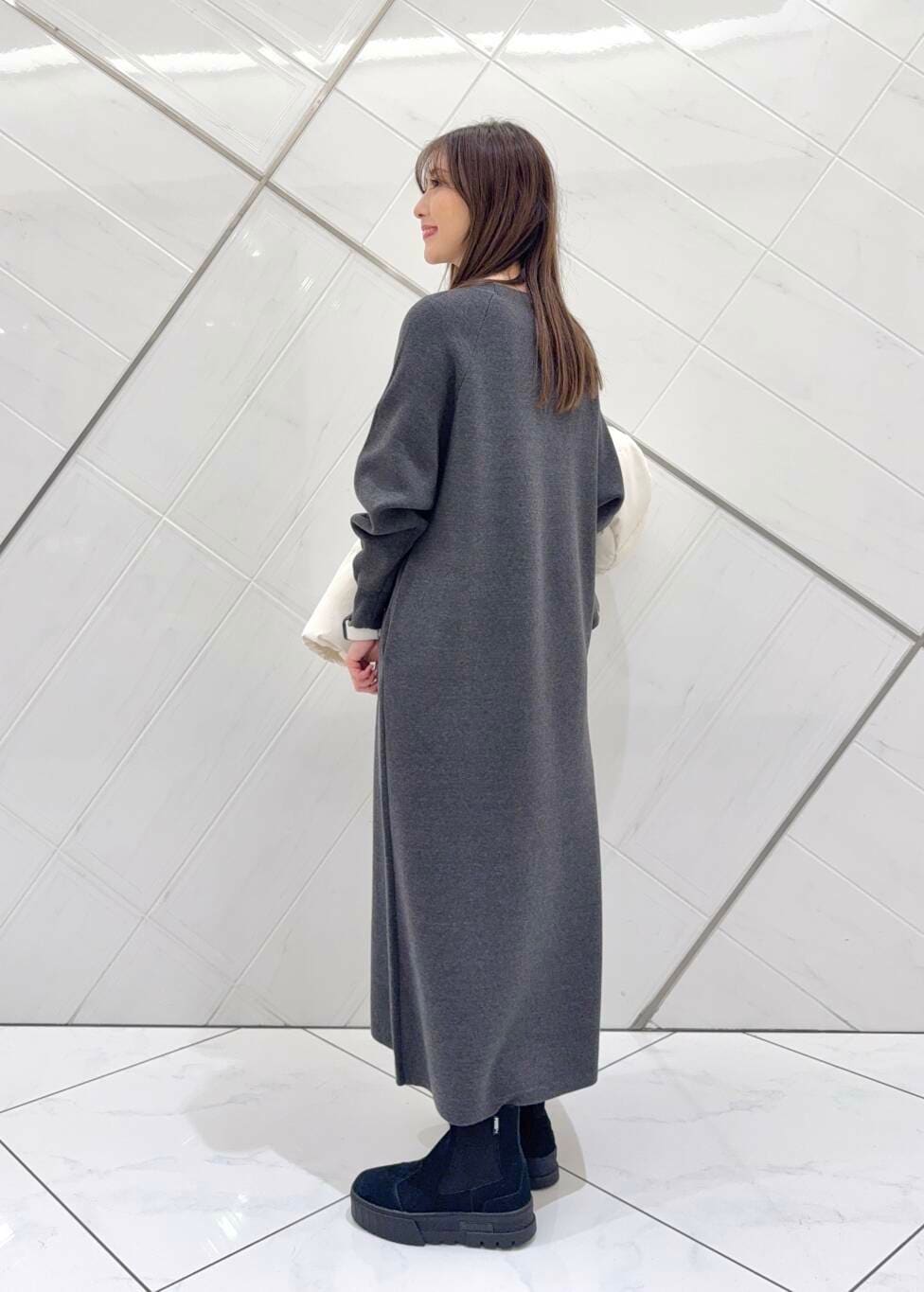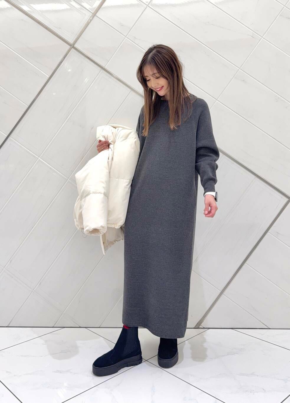 ワンピースはニットとスウェットの中間のような生地でやや厚みがあるので暖かく、毛玉になりにくいので優秀なアイテムです。