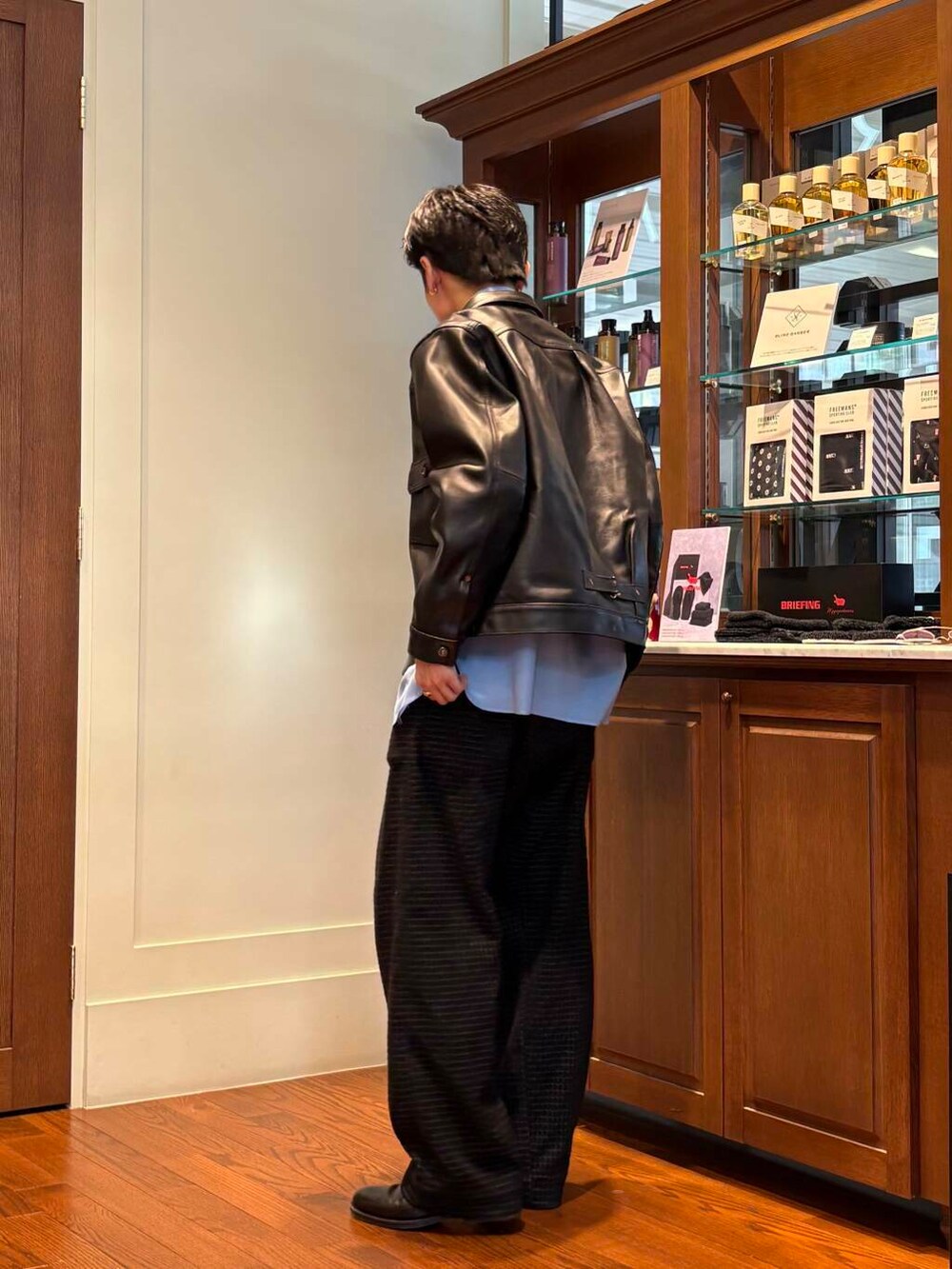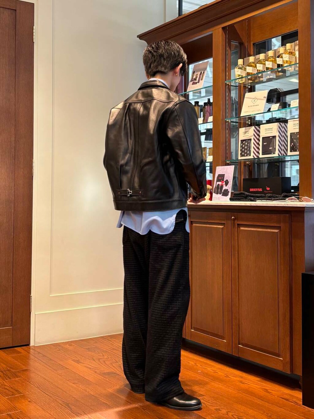 レザージャケットでありながら、シングルやダブルではなく1st型。しかも羊のレザーなので柔らかく着やすい。