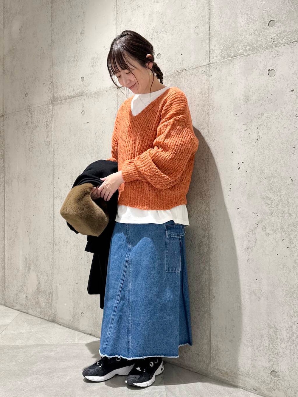 今回は、デニムのロングスカートを合わせた、カジュアルコーディネート。