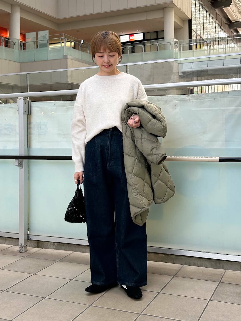 アウターは軽いダウンを合わせました。