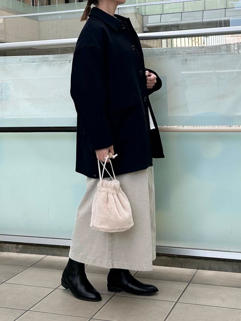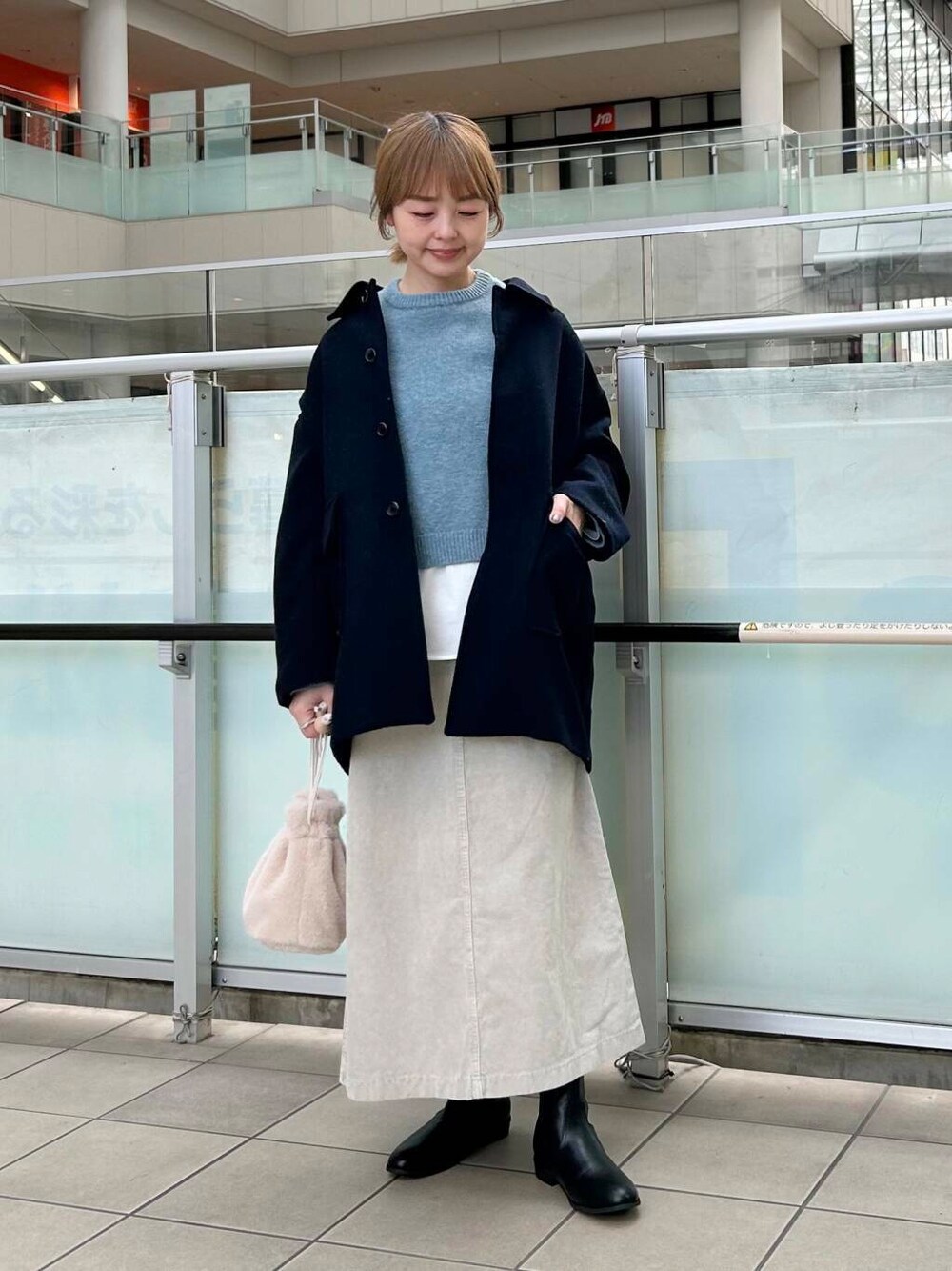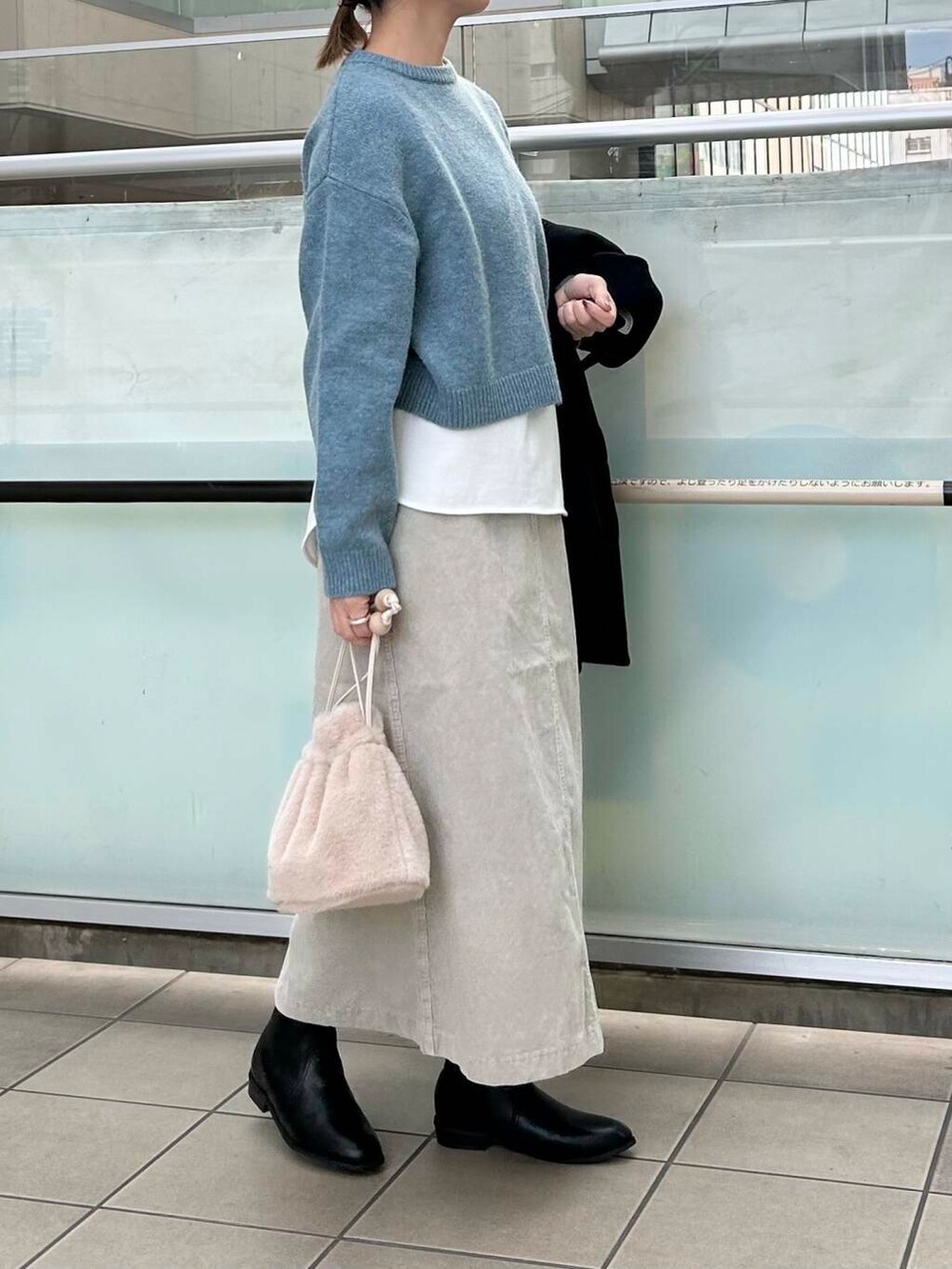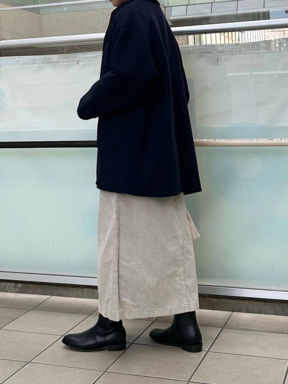 コーデュロイスカートを合わせました。