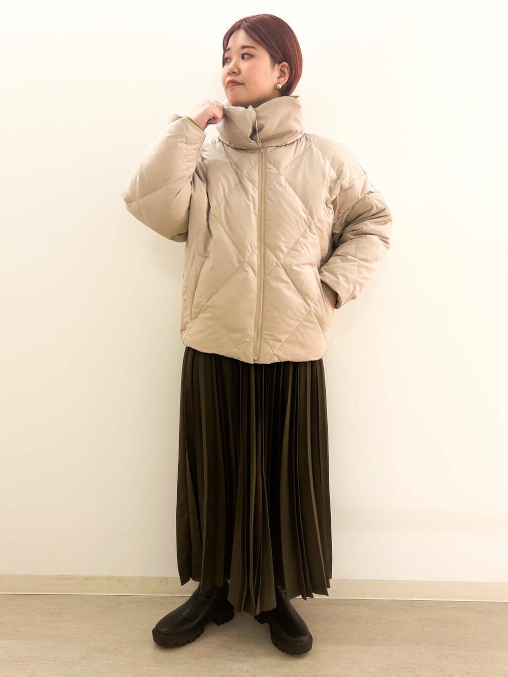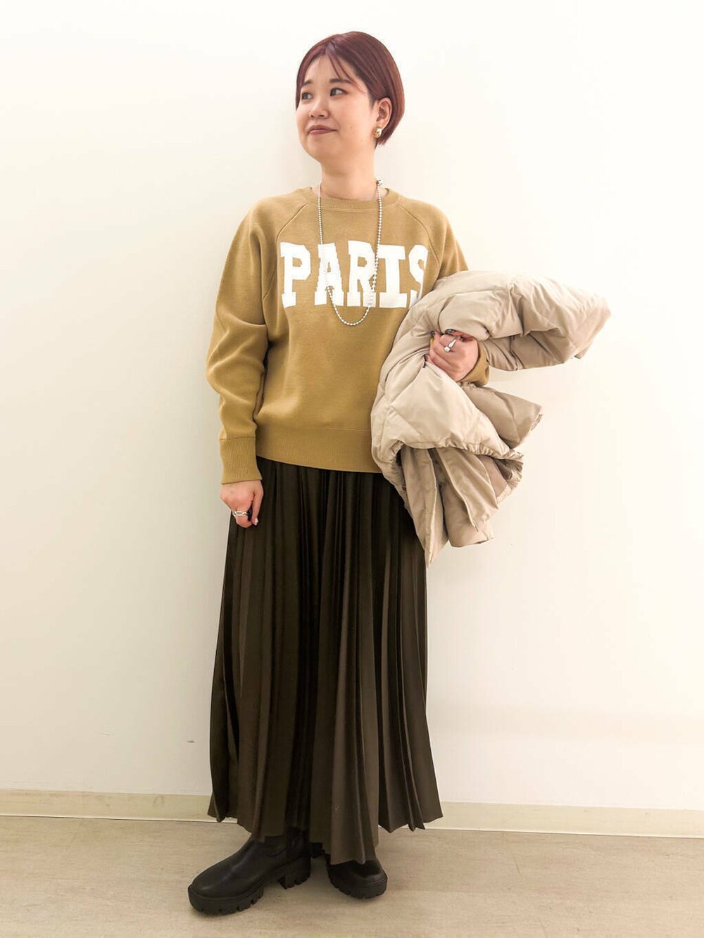 プリーツスカートをあわせて、