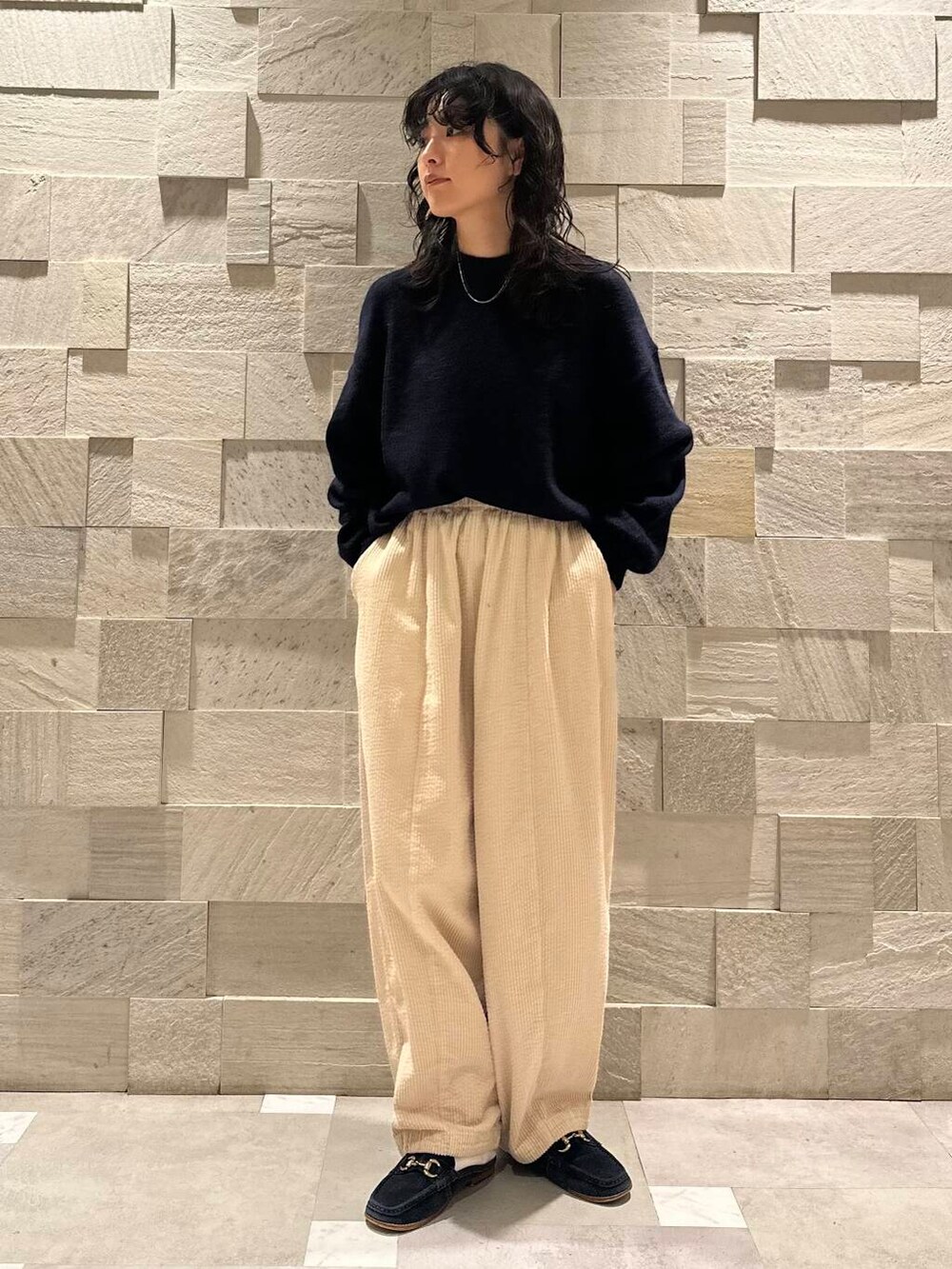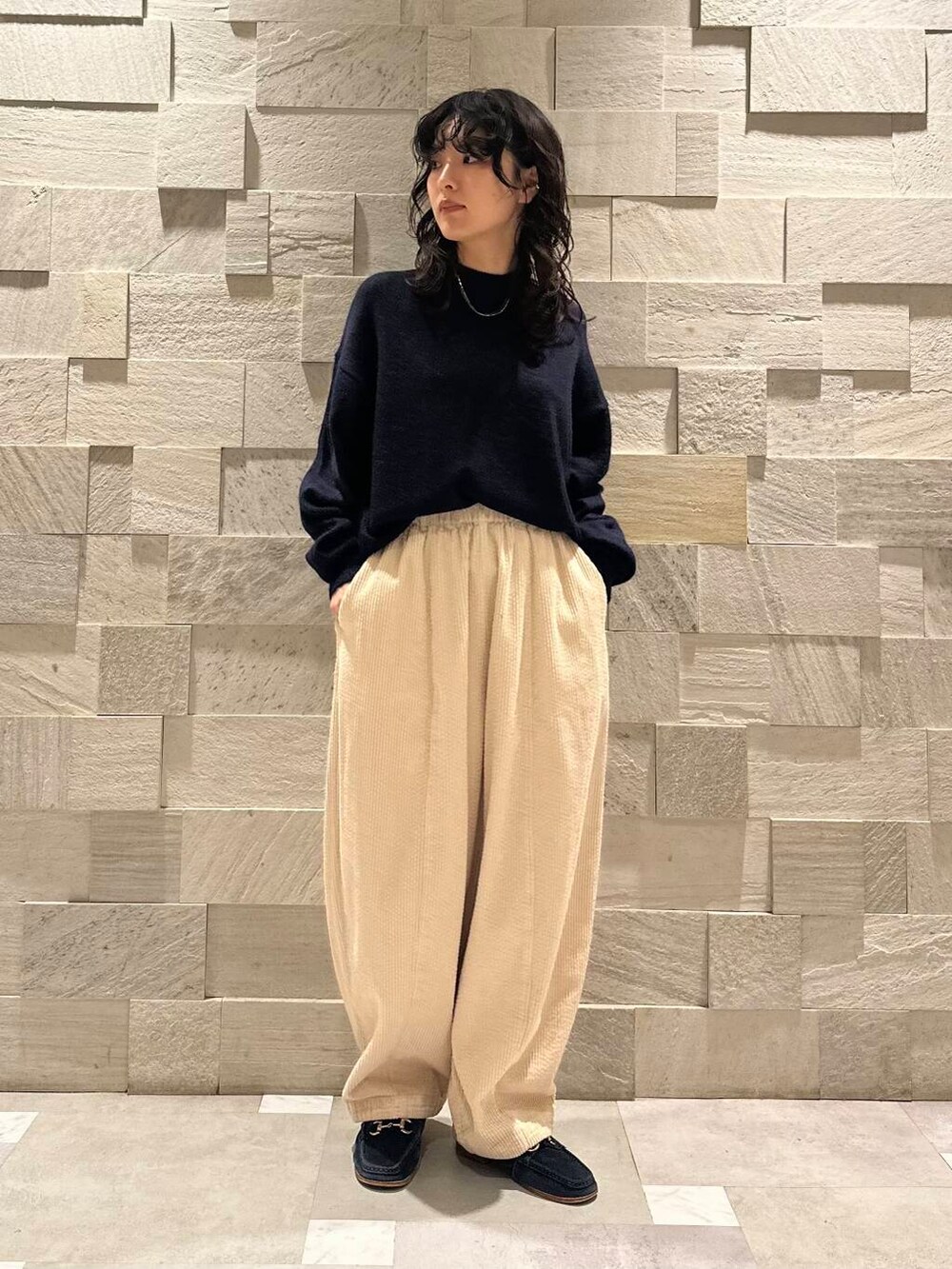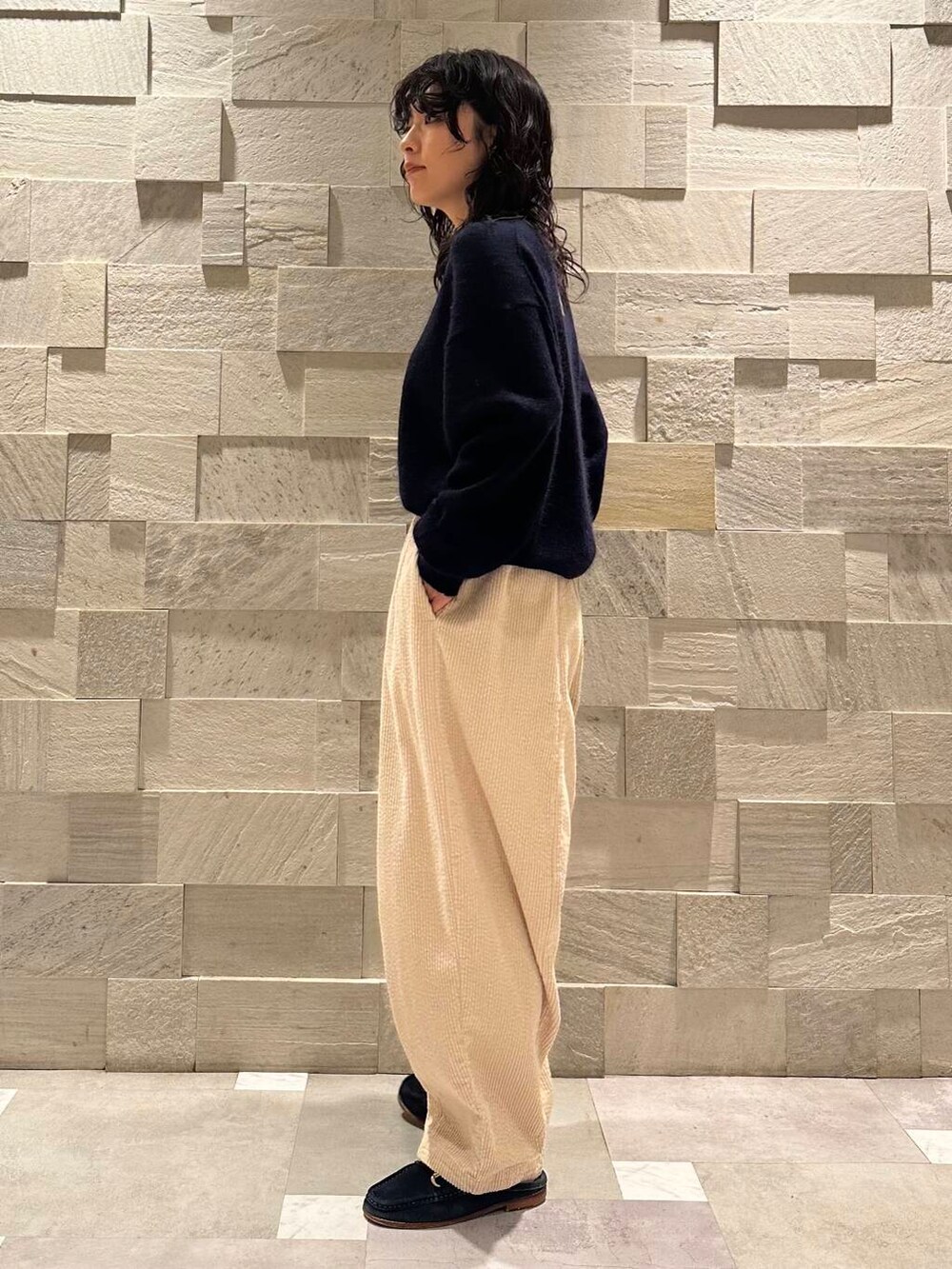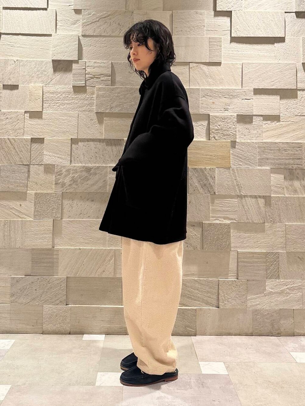コーデュロイですが生地が柔らかいので、ボリューミーシルエットでも着膨れしすぎずに合わせていただけます。