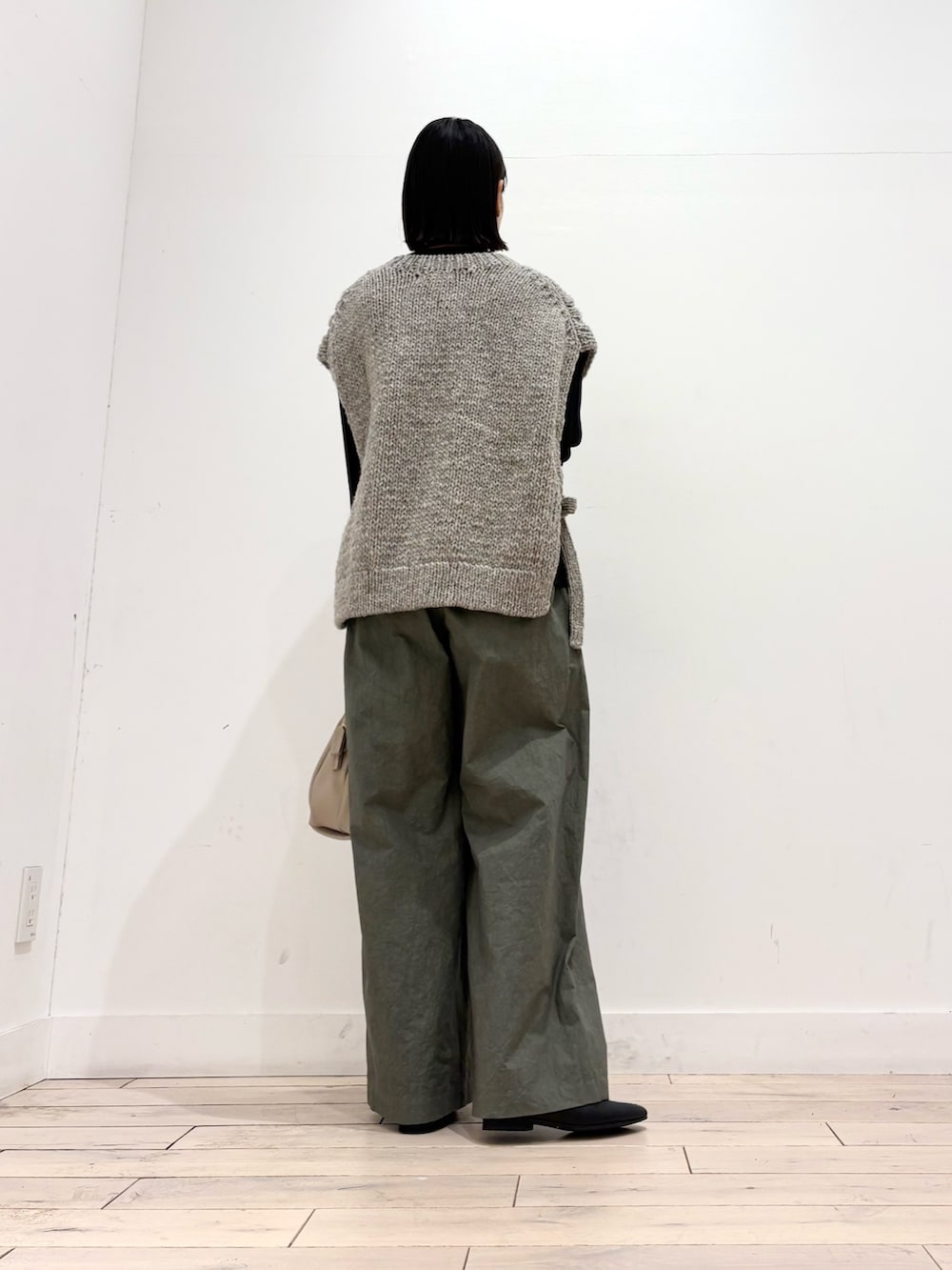 ニットベストは脇は縫い合わせず紐で結ぶ仕様になっており、横から見ても可愛いんです👏