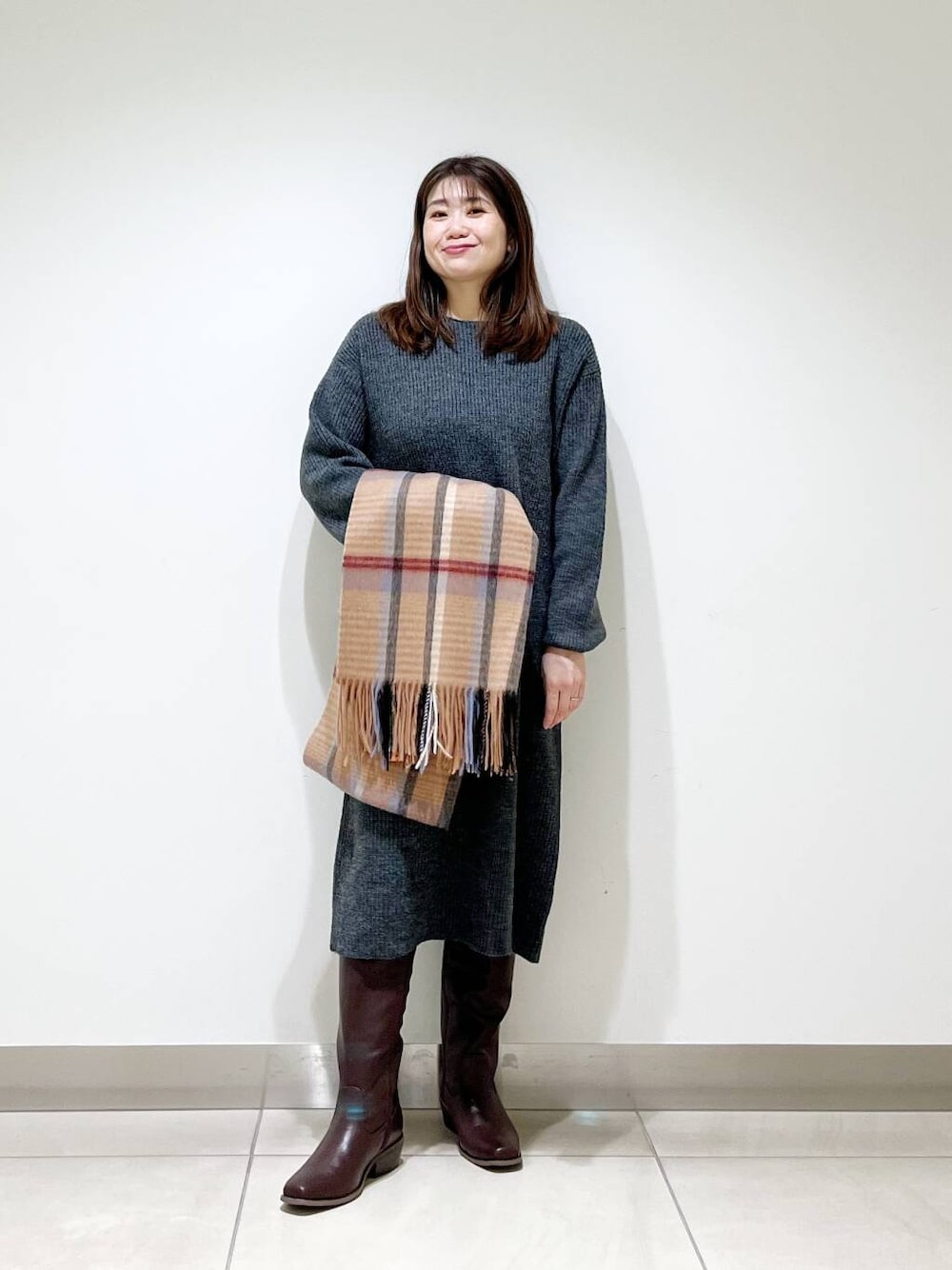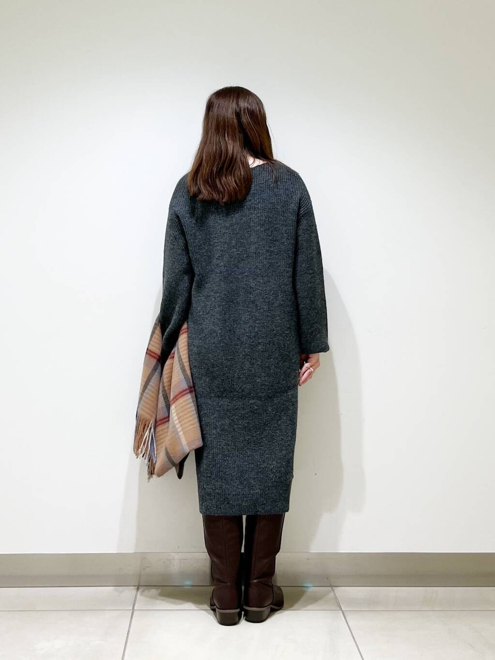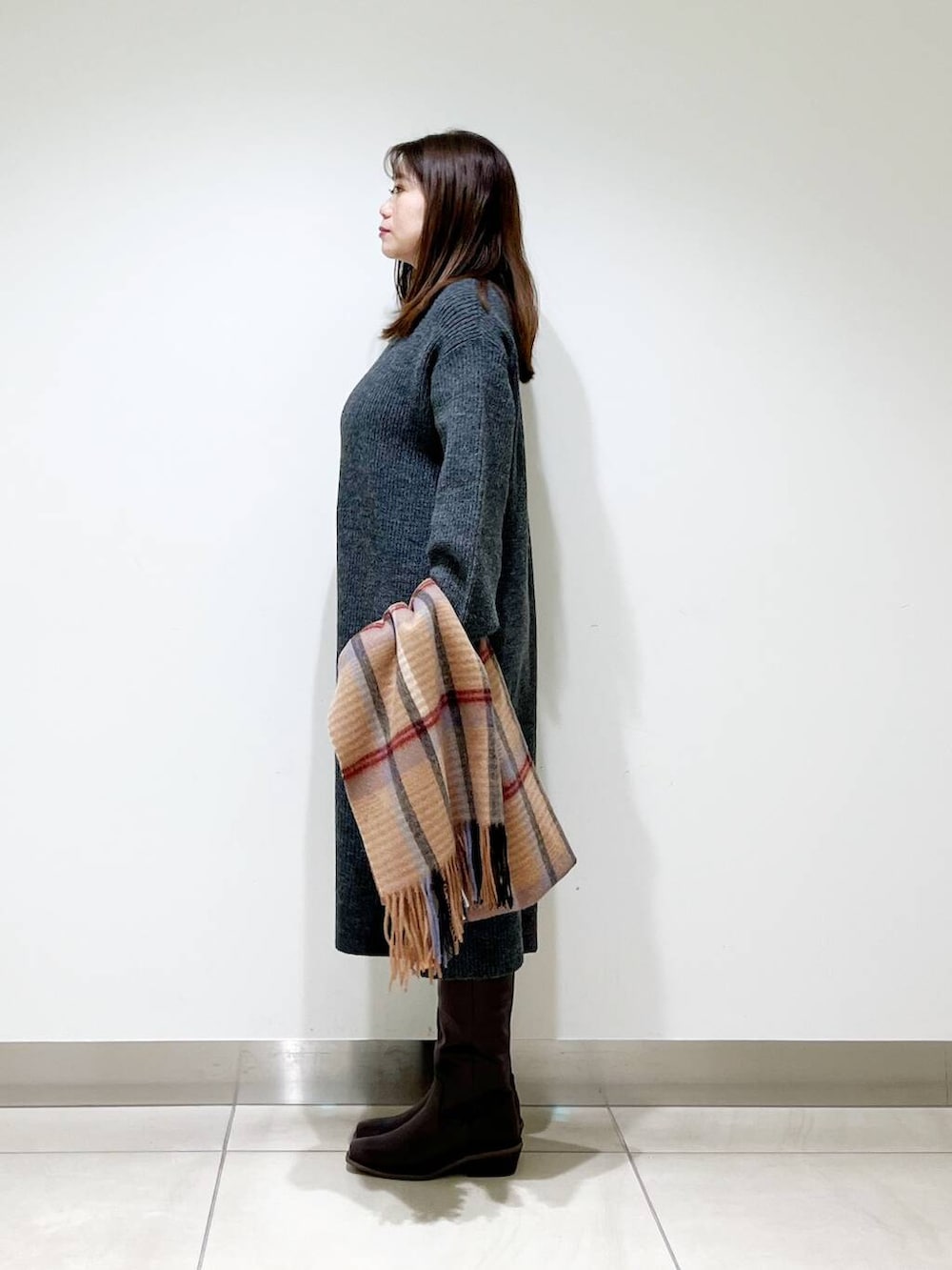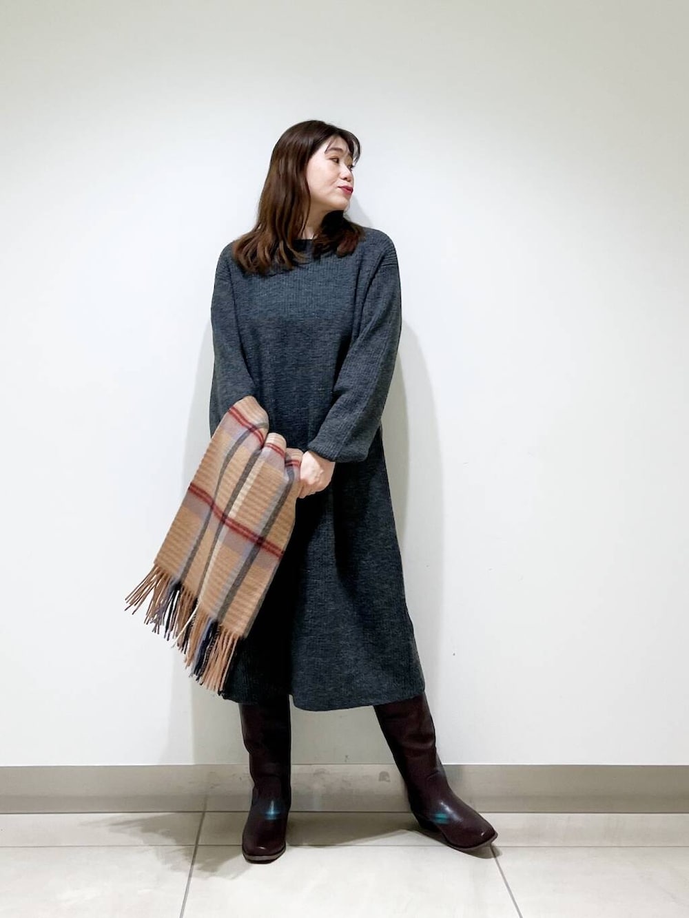 ミディ丈のワンピースなのでロングブーツとの相性がとても良いです☆