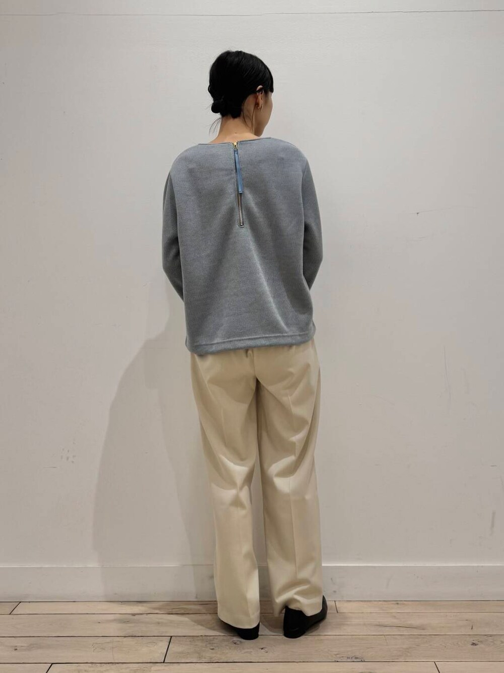 トップスはシンプルに見えますが、後ろ側がジップデザインです。ジップについてる長めのリボンの色味がポイントになります🎀