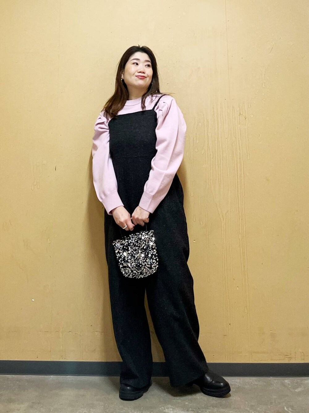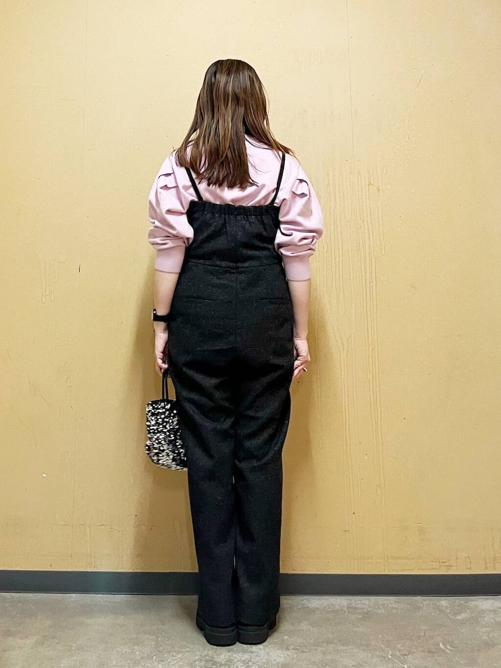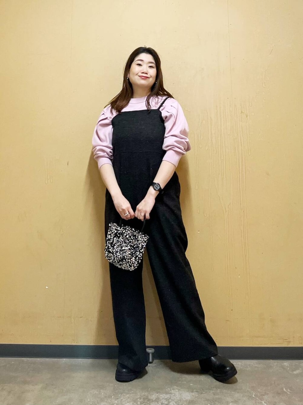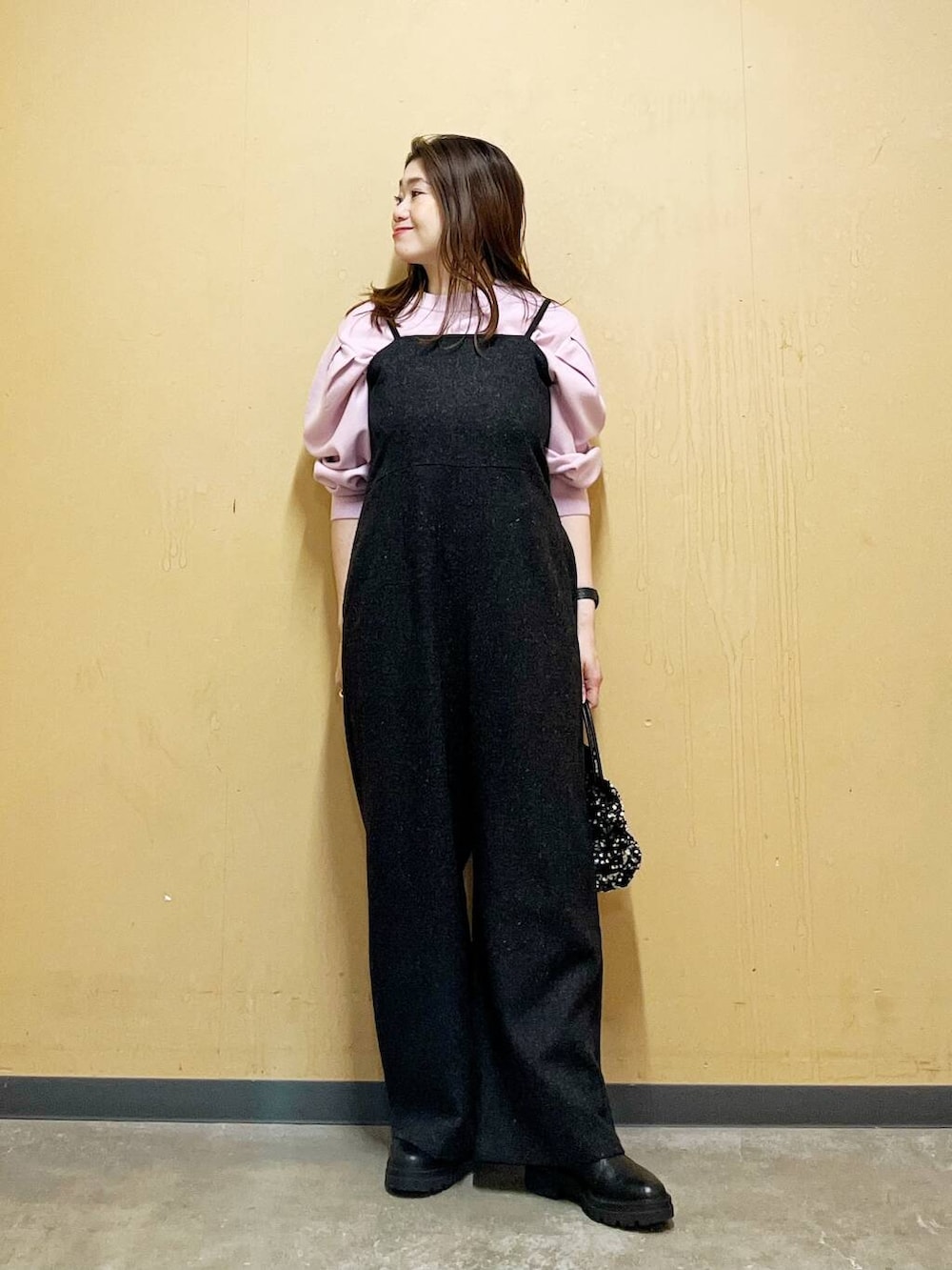 ツイードサロペットは153センチのオダも引きずらず着れるのが嬉しいポイントです☆