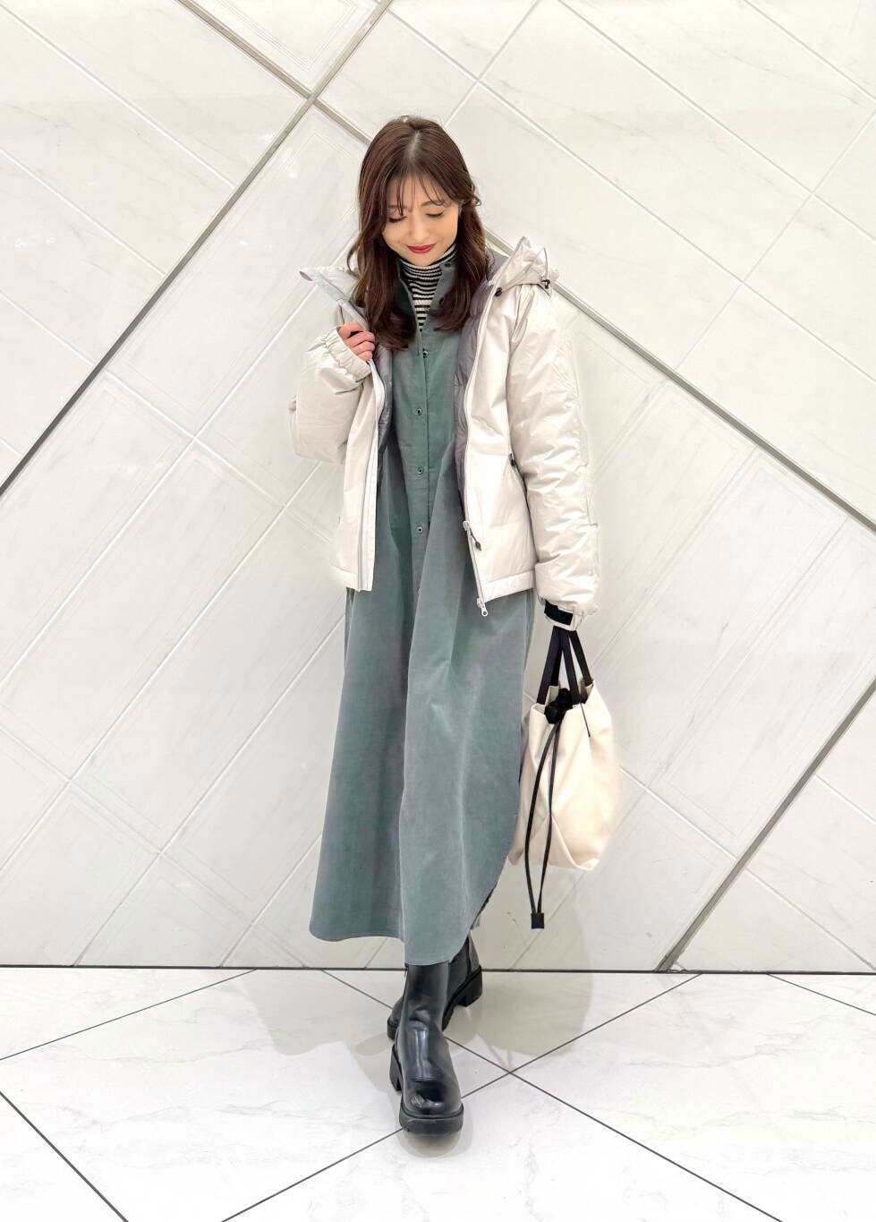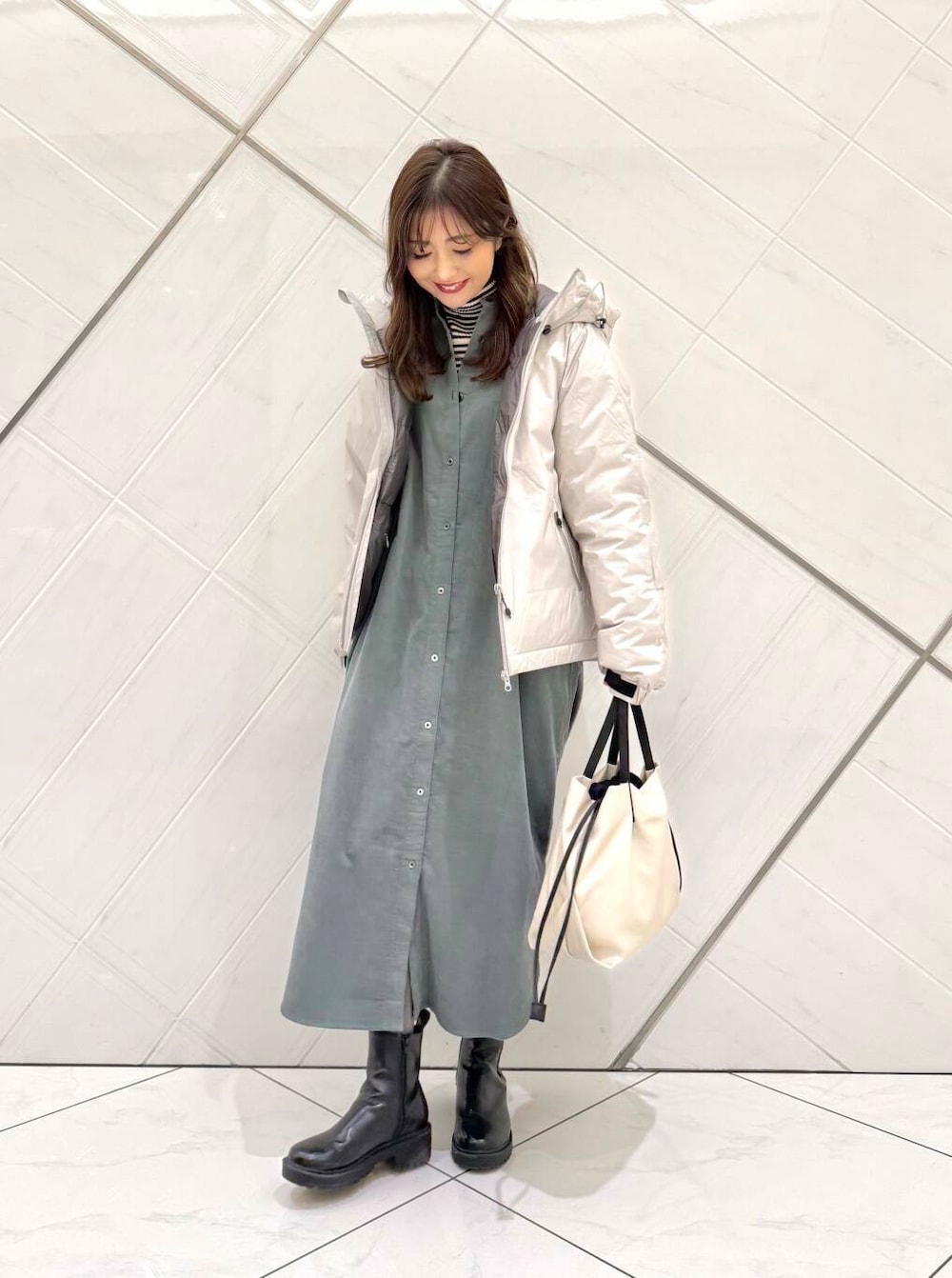 ワンピースは1枚で楽に着れるアイテムですが、インナーをプラスしてレイヤードスタイルもおすすめです。