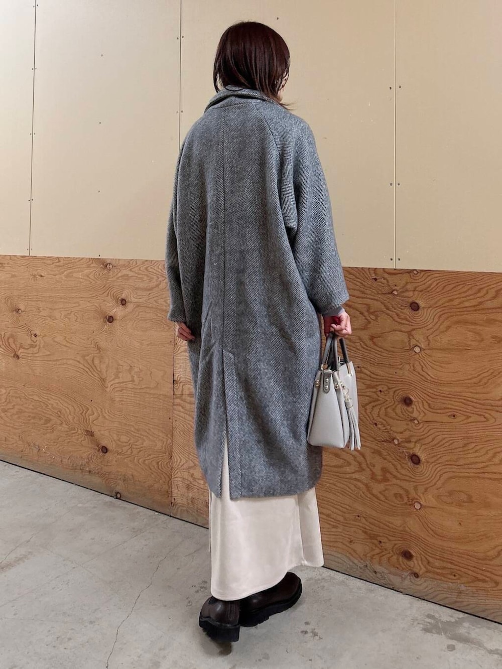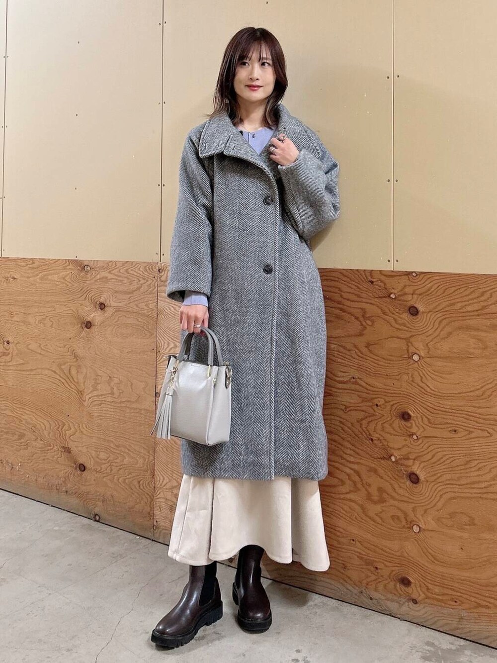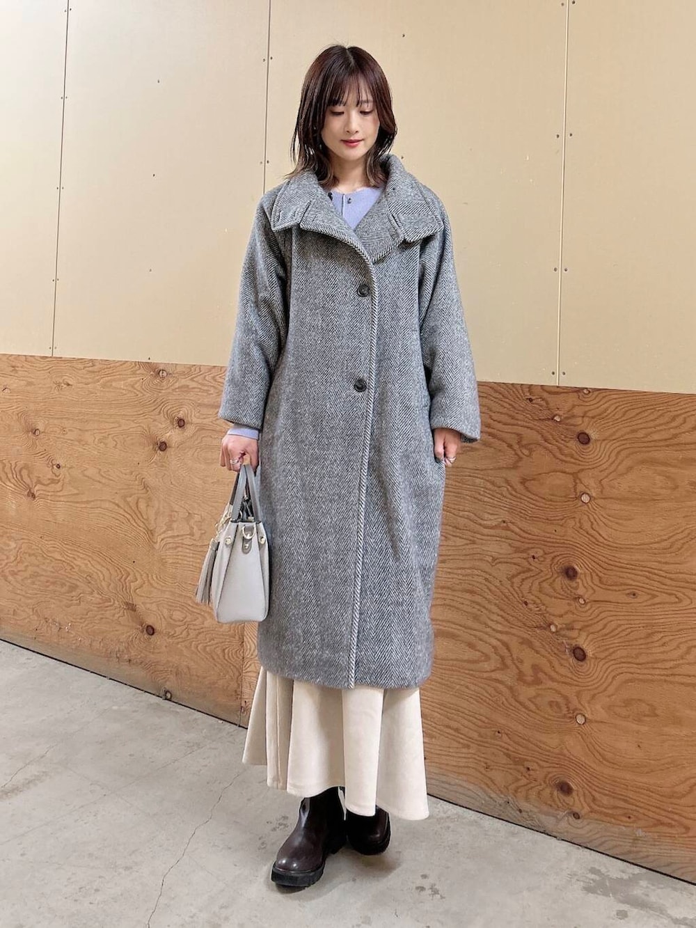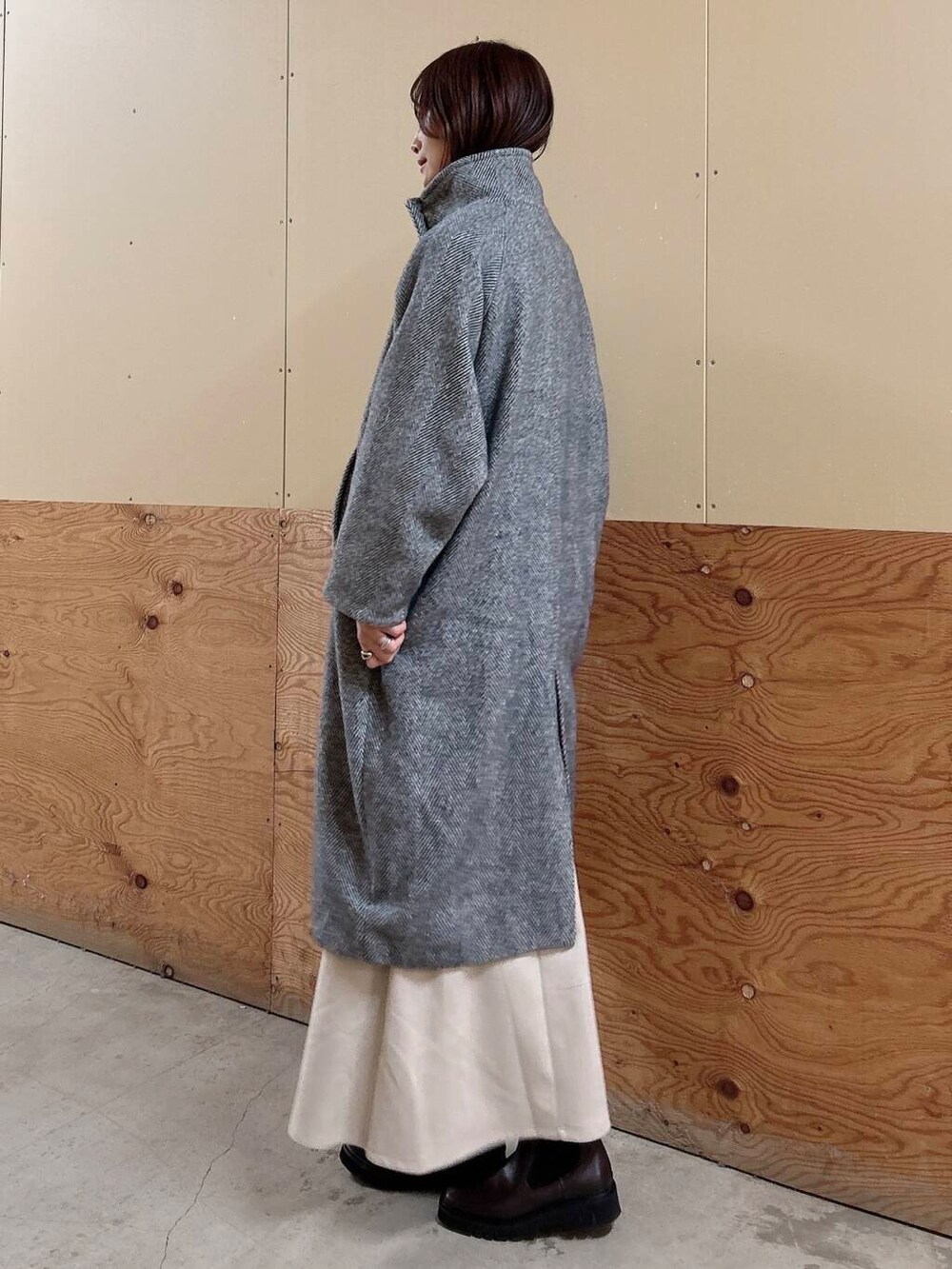 ✔︎ヘリンボーン柄のアウターは厚みがあって、
