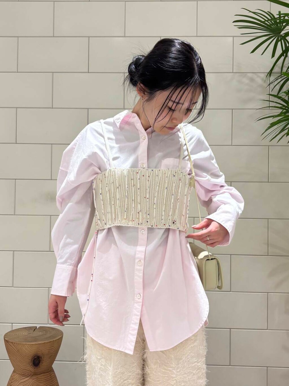 春らしさのある淡い色味のシャツです。オーバーすぎないサイズ感がスッキリとした印象を与えてくれます。ニットの下にレイヤードしても◎