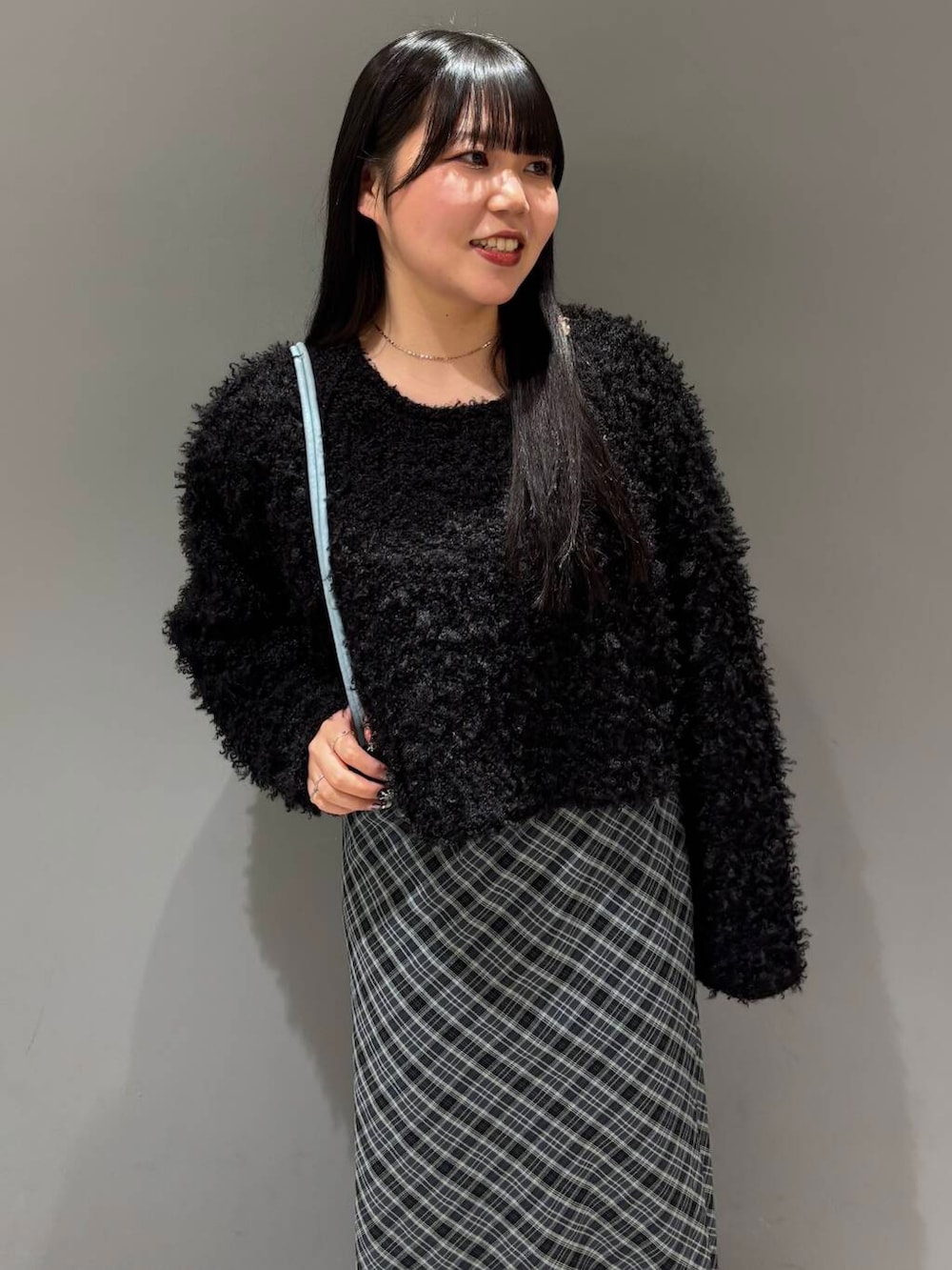 流行りのクロップド丈と肌触りの良いフェザー素材がオススメのトップスです!しっかりとした生地感と厚みがあるので1枚でも着ていただけますし、襟ぐりが広めに開いているのでインナーにハイネックなどを入れてレイヤードスタイルも可愛いです🫶🏻