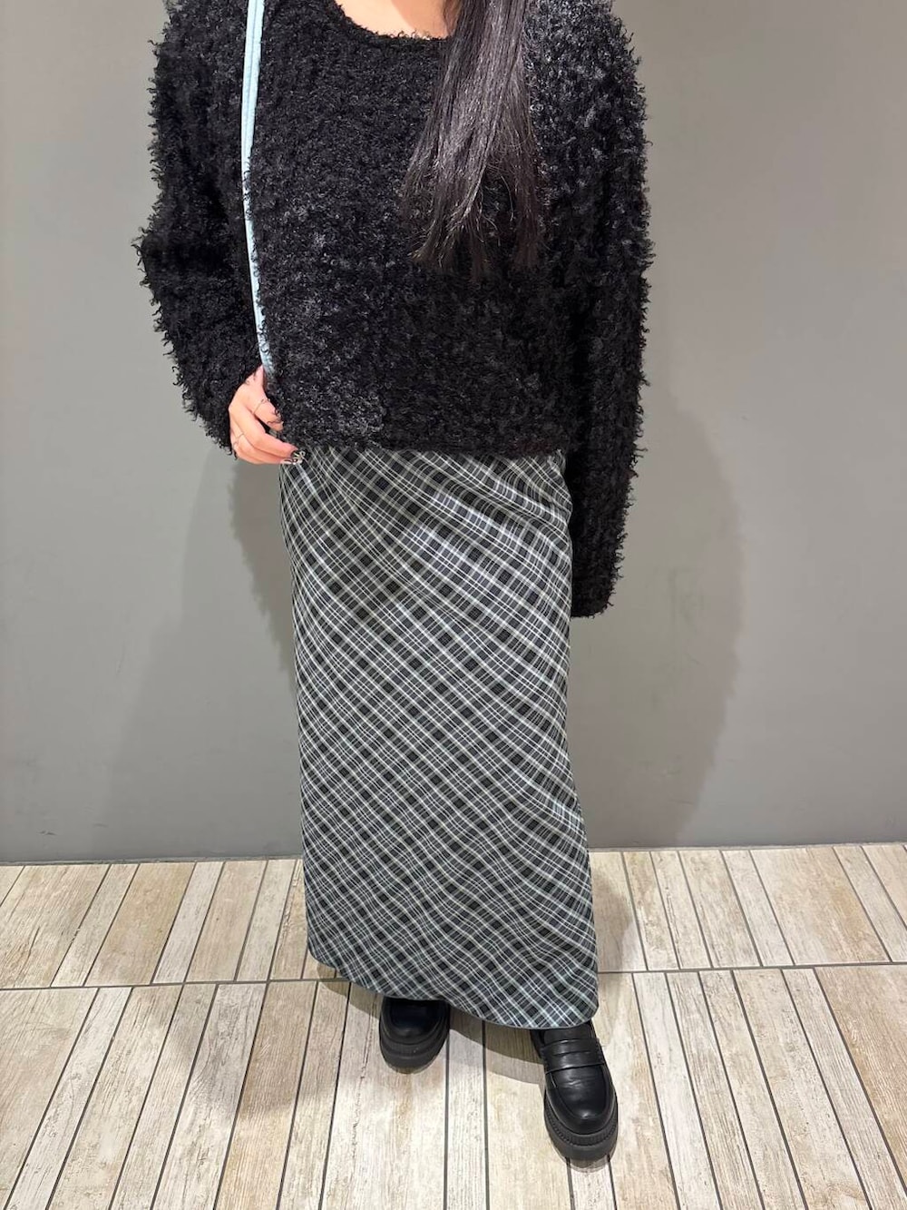 今回は、ブラック×ブルーの大人っぽキレイめコーデを組んでみました!チェックナロースカートはスタイルアップでおすすめです👀