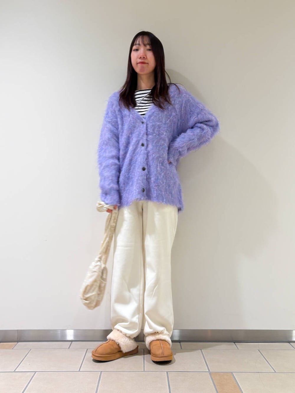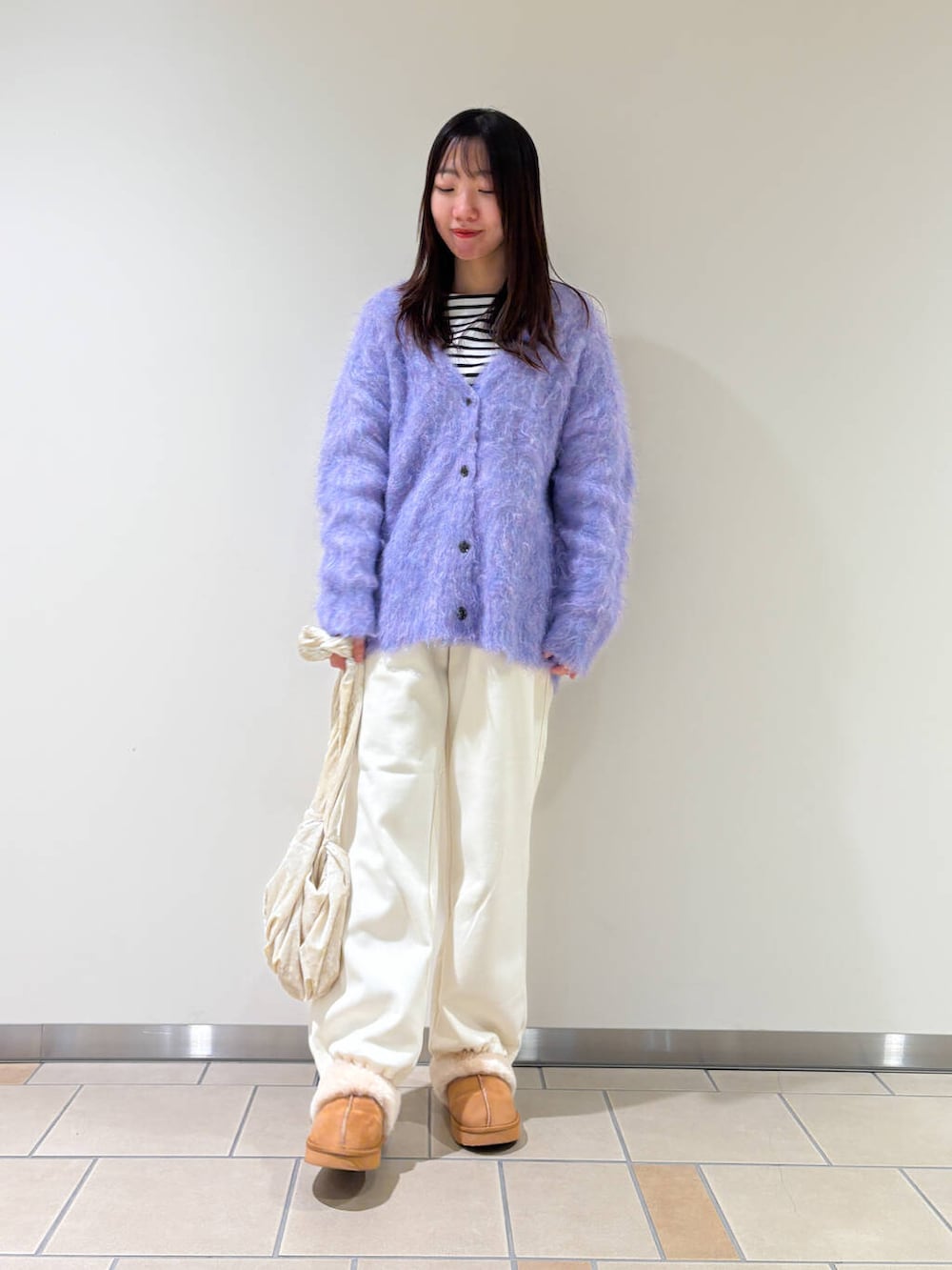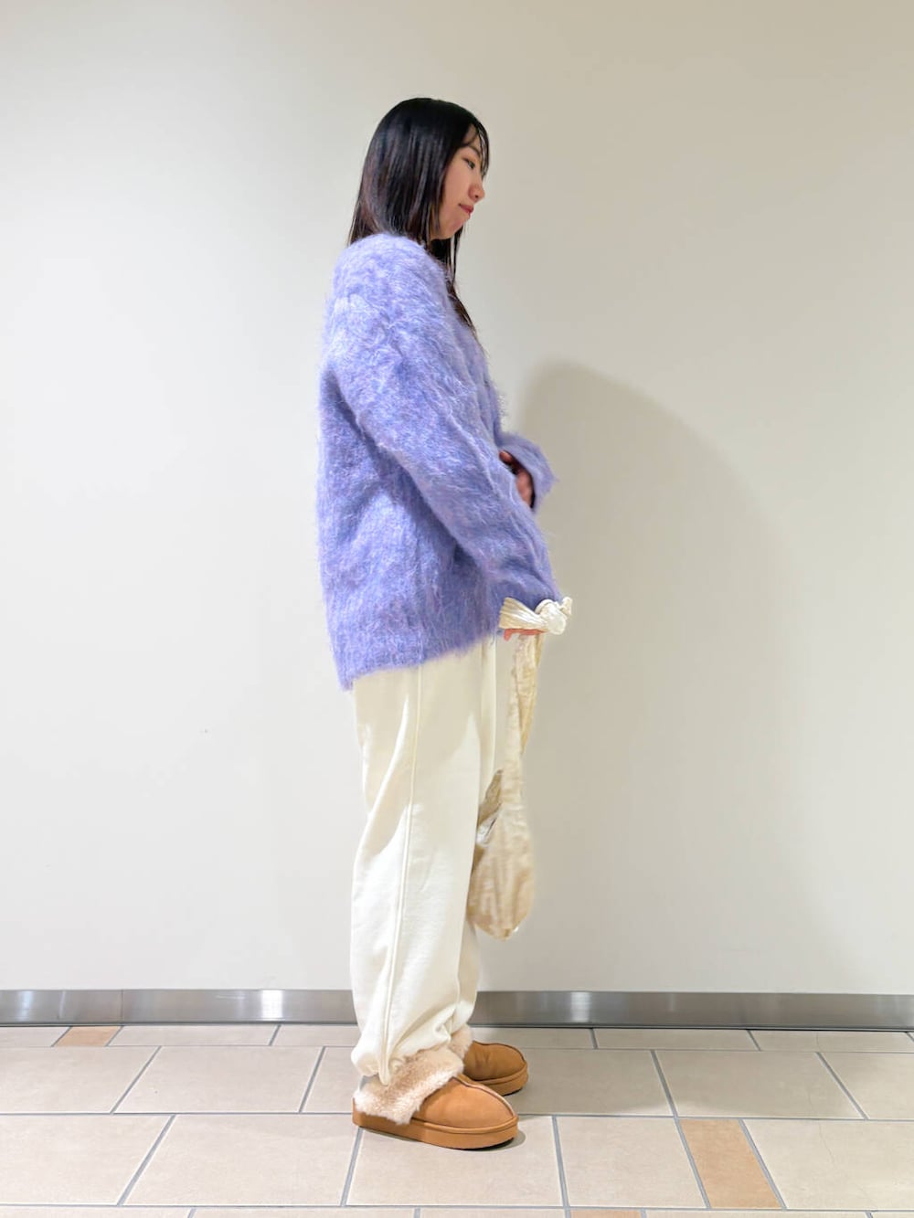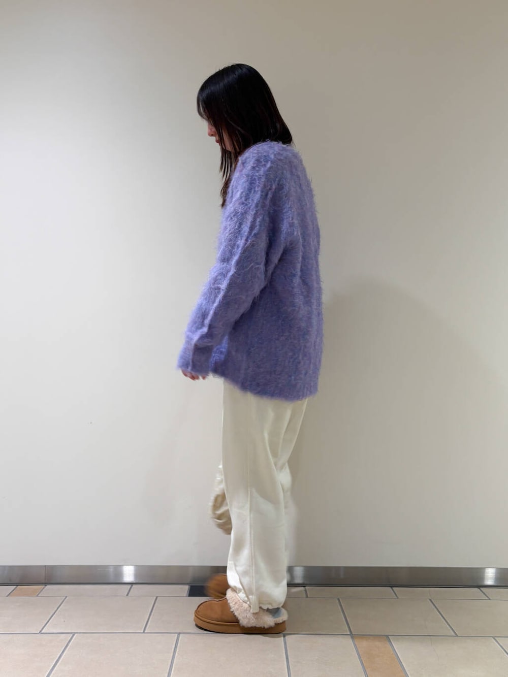 ふわふわのシャギーカーデは色味が柔らかく見えるので普段着ない色も挑戦しやすいですよね^^