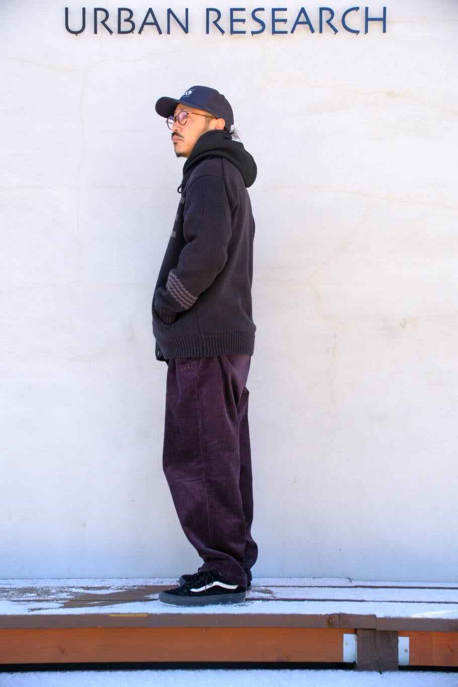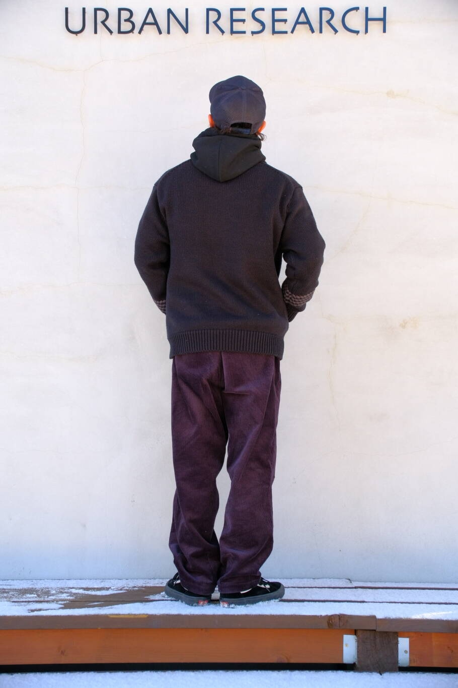 本日はEKALロゴカウチンニットとコーデュロイワイドトラウザーを合わせたコーデの紹介です!