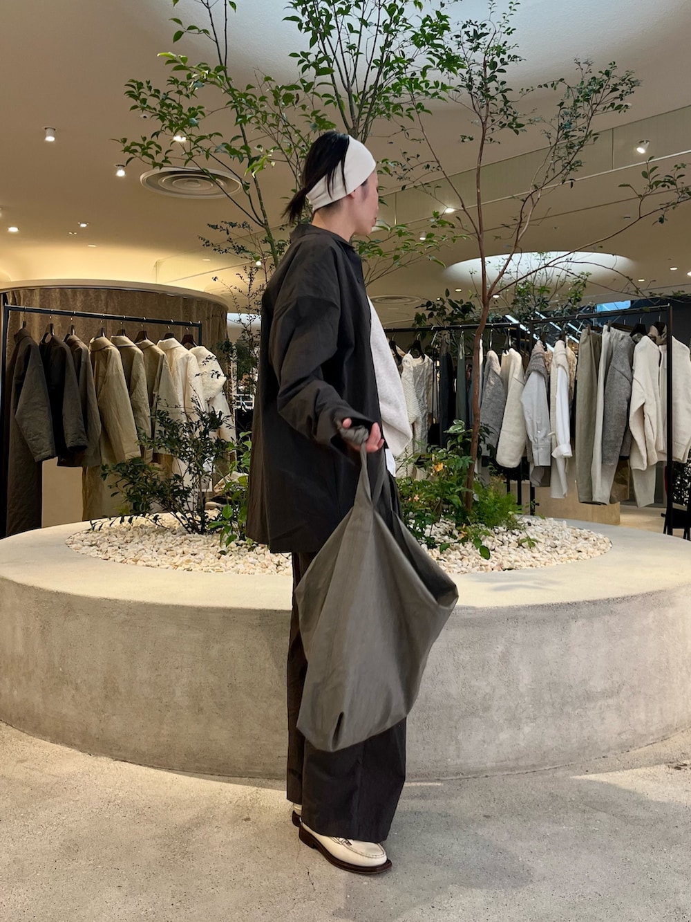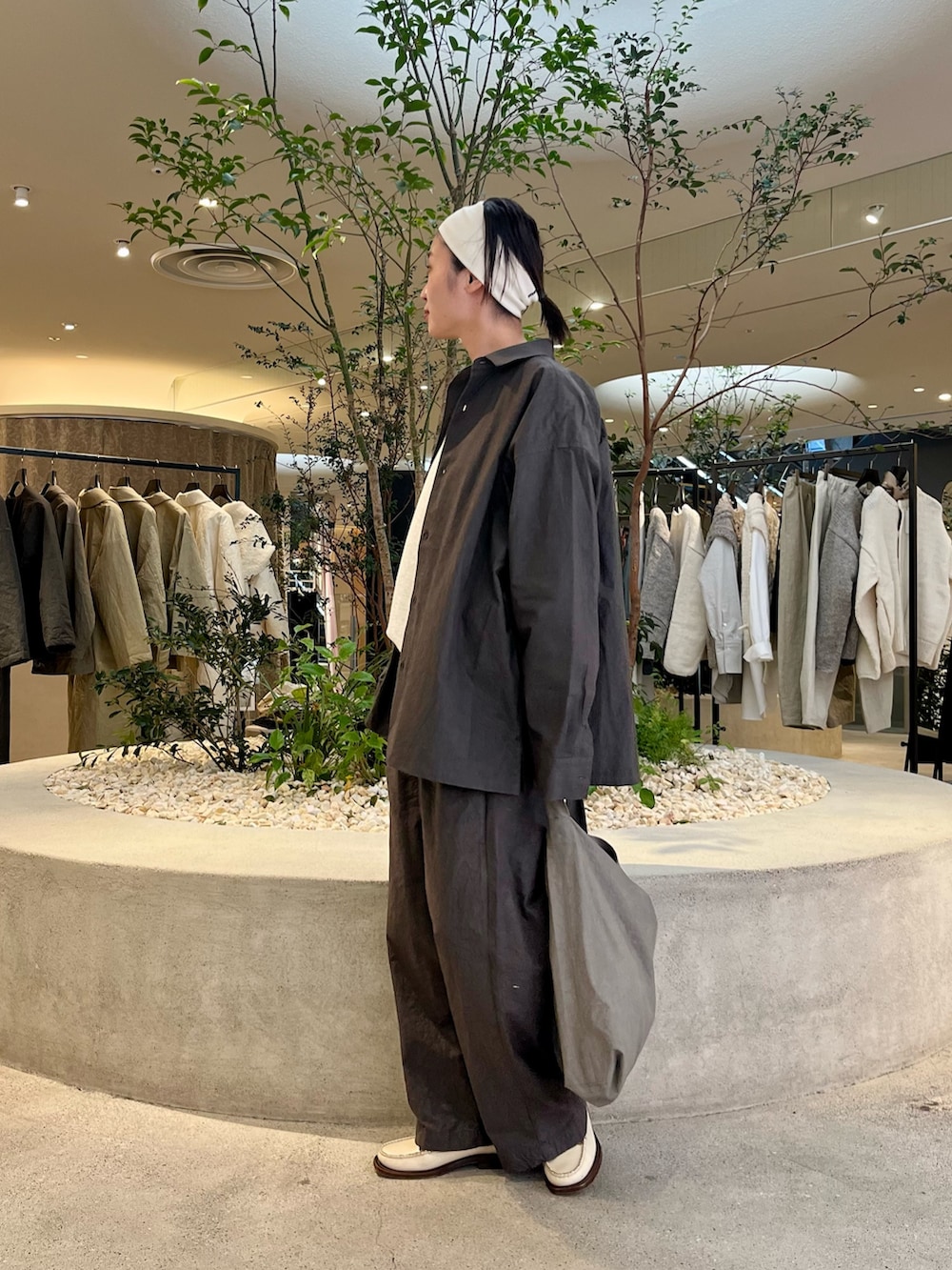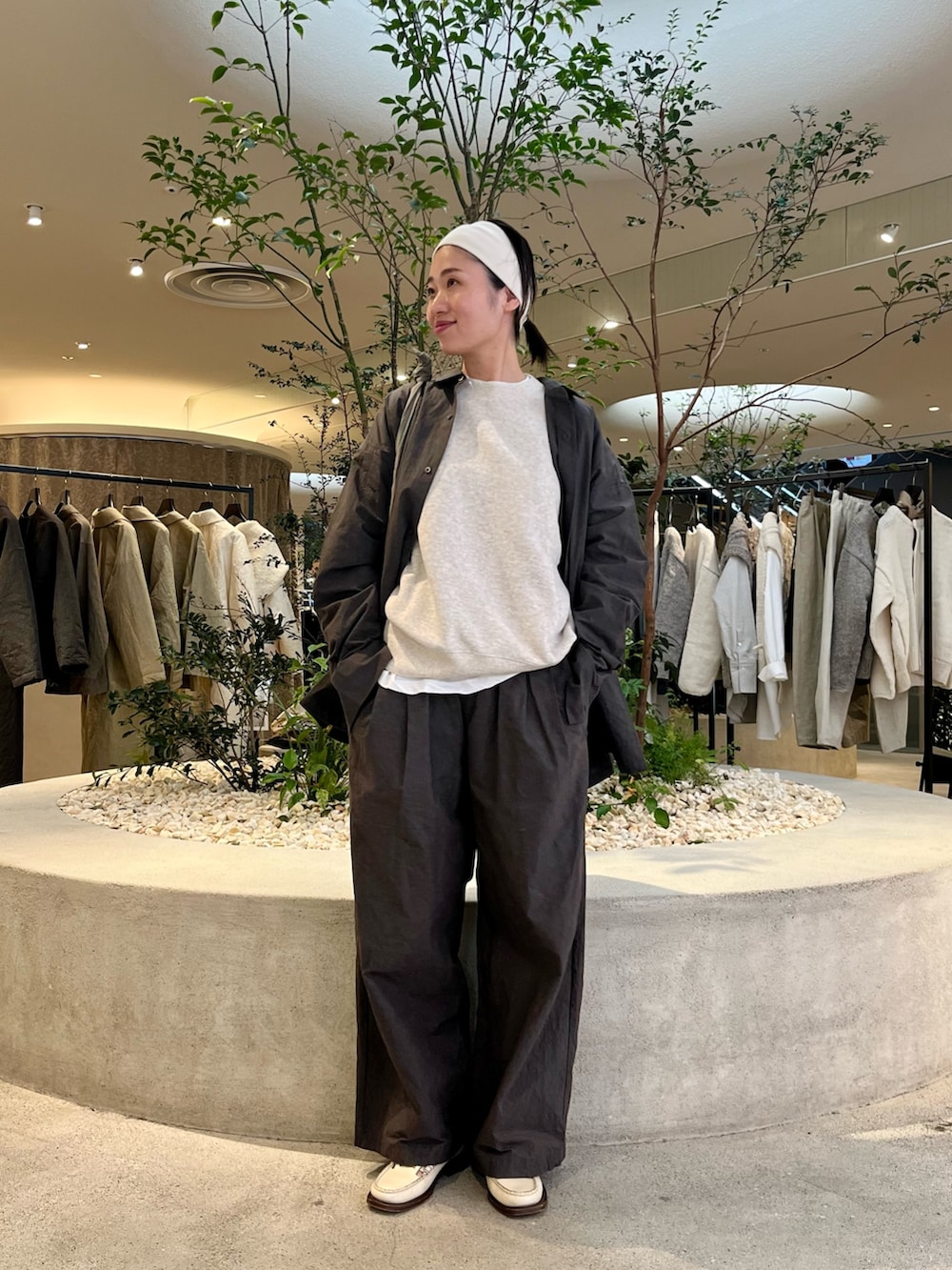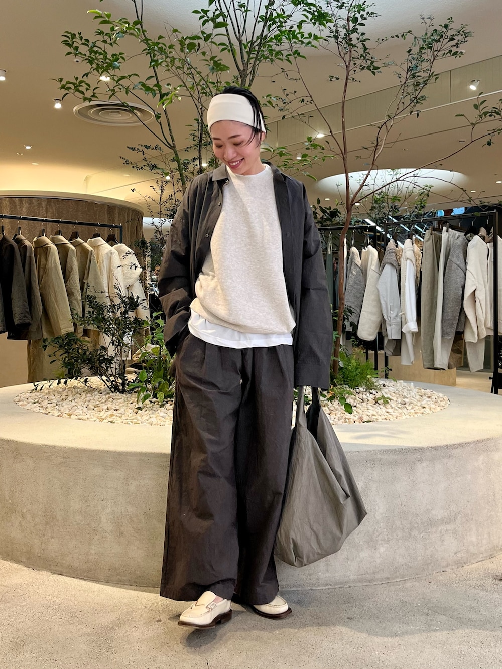 ゆったりしているので、インナーにコットンリヨセルスウェットプルオーバーを合わせて。