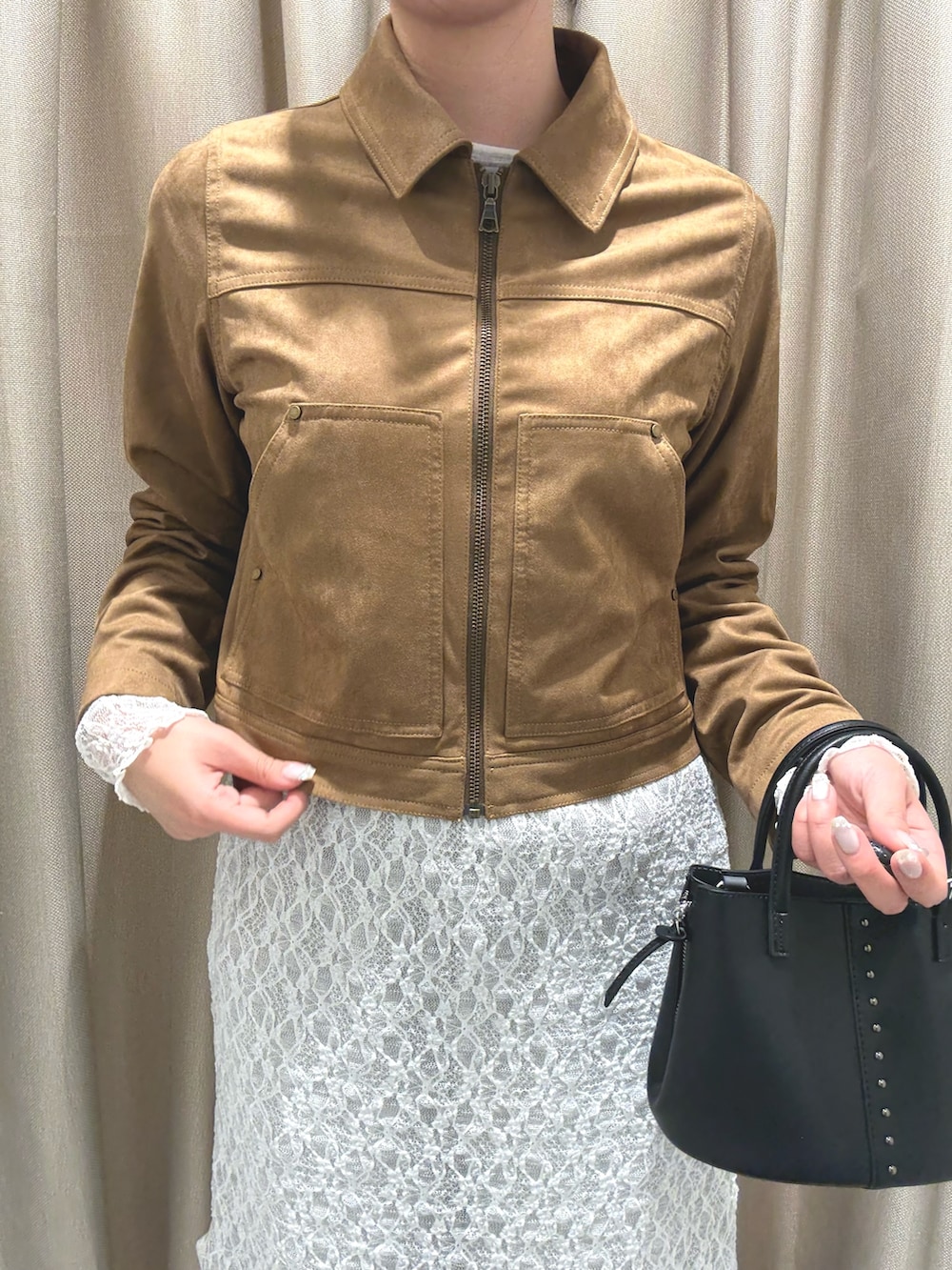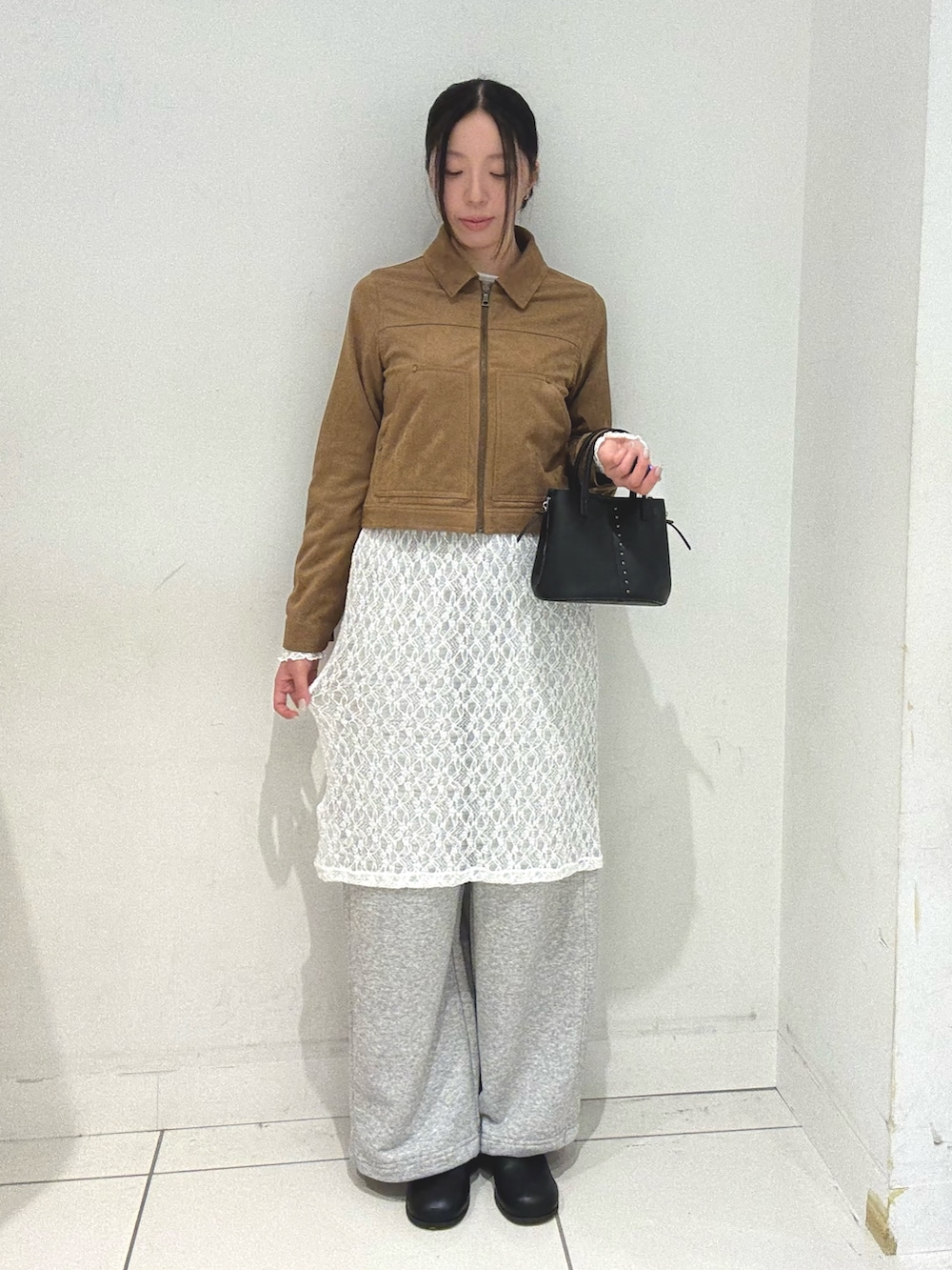 今回はキャメルのスエードのジャケットを合わせることで下はスウェットパンツでもカジュアルにまとまります✰︎