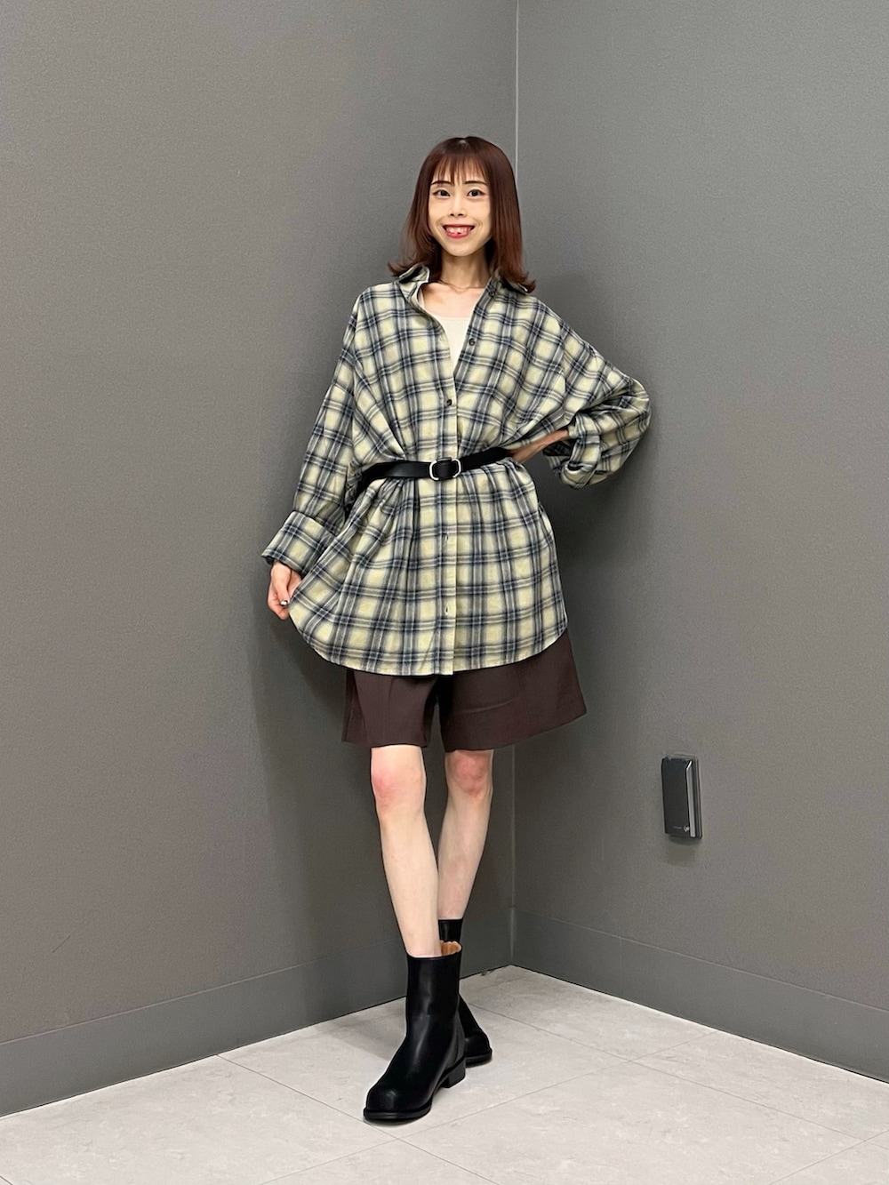 オーバーサイズが可愛いチェックシャツをショートパンツと合わせてミニワンピース風に着てみました🙌🏻
