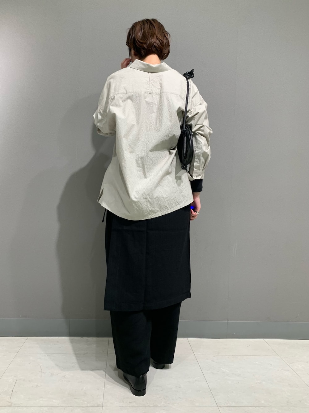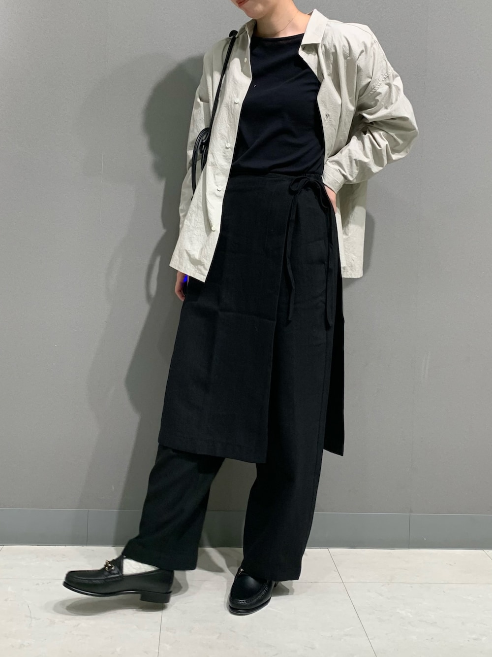 巻きスカートが合わさったデザインのパンツです。スカート部分は取り外し可能で2wayでお召しいただけます。ウールの膨らみのある良い素材感です。